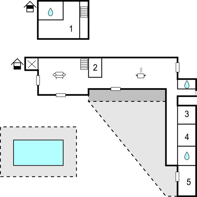 Der er masser af plads til at børn kan løbe rundt og lege, så I skal ikke frygte, at tiden kommer til at gå med tommelfinger-trilleri. Den udendørs swimmingpool er indhegnet og terrassen er overdækket og derfor skyggefuld, hvilket virkelig kommer til sin ret på de varmeste og mest solrige dage. Nyd grillen og de smukke omgivelser.