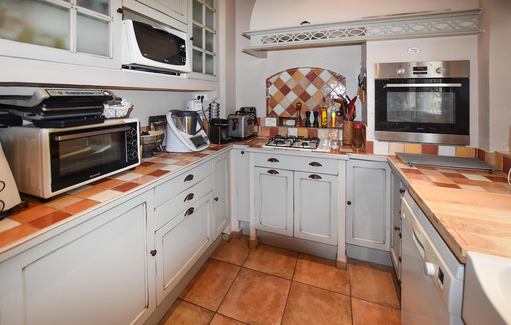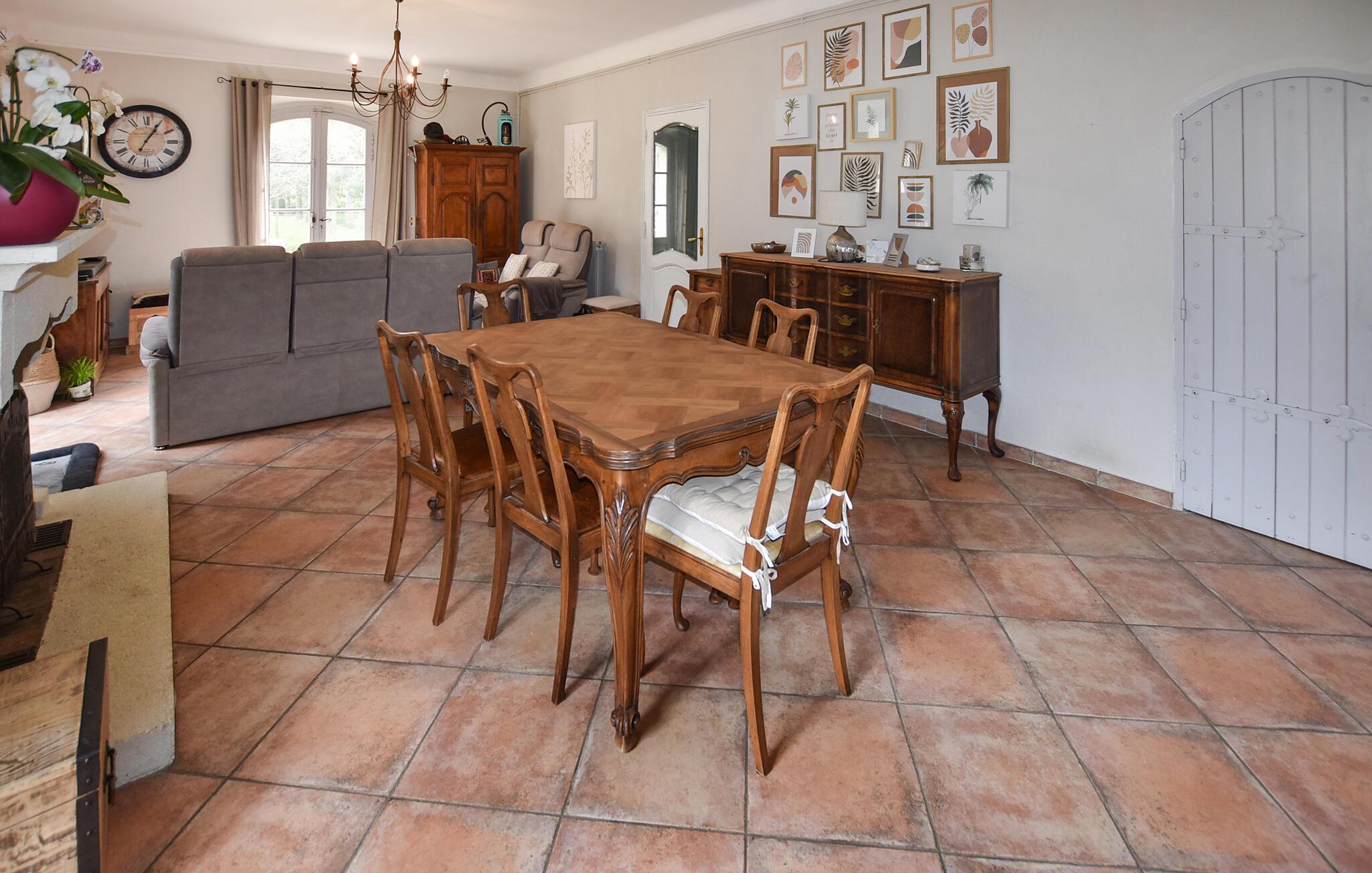Landlig idyl, rustik charme og masser af sjove aktiviteter. Det er, hvad I får i dette rummelige og attraktive hus i det sydlige Frankrig. Huset ligger i dejlige, rolige omgivelser, og indvendigt får I masser af kvadratmeter og en virkelig hyggelig indretning med behagelige farveskalaer, bløde møbler og en hjemlig udsmykning, der gør det rart at være her. Udfordr familien til et slag bordfodbold, inden I går i gang med madlavningen og dækker op ved det rustikke spisebord i træ.