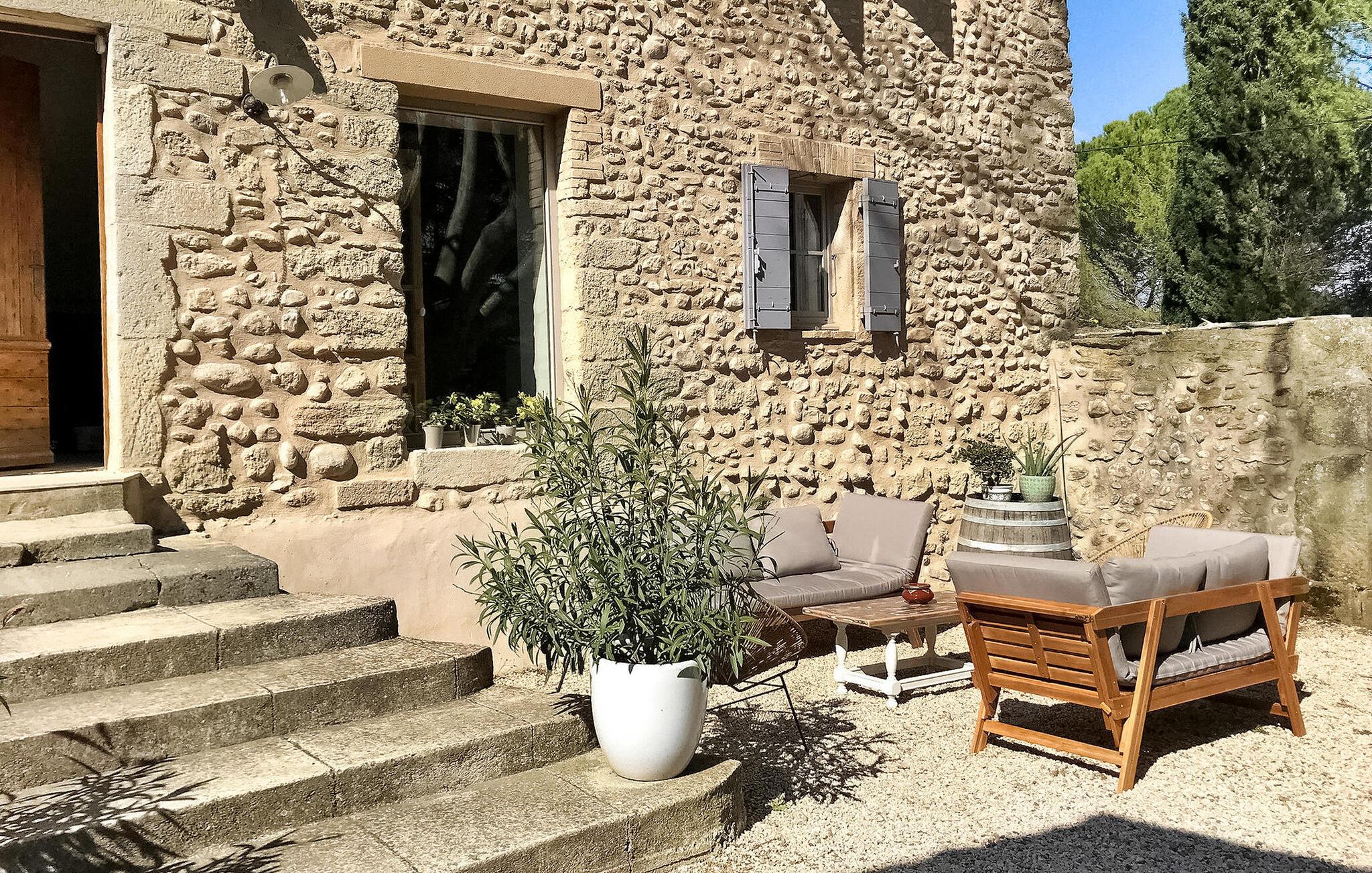 Forkæl dig selv med en fredfyldt provencalsk tilflugtssted på dette fantastiske stenbondehus. Beliggende på toppen af en bakke i en stor park sikrer dette tilbagetog privatliv uden isolation, tæt på Vaison la Romaine og landsbyen Entrechaux. Oplev rummelige opholdsområder, herunder et bibliotek, spisestue og et fuldt udstyret køkken i stueetagen. Første sal byder på elegante soveværelser med private badeværelser, mens anden sal byder på en tv-stue og yderligere soveværelser, herunder en selvstændig lejlighed til to. Udendørs kan du nyde store terrasser med udsigt over en opvarmet infinity-pool (4m x 10m) med fængslende udsigt over Crestet-landsbyen. Nyd charmerende udendørs spisepladser med grill midt på den lukkede grund. Oplev roen og skønheden i Provence i dette udsøgte bondehus, der tilbyder komfort, elegance og en betagende udsigt til en uforglemmelig ferieflugt. Nærmeste butikker i Entrechaux (2,5 km). Der er 1 bageri, en slagterbutik, en avistobaksforretning, 2 caféer med terrasser og en restaurant. Den charmerende by Vaison la Romaine (alle butikker, restauranter) ligger kun 4 km væk.