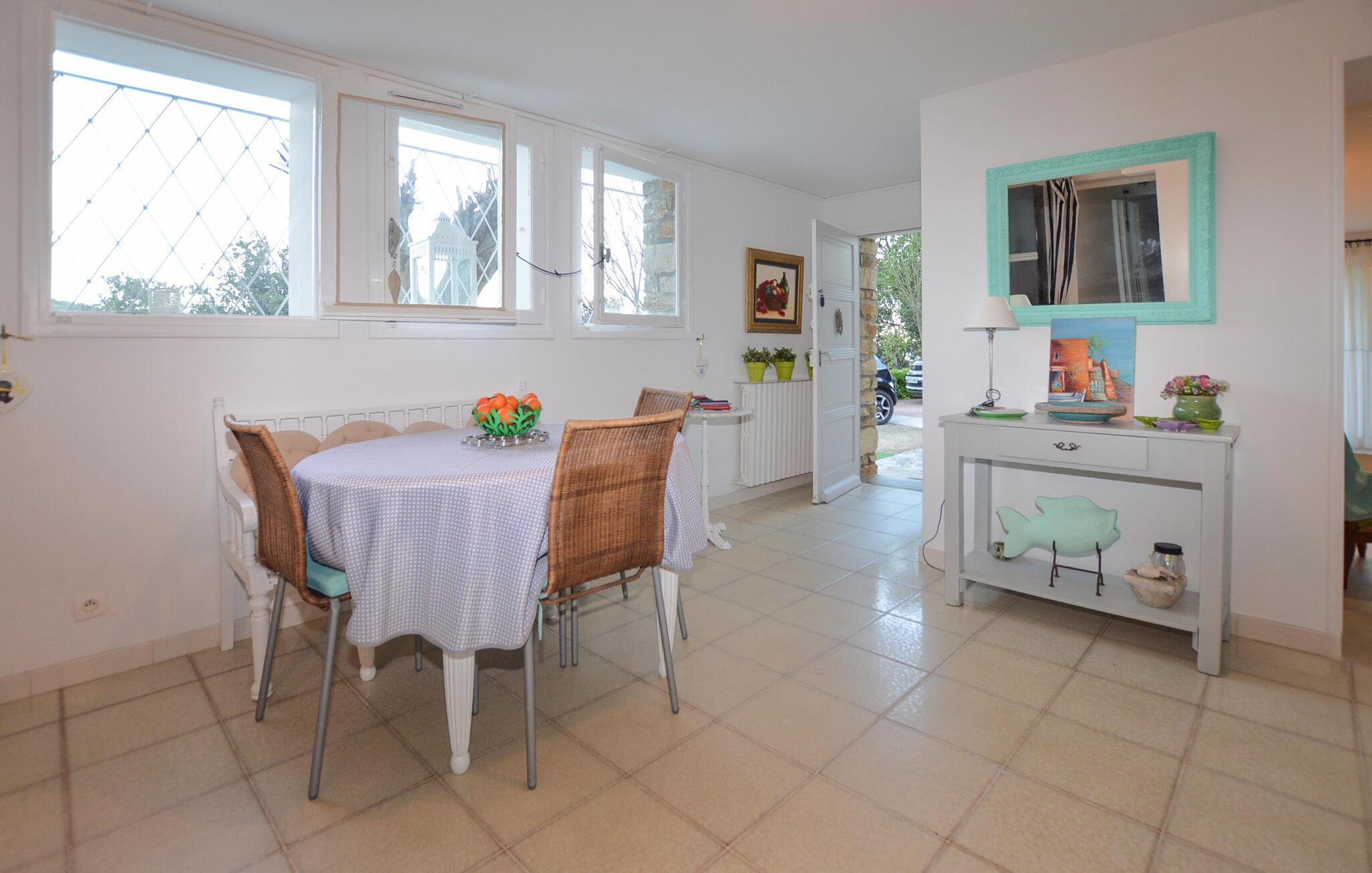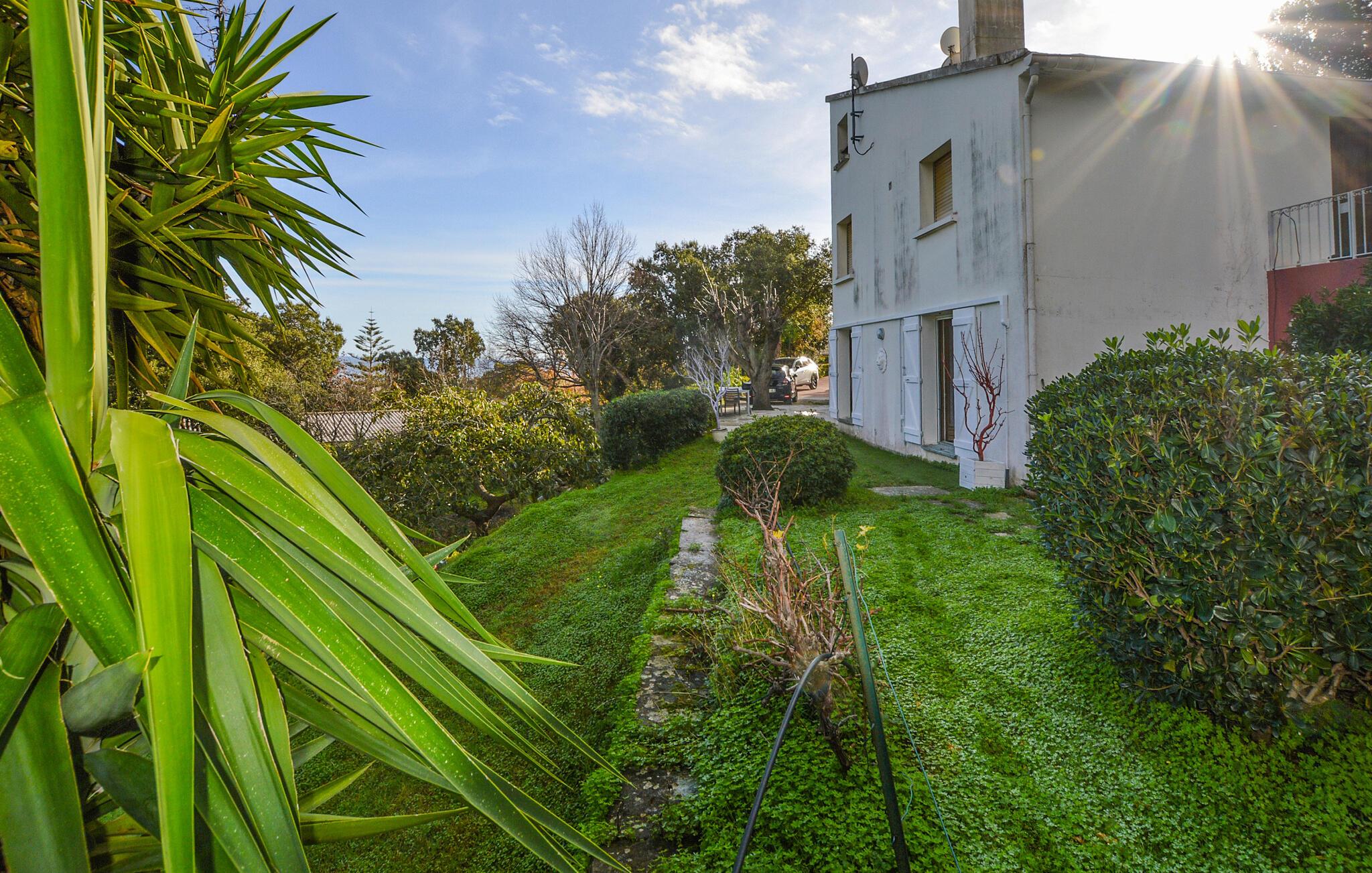 Træd udenfor og nyd middelhavsatmosfæren. Nyd jeres måltider på terrassen i skyggen af ??en parasol eller slap af på liggestolene i den rummelige haves skyggefulde træer. Udsigten strækker sig over det frodige grønt til havet.
