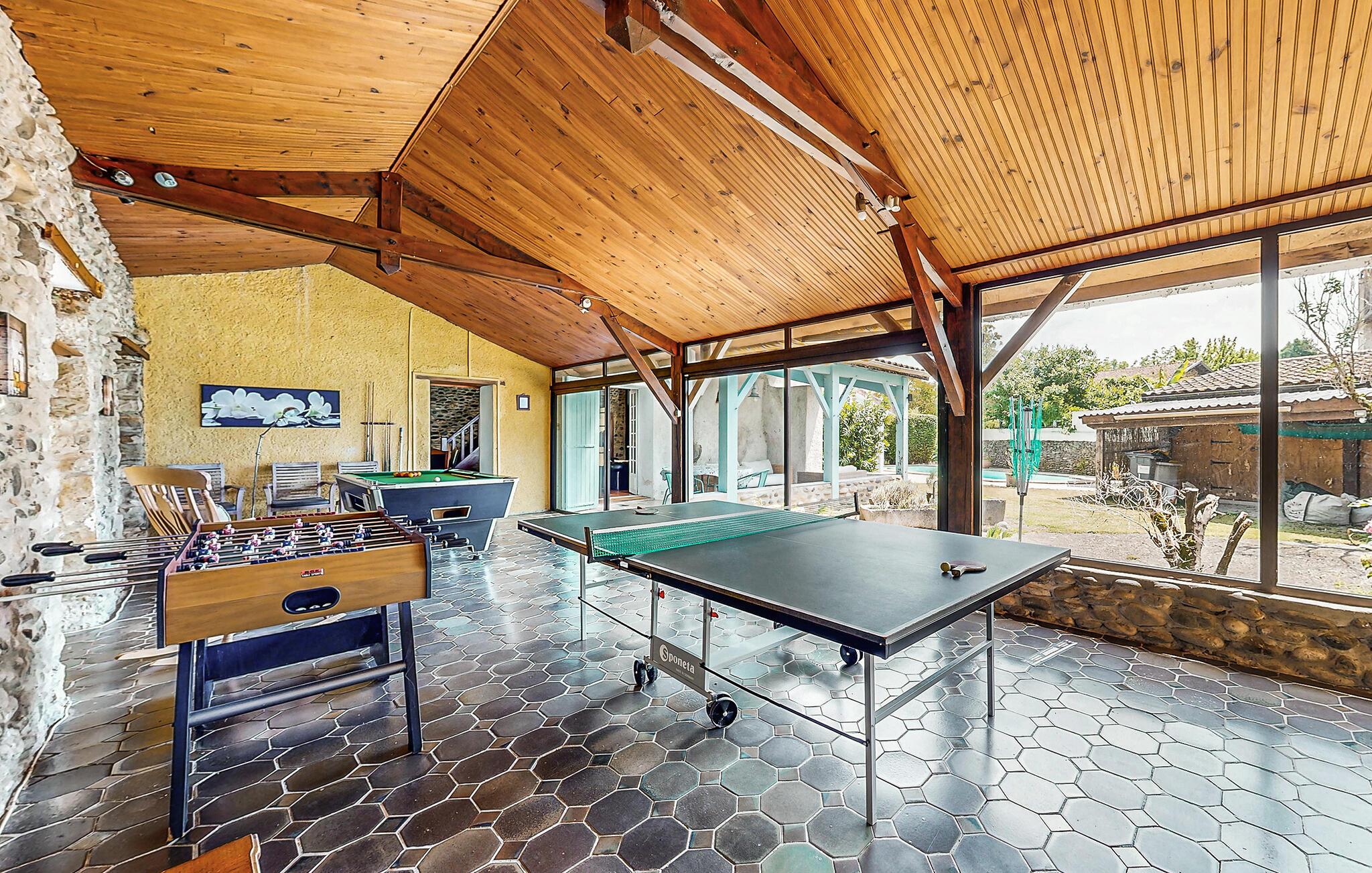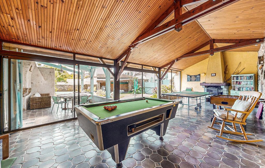Dette feriehus med pool venter på jer i hjertet af den lille landsby Escos. På den store, lukkede veranda kan I læse en feriebog eller tage et spil billard, bordtennis, bordfodbold eller dart. Haven, den overdækkede terrasse og grillen lægger op til behagelige øjeblikke med familien. Huset er stort og udmærker sig med velplejet og komfortabel indretning. 16 km herfra frister en smuk sø med forskellige aktiviteter omkring vandet til alle aldre som stand-up-paddling, kajak eller robåde, og der venter også action langs skråningerne omkring søen. Tag bad i den nære flod Gave d'Oloron, og 10 km herfra venter kurbadet i Salies-de-Béarn med ren afslapning. Mange fortryllende byer og landsbyer i omgivelserne venter på jeres besøg, især Biarritz (64 km), La Bastide-Clairence, der er blandt de officielt smukkeste landsbyer i Frankrig, og Bidache med borgen Gramont. Der forkæler borgtårnet jer med en enestående panoramaudsigt over Bidouze-dalen og Pyrenæerne. Til Oloron-Sainte-Marie er der 48 km. Denne enestående by fuld af kunst og historie er også en udflugt værd. Navarrenx (27 km) er blandt for ældste byer i Béarn og udmærker sig med et gammelt fæstningskompleks. De utallige veje igennem omgivelserne lægger op til at opdage den vidunderlige natur til fods eller på hesten. Glæd jer også til en gastronomisk opdagelsesrejse: Smag på garbure (gryderet med kål, grønsager og syltet kød), Bayonne-skinke med salt fra Salies-de-Béarn, Brebis-osten fra Pyrenæerne og velrenommerede vine fra hhv. Béarn og Jurançon (80 km). 33 km herfra kan I besøge en frabrik, der fremstiller lærredssko med flettet sål (espadrilles de Mauléon), der er populære blandt baskerne. Denne feriebolig er ideelt til en afslappende og behagelig tid med familien. Adgang til S4 sker ad en trappe fra husets køkken no. 2. Huset ligger en vej, der kun er trafikeret meget lidt.