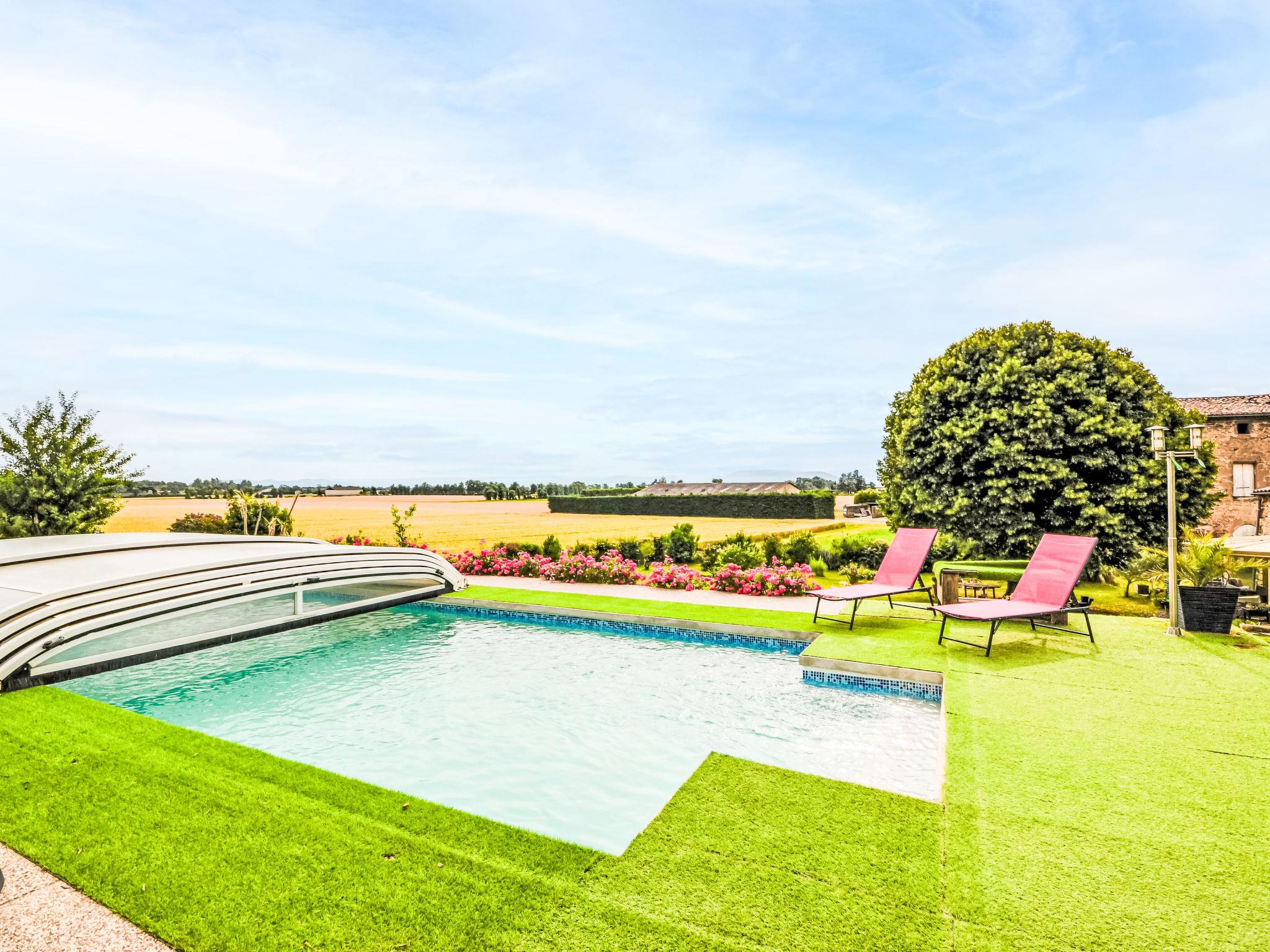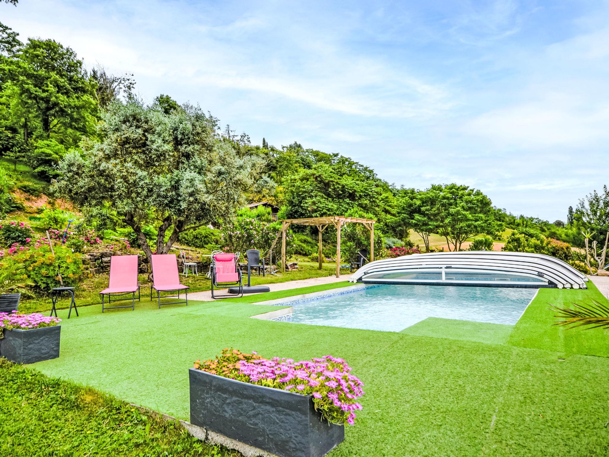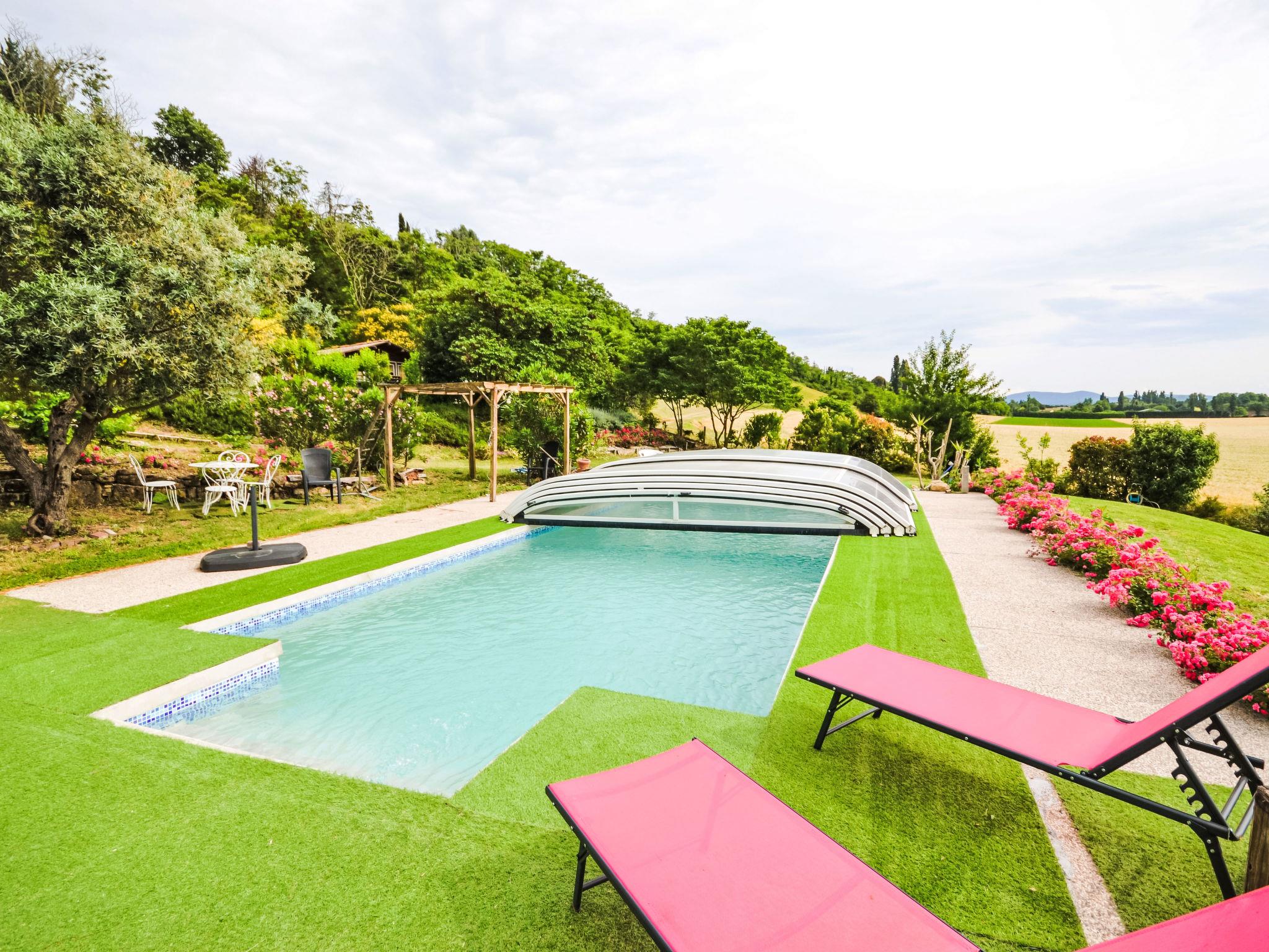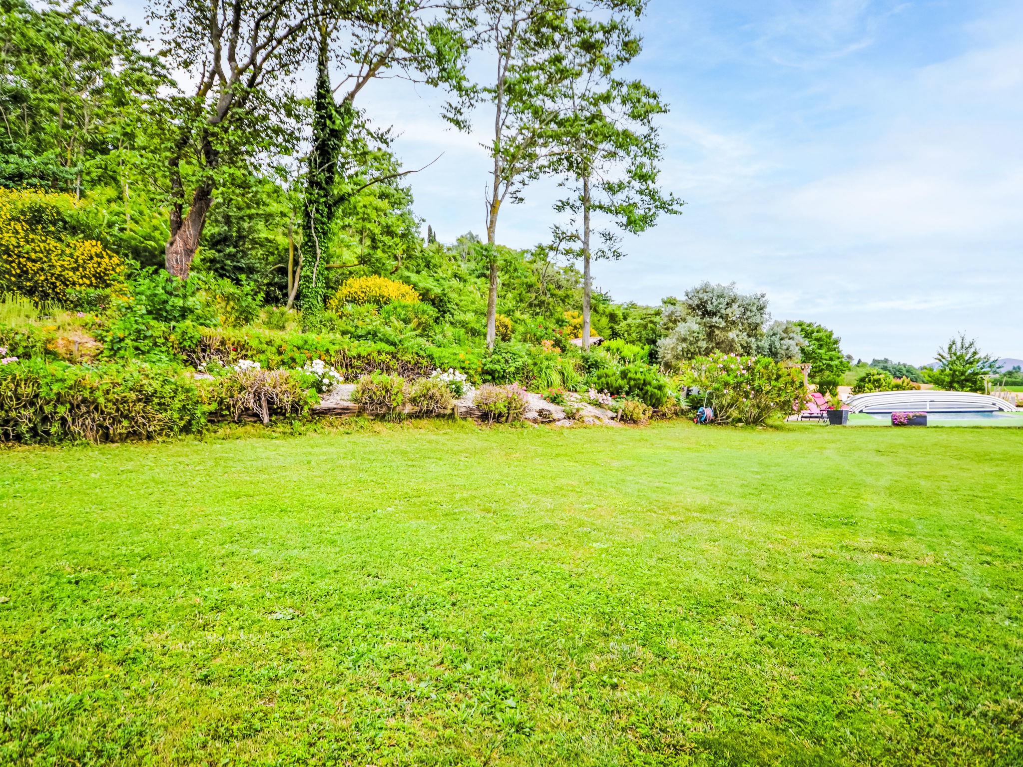 Terraced house "Douce campagne". On the outskirts, 2 km from the centre of d'Etoile-sur-Rhône, in a quiet position on a slope, in a cul-de-sac. Private: well-kept garden 8'000 m2 lawn, swimming pool, indoor pool (10 x 4 m, depth 100 - 150 cm, seasonal availability: 15.May. - 15.Oct.). Boules, parking (for 3 cars). Shop 9 km, grocery 2 km, supermarket 3.5 km, restaurant 1 km, bakery 1 km, bus stop 1 km, railway station "Livron" 10 km, swimming bay 19 km. Sports harbour 11 km, golf course (18 hole) 13 km, sailing school 14 km, tennis 6.5 km, riding stable 6 km. Nearby attractions: Valence 16 km, Montélimar 36 km, Zoo d'Upie 11 km, Château de Crussol 18 km, La Tour de Crest 20 km, Rivière L'Eyrieux 19 km.