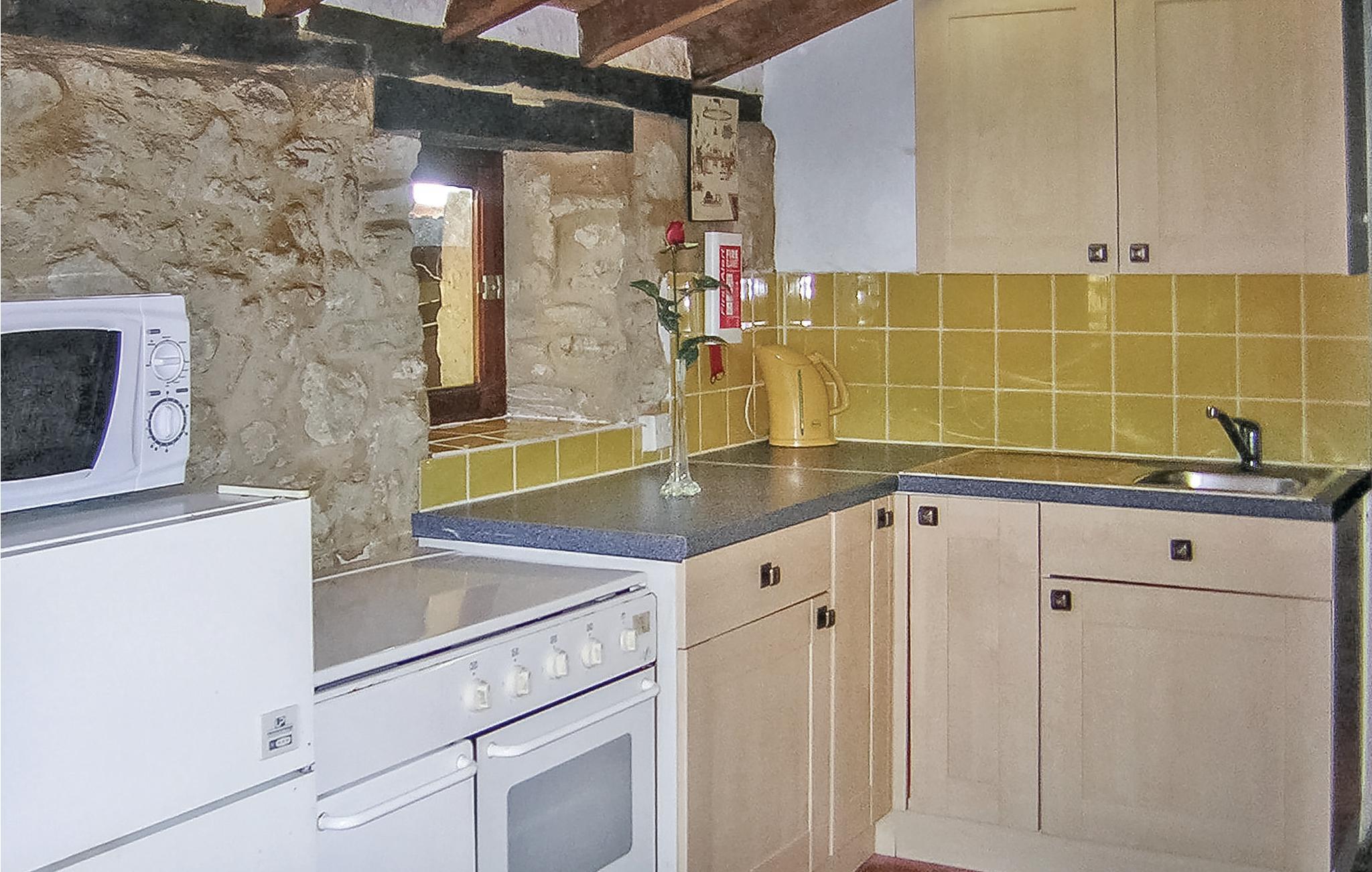 Nyd et landligt ophold i en bolig, der er ideel for par, og som tilbyder fred og afslapning. Sæt jer til rette i det enkelt møblerede interiør. Tilbered måltider i det praktiske køkken og nyd den hyggelige atmosfære med stenvægge og træbjælker. Slap af i opholdsstuen med sofa eller nyd jeres måltider ved det lille bord.