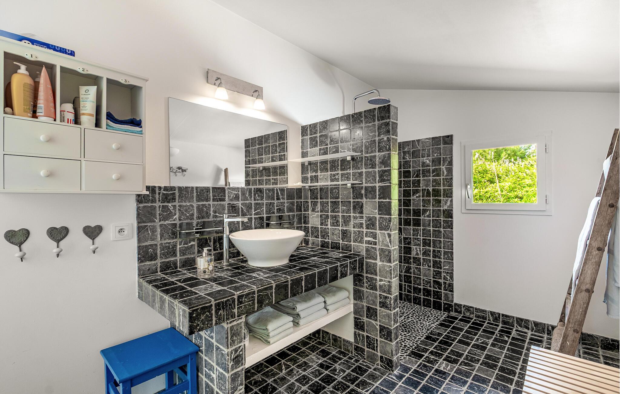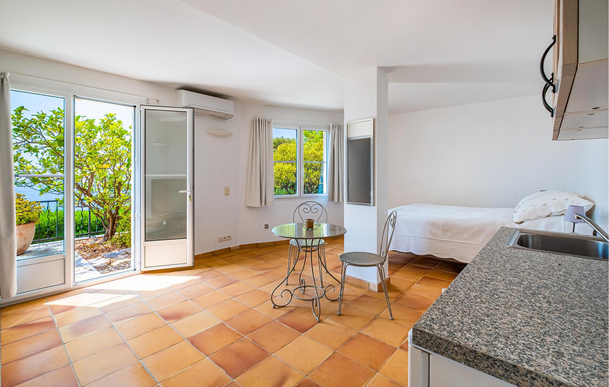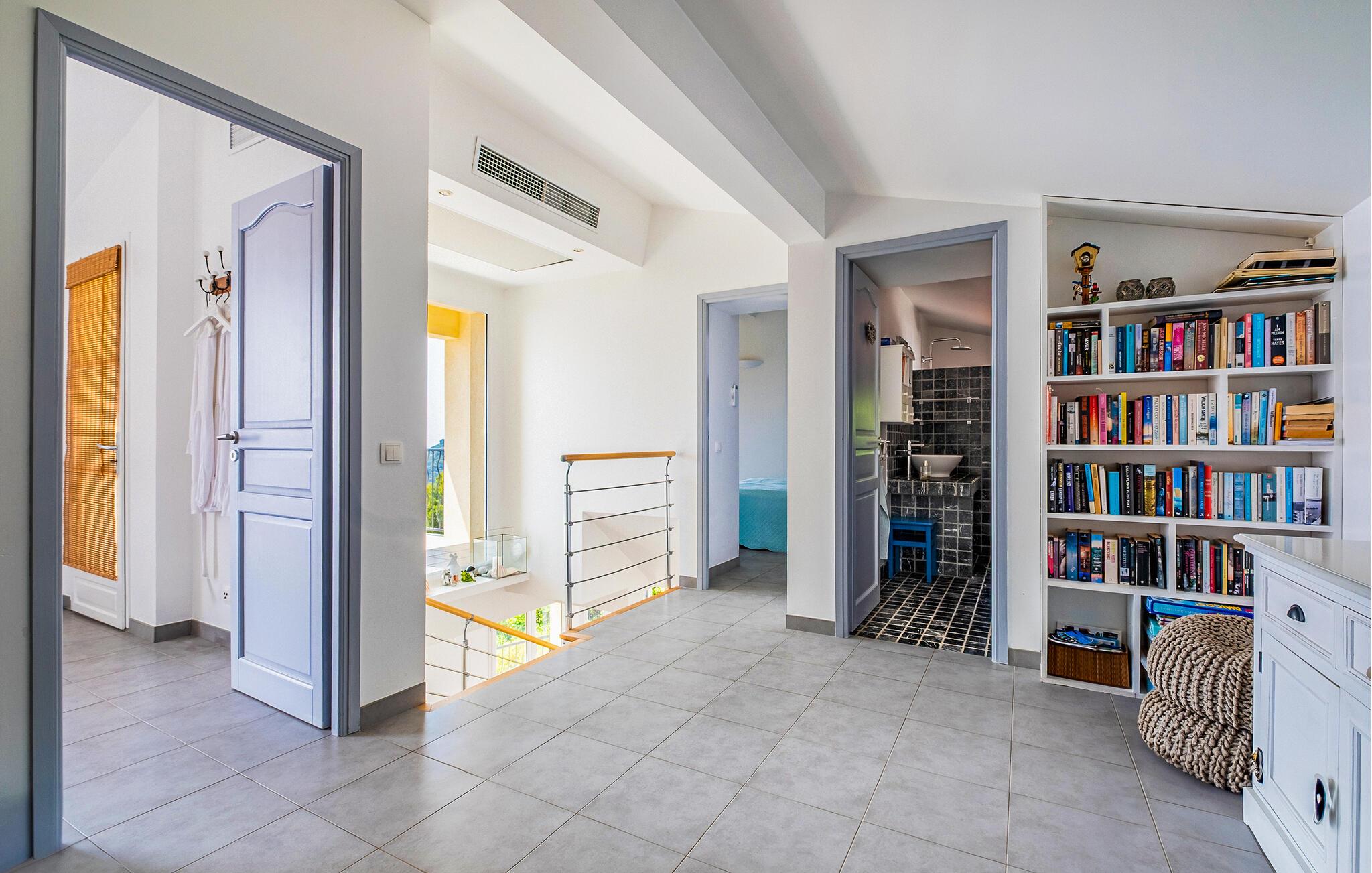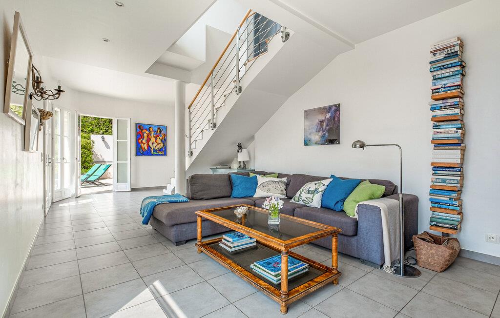 Dette lyse og rummelige feriehus byder jer velkommen ikke langt fra Middelhavets smukke sandstrande og giver jer masser af plads til en hyggelig ferie med venner eller familie. Glæd jer til muntre madlavningsaftener og store gruppemåltider, bladr i en spændende bog i biblioteket, og Find sammen i den behagelige sofa til hyggelige spilleaftener.