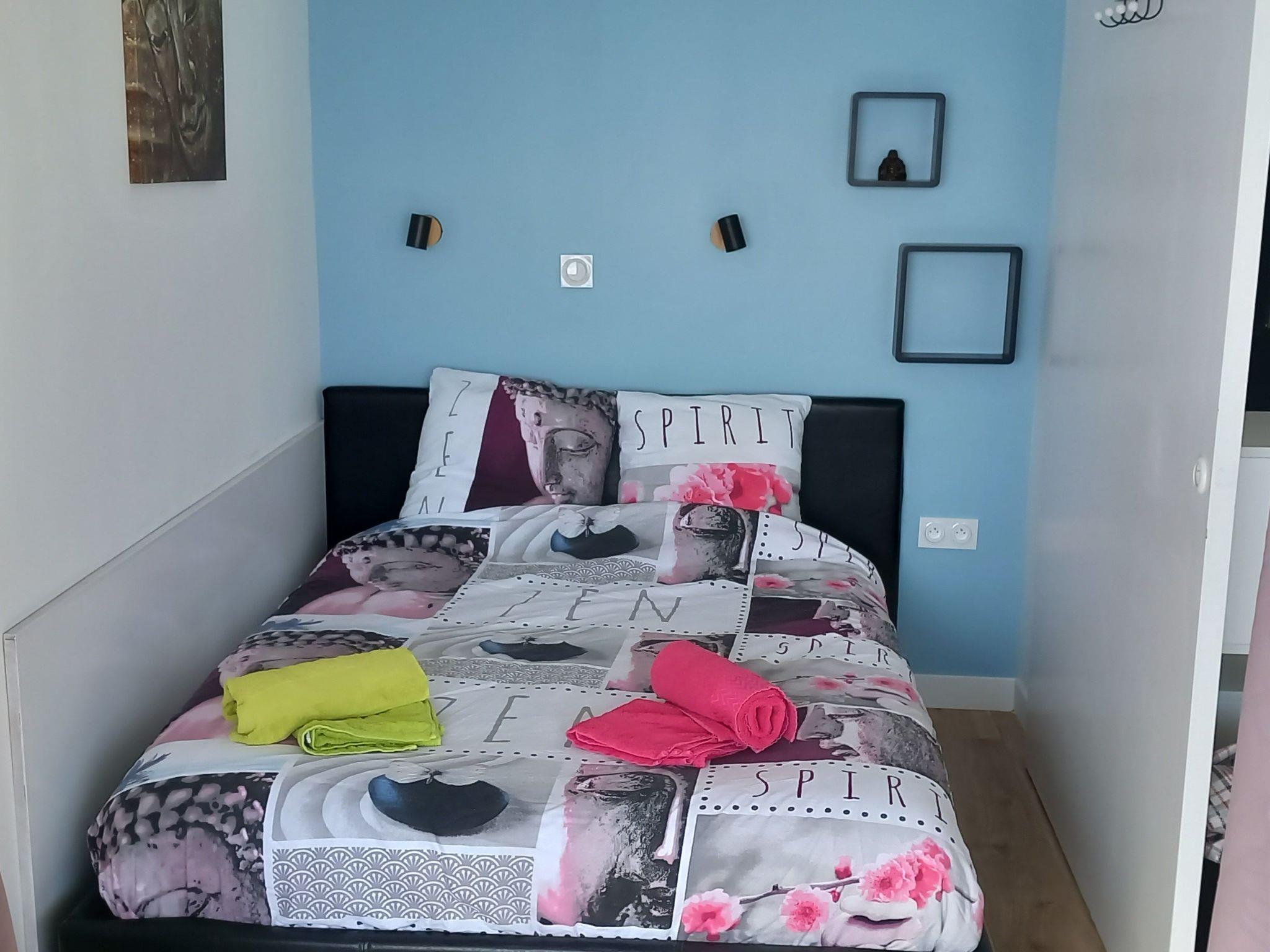 Un salon avec canapé convertible 2 places TV DVD et mini chaîne, une chambre avec un lit 2 places, une cuisine aménagée avec tous les accessoires indispensables, table induction, four, four micro onde, cafetière, lave-vaisselle, une salle de bains avec baignoire, un petit coffre.