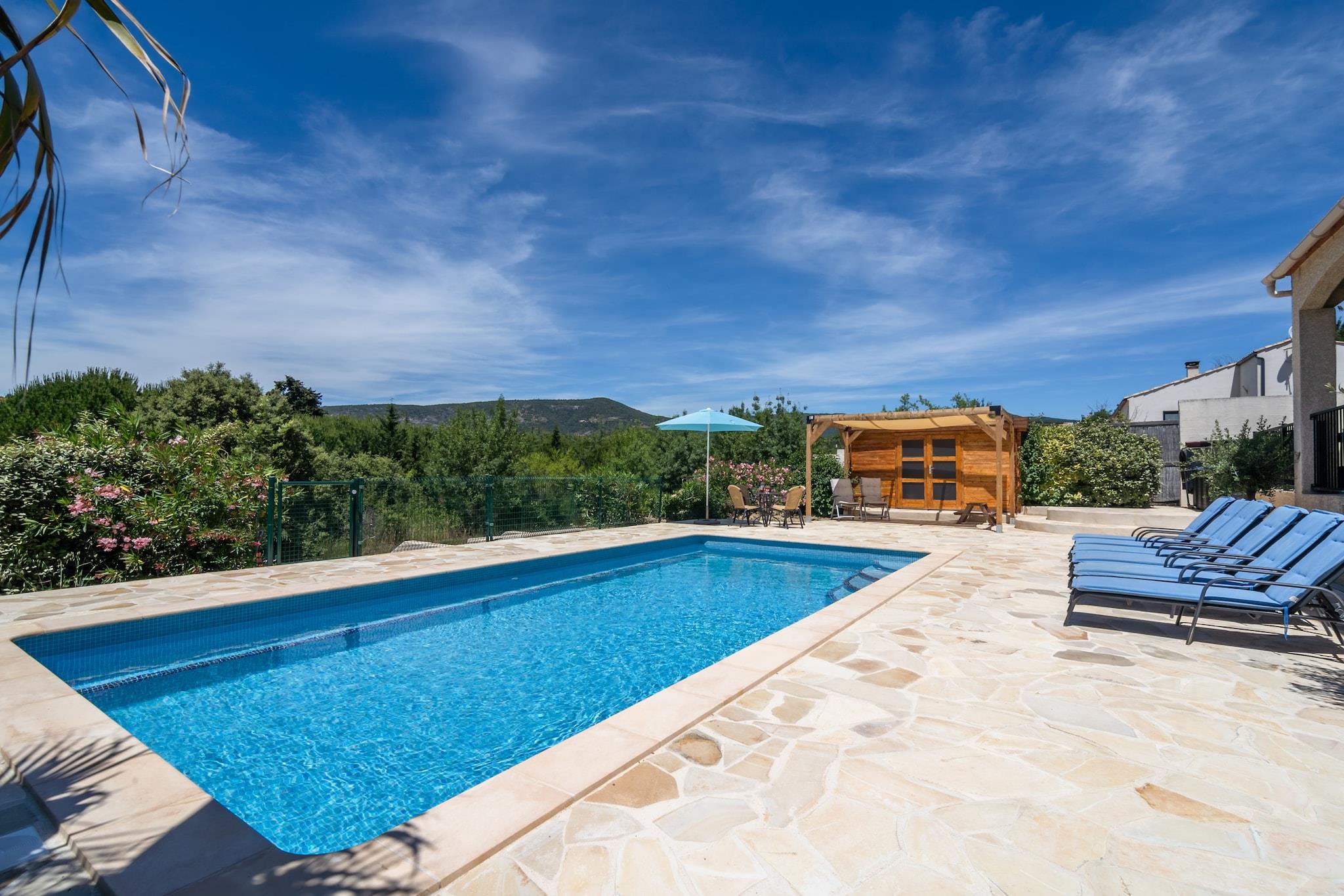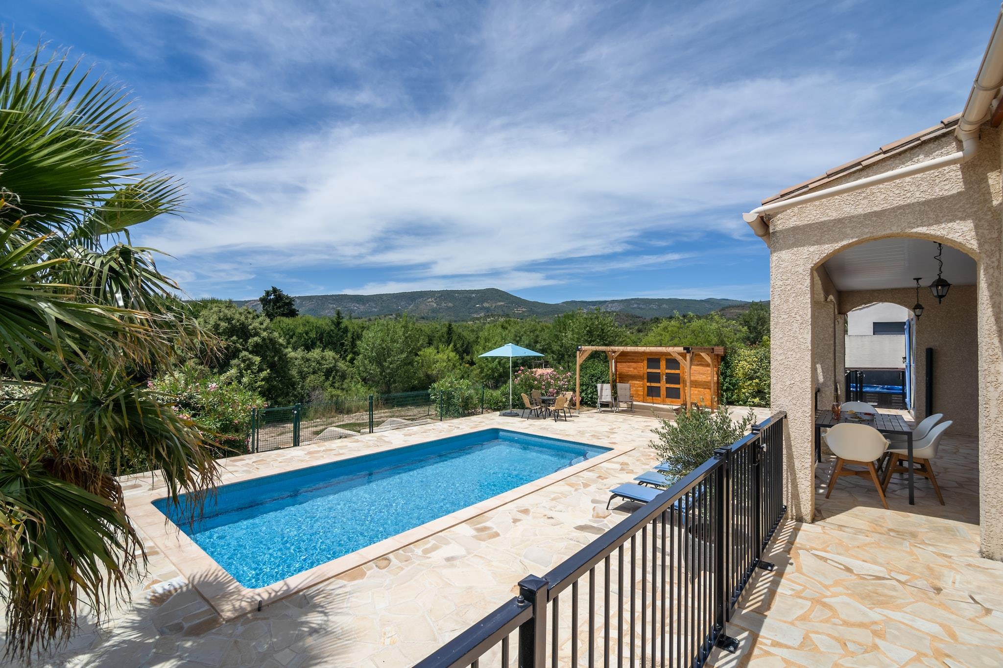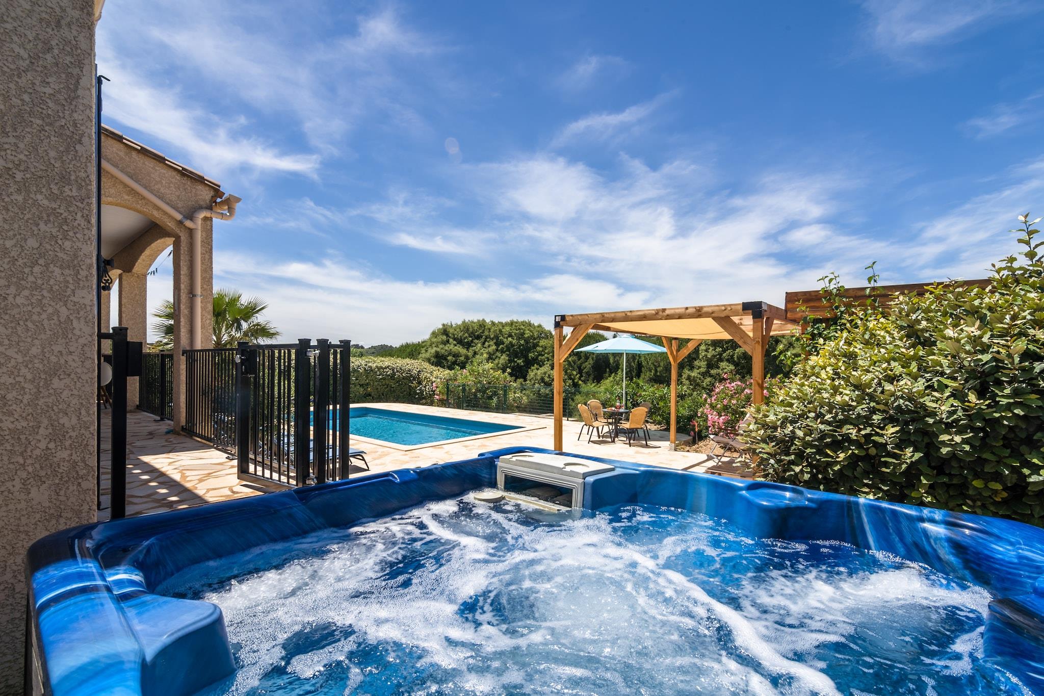 Tranquil Countryside Escape Slap af i ren sindsro i denne charmerende 3-værelses villa i Félines-Minervois, perfekt til familier, venner og deres lodne ledsagere. Beliggende blandt bølgende vinmarker og solbeskinnede landskaber har villaen en privat opvarmet pool, et afslappende boblebad og en frodig indhegnet have - ideel for børn og kæledyr at lege sikkert. Indenfor finder du en lys stue med hollandsk tv, festspil og et fuldt udstyret åbent køkken. Nyd dovne morgener på terrassen med kaffe og friske kager, eller vær vært for en solnedgangsgrill omgivet af naturens beroligende lyde. Perfekt placeret til eventyr Træd udenfor og oplev naturskønne vandrestier lige fra dit dørtrin - ideel til morgenture med din hund. Udforsk nærliggende vinmarker, cykl gennem Minervois-landskabet, eller tag et slag på lokale golfbaner. Vandelskere kan sejle, sejle i kajak eller svømme ved nærliggende søer. Væsentlige faciliteter, fra supermarkeder til postkontorer, er kun få minutter væk, hvilket gør dit ophold lige så bekvemt som det er fredeligt. Smag fra Sydfrankrig Nyd regionens kulinariske skatte på hyggelige landsbybistroer og familiedrevne vingårde. Nyd spisning fra gård til bord i Olonzac eller tag til Carcassonne for fransk gourmetkøkken med middelalderlig charme. Flere caféer og terrasser tager imod kæledyr, så du kan dele oplevelsen med din firbenede ven. Afslut dine aftener med at suge i boblebadet, med et glas lokal vin i hånden, under den stjerneklare Languedoc-himmel.