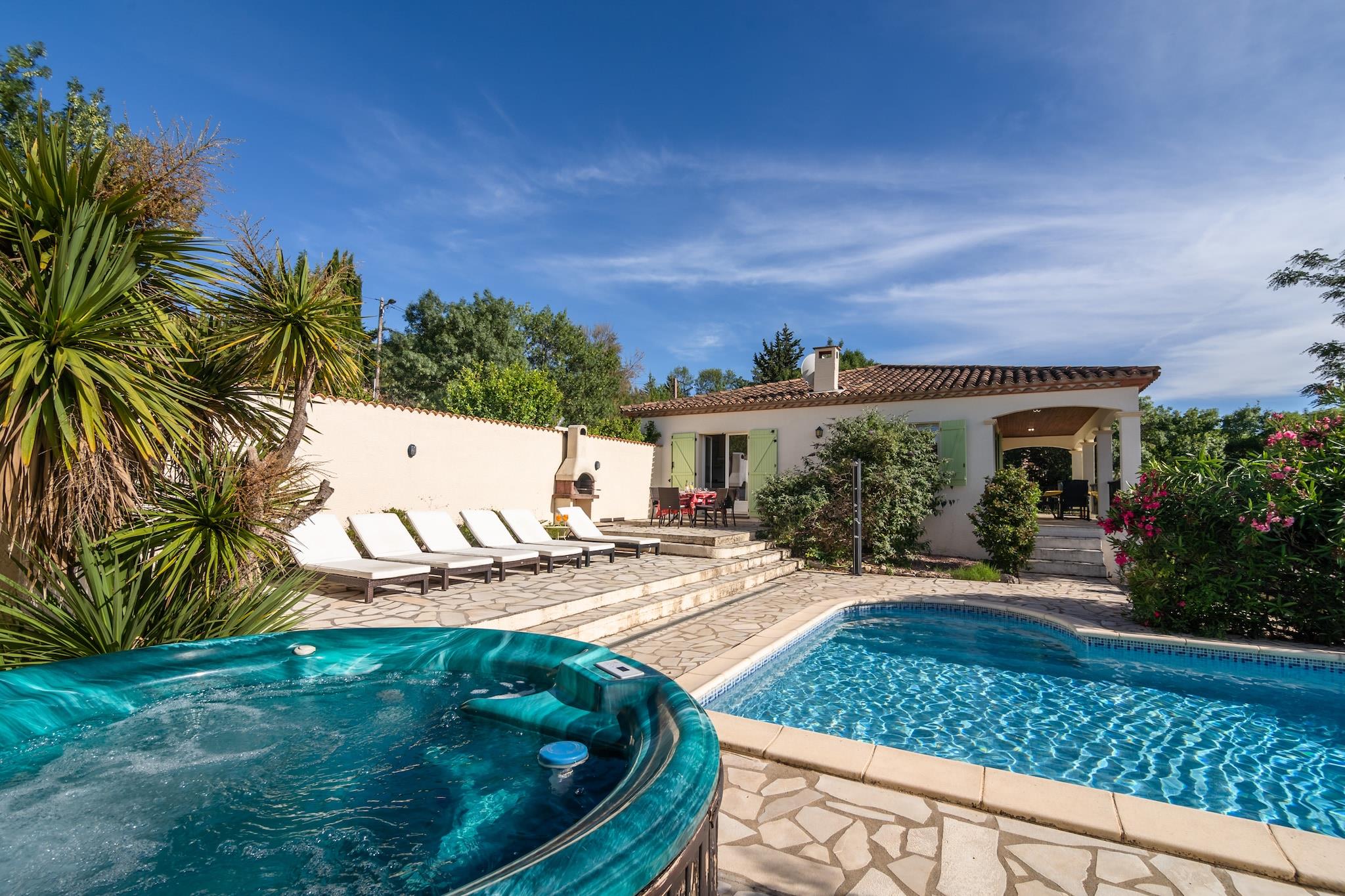 Træd ind i et fredfyldt tilflugtssted i udkanten af Félines-Minervois. Denne smukt dekorerede villa sover komfortabelt for familier eller grupper med 3 soveværelser og tilbyder en privat opvarmet pool og en indbydende udendørs spa opvarmet til 26°C - perfekt til afslapning året rundt. To solrige terrasser giver panoramaudsigt over frodige vinmarker og den maleriske landsby nedenfor, hvilket skaber en fredelig stemning til at slappe af, spille festspil eller nyde udendørs spisning omgivet af naturens skønhed. Villaens beliggenhed er ideel for kæledyrselskere, der er ivrige efter at udforske med deres lodne venner. Tag blide gåture gennem den historiske landsby med en kirke fra det 17. århundrede og ruinerne af Château de Ventajou. Tag ind i de nærliggende Montagne Noire-skove for naturskønne vandreture eller udforsk hundevenlige stier langs Canal du Midi. De lokale markeder i Olonzac, Lézignan og Narbonne byder på en levende smag af regional kultur. Forkæl dine kulinariske sanser med regional spisning kun få minutter væk - fra charmerende landsbyrestauranter til caféer som Café de la Bourse i Rieux Minervois. Tilbage i villaen kan du tilberede friske måltider i det fuldt udstyrede køkken med en juicer og moderne apparater, og derefter nyde dem ved grillen eller på den skyggefulde terrasse. Med aircondition, et boblebad til fem og tankevækkende faciliteter, herunder cykler og bordtennis, blander denne villa komfort med autentisk fransk charme på landet - perfekt til mindeværdige ferier med dine kære, inklusive kæledyr.