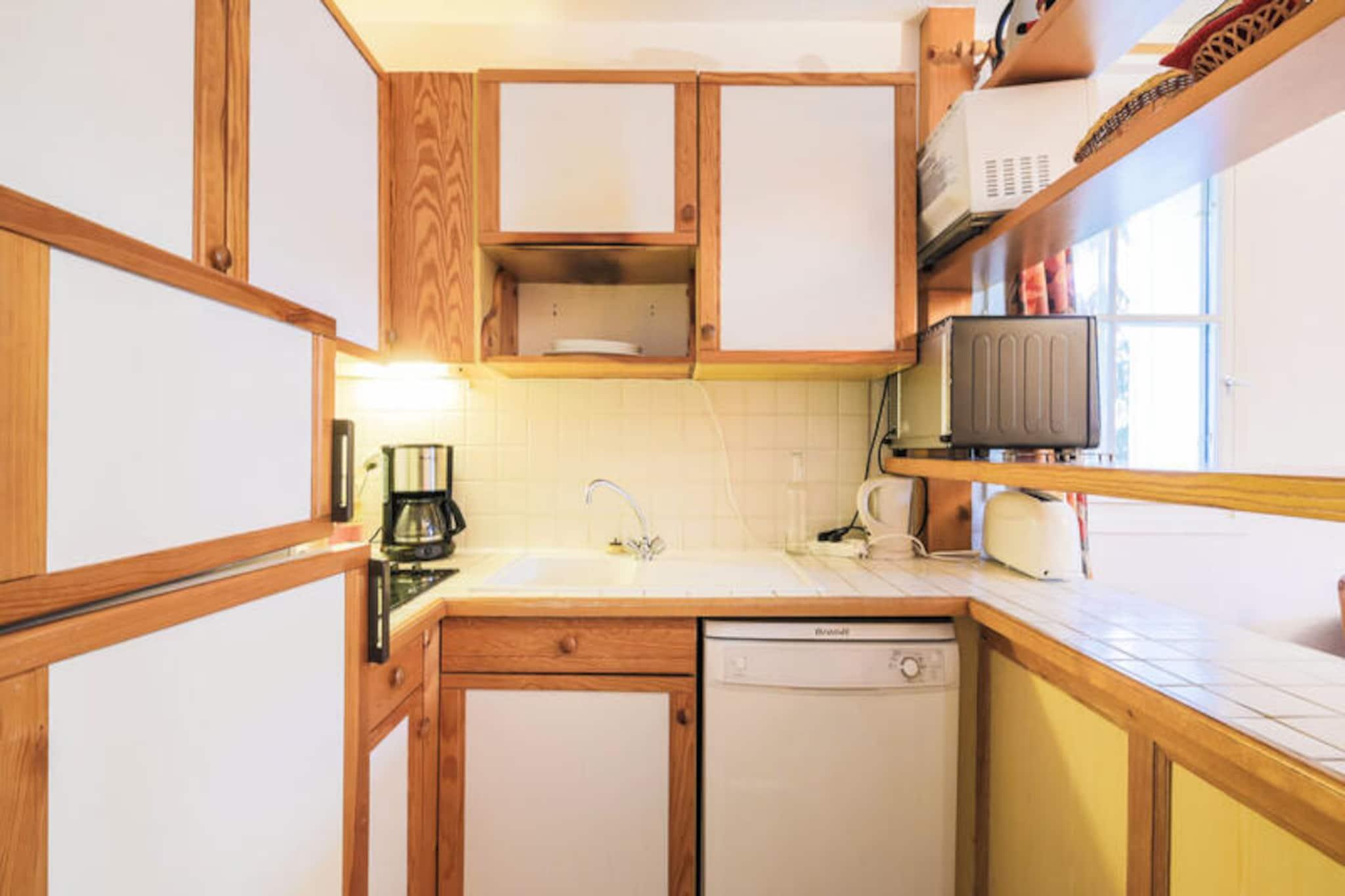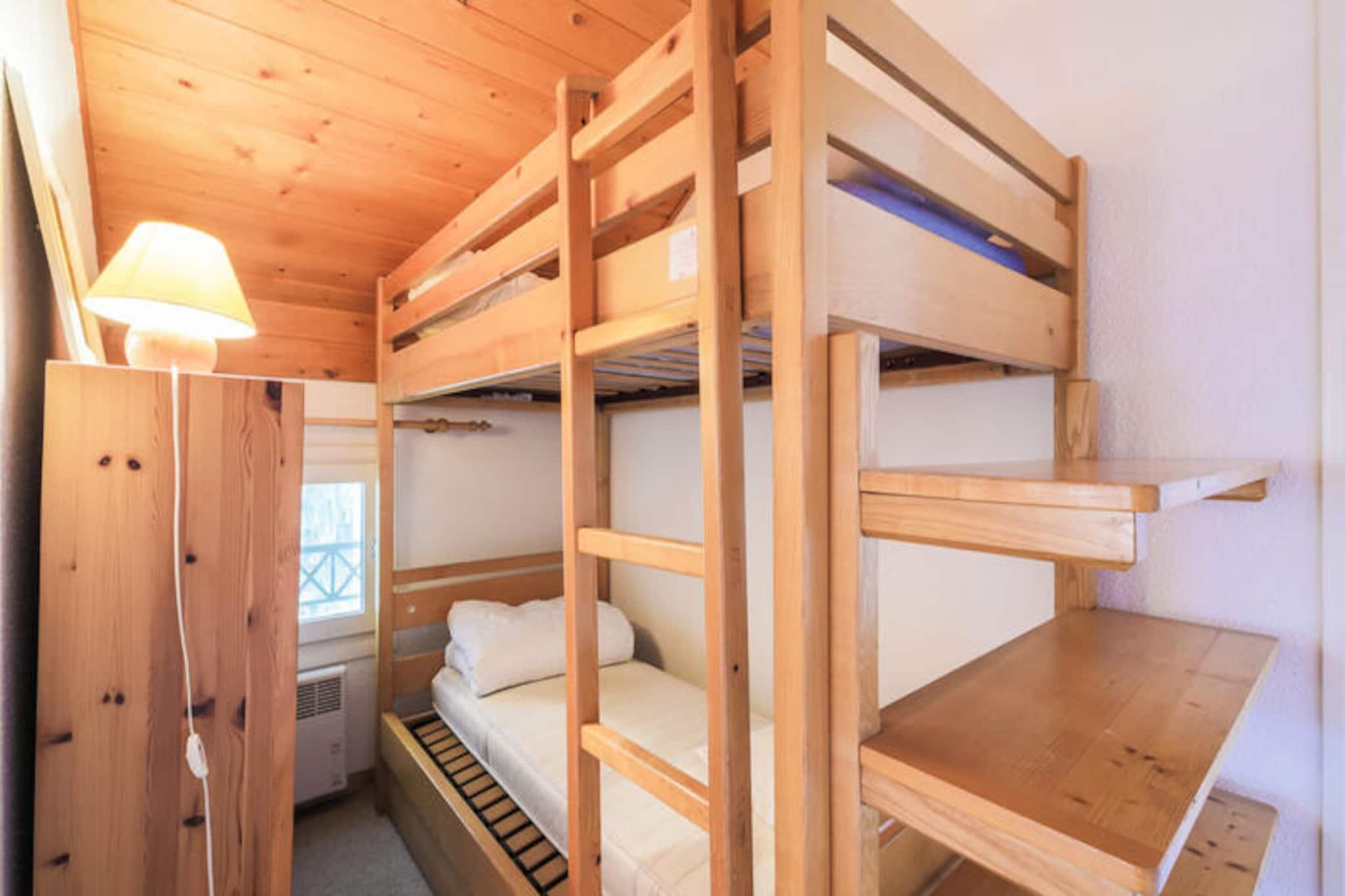 Højt oppe i det fredfyldte Hameau-distrikt i Flaine tilbyder Arbaron Residence et roligt alpint tilflugtssted omgivet af betagende bjergudsigter. Denne charmerende residens i chaletstil, der ligger i 1800 meters højde, harmonerer perfekt med sine naturlige omgivelser og giver en fredelig tilflugtssted, samtidig med at den forbliver bekvemt tæt på feriestedets pulserende centrum. Forestil dig at vågne op til panoramaudsigt over dalen, indånde frisk bjergluft og nyde den perfekte balance mellem afslapning og eventyr. Inde i din 56 m² store lejlighed finder du et gennemtænkt designet rum, der er ideelt til familier eller grupper på op til otte gæster. Stuen har en komfortabel sovesofa, mens spiseområdet indbyder til fælles måltider omkring et bord med plads til otte. Det åbne køkken er fuldt udstyret til at tilberede solide morgenmader eller hyggelige middage efter en dag på pisterne. Med to soveværelser, en sovealkove, to badeværelser og et separat toilet sikrer planløsningen både komfort og privatliv. En privat balkon tilbyder det perfekte sted at slappe af og nyde det alpine landskab. For skientusiaster ligger residensen cirka 1 km fra ESF-mødestederne og Flaine Piou Piou Club. Fra den nærliggende Hameau-rundkørslen kan du få adgang til Gérats-stoleliften via Opal-pisten eller benytte dig af den gratis shuttle-service, der kører hvert 15. minut og forbinder dig med andre pister og vigtige områder i Flaine. De livlige kvarterer Flaine Forêt og Flaine Forum med deres butikker, restauranter og afterski-muligheder ligger kun en kort tur væk med shuttle. Uanset om du er her for spændende skieventyr, fredelige bjergvandringer eller blot for at slappe af i fantastiske alpine omgivelser, lover Arbaron Residence et uforglemmeligt ophold. Lad de franske alpers skønhed og komforten i denne charmerende hytte gøre din ferie til noget helt særligt.