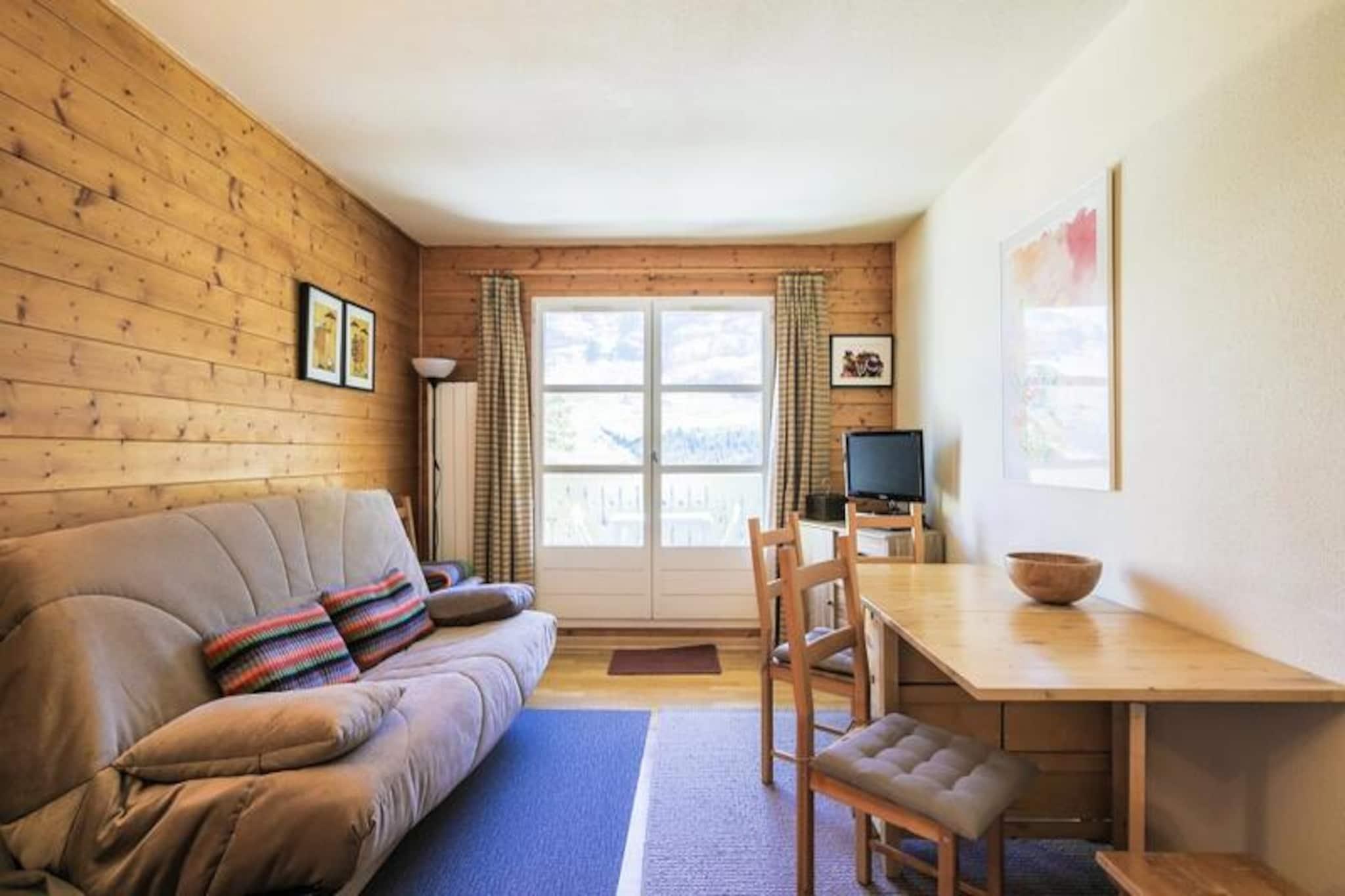 Højt over den fredfyldte Flaine-dal tilbyder Arbaron Residence et idyllisk tilflugtssted for dem, der søger ro i de franske alper. Beliggende i det fredelige Hameau-distrikt i 1.800 meters højde, harmonerer denne charmerende residens i chaletstil perfekt med sine naturlige omgivelser og tilbyder en betagende udsigt over dalen og de snedækkede tinder. Uanset om du er her for at slappe af eller udforske, lover denne beliggenhed en mindeværdig alpin flugt. Residensen har 12 omhyggeligt designede lejligheder, inklusive din hyggelige 27 m² store feriebolig. Lejligheden, der ligger på første sal, er perfekt til op til fire gæster med en komfortabel stue med en sovesofa til to personer og en sovealkove med køjesenge. Det åbne køkken er udstyret med alle nødvendige faciliteter, hvilket gør det nemt at tilberede måltider efter en dag med eventyr. Slap af i den indbydende opholdsstue eller gå ud på balkonen for at nyde den friske bjergluft og det fantastiske landskab. Moderne faciliteter som Wi-Fi (mod et ekstra gebyr) sikrer et behageligt ophold, mens sengelinned og håndklæder er inkluderet i vintersæsonen. For skientusiaster er residensen bekvemt placeret cirka 1 km fra ESF-mødestederne og Flaine Piou Piou Club. Fra den nærliggende Hameau-rundkørslen kan du komme til Gérats-stoleliften via Opal-pisten, afhængigt af sneforholdene. En gratis shuttle-service kører hvert 15. minut og forbinder dig med Flaines pister og livlige kvarterer som Flaine Forêt og Flaine Forum. Efter en dag på pisterne kan du vende tilbage til roen i Hameau, hvor du finder en købmand med bar, restaurant og sportsbutik kun en kort gåtur væk. Uanset om du er tiltrukket af spændingen ved skiløb eller tiltrækningen af ??et fredeligt alpint liv, er Arbaron Residence din port til en uforglemmelig bjergferie.