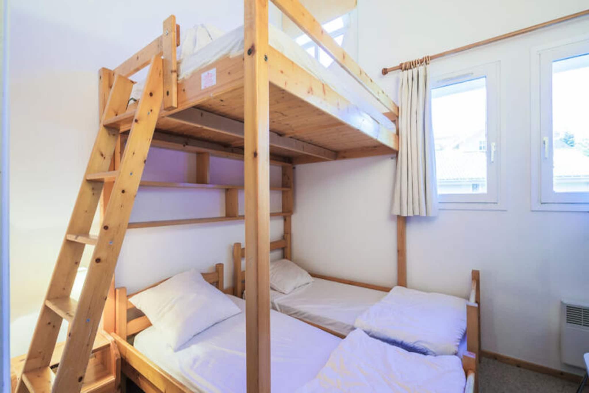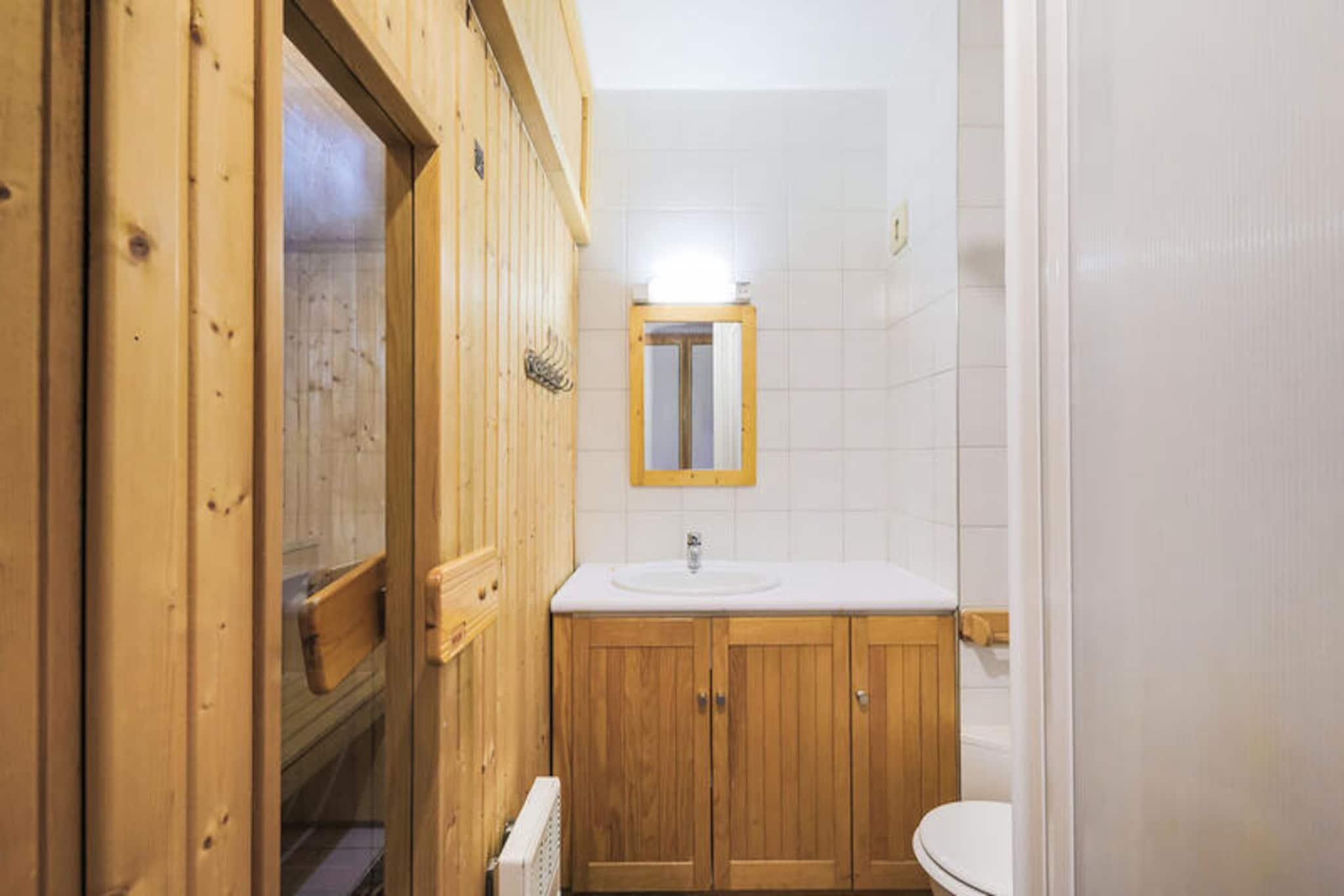 Højt over det maleriske feriested Flaine, i en højde af 1.800 meter, ligger Le Château de Crans Residence, en oase af ro og alpin charme. Denne skandinaviske hytte, beliggende i Hameau de Flaine, tilbyder en betagende panoramaudsigt over de majestætiske alpetoppe og fordyber dig i bjergenes fredfyldte skønhed. Her kan du undslippe hverdagens travlhed, mens du stadig er tæt på alt det, Flaine har at byde på. \n\nIndenfor kan boligen prale af 11 fuldt udstyrede lejligheder, der hver især er designet til komfort og afslapning. Din rummelige feriebolig på 129 m² har fire soveværelser, to badeværelser og en privat sauna, perfekt til at slappe af efter en dag på pisterne. Den åbne opholdsstue med hyggelige sofaer, en brændeovn og et spisebord til ti personer skaber et varmt og indbydende rum, hvor familie og venner kan samles. Køkkenet er udstyret med alt, hvad du behøver for at tilberede solide måltider, mens balkonen tilbyder et fredeligt tilflugtssted, hvor du kan nyde den fantastiske bjergudsigt. \n\nSkientusiaster vil sætte pris på nærheden til ESF-mødestederne og Piou Piou Club, kun 500 meter væk. Adgang til pisterne er nem med Gérats-stoleliften og Opal-pisten i nærheden, afhængigt af sneforholdene. For ekstra bekvemmelighed kører der gratis shuttle-service hvert 15. minut, der forbinder dig med feriestedets aktivitetscentre, butikker og spisesteder. Landhandelen, kun to minutter væk, tilbyder fornødenheder, skiudlejning og en indbydende restaurant. \n\nUanset om du søger eventyr på pisterne eller en fredelig alpin flugt, tilbyder Le Château de Crans Residence den perfekte blanding af komfort, bekvemmelighed og betagende omgivelser. Skab uforglemmelige minder i dette idylliske bjergparadis.