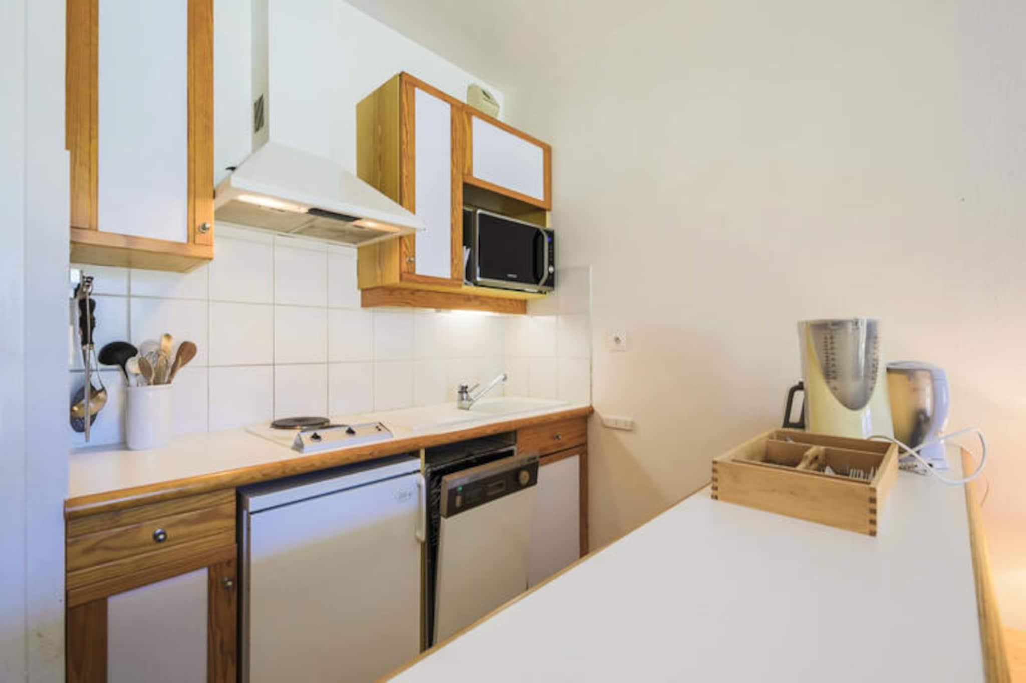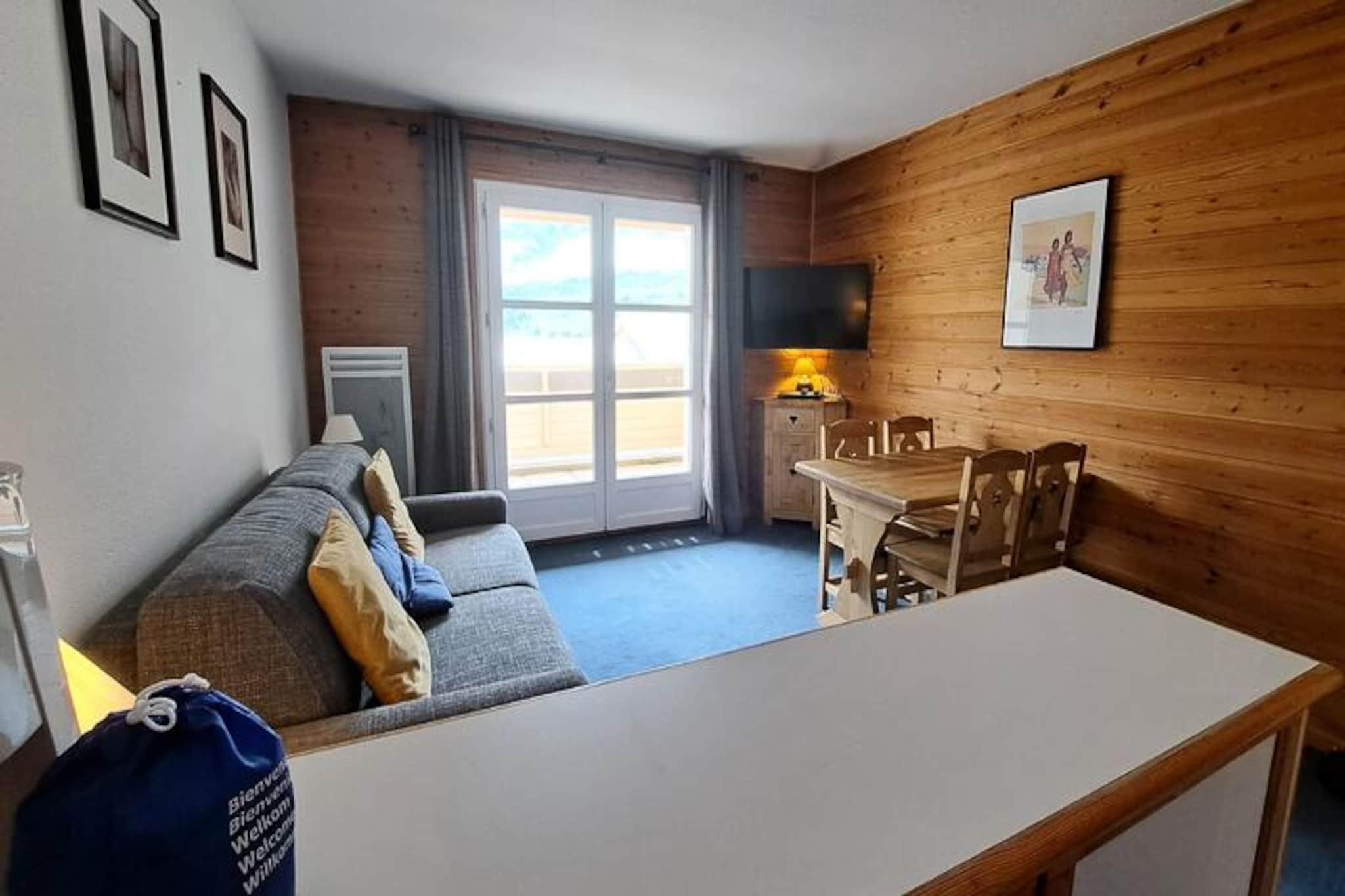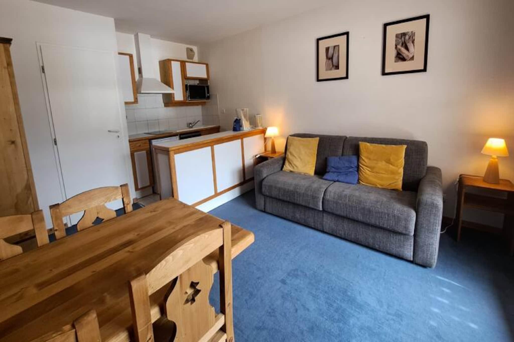 Bo på Le Château de Crans Residence i Hameau de Flaine, i 1.800 m højde. Denne charmerende residens er en stor træhytte i skandinavisk stil med 11 komfortable og fuldt udstyrede lejligheder. Beliggende i et roligt og autentisk område af Flaine, befinder du dig højt over feriestedet og kan nyde en utrolig panoramaudsigt over de smukke alpine bjerge. På skisportsstedet befinder du dig cirka 500 m fra ESF-mødestederne og Piou Piou Club (ved siden af ??residensen "Les Terrasses d'Hélios"). Fra Hameau-rundkørslen kan du tage "Opal"-bakken for at komme til Gérats-stoleliften (afhængigt af sneforholdene). For at nå de andre pister og vende tilbage til Hameau kan du benytte dig af en gratis shuttle-service; den kører hele dagen, hvert 15. minut. Kun 2 minutter fra din bolig ligger købmandsforretningen, som huser Flaine Reservation-bureauet, en skiudlejningsbutik, en restaurant og en kiosk med basale fornødenheder. For større indkøb kan du besøge Spar-supermarkedet, der ligger i "Les Terrasses d'Hélios"-residensen. For at nå resortets aktivitetscentre kan du tage de gratis Skibus-shuttlebusser (i løbet af dagen) og Hameau-shuttlebussen (fra kl. 18.30 til 23.45), som tager dig til Flaine Forêt på få minutter, hvorfra du kan nå Flaine Forum, hvor de fleste barer, restauranter og aktiviteter ligger. Med shuttlebusserne og de to lifter (der er i drift døgnet rundt), der forbinder Forêt- og Forum-kvartererne, er det således meget nemt at komme rundt i resortet. Ideelt til at nyde både roen i højderne og dynamikken i resortets centrum. Bemærk venligst: Der opkræves ekstra gebyrer for sen ankomst. Din feriebolig inkluderer: 1 stue, 1 sovealkove, 1 køkken, 1 badeværelse, 1 separat toilet og 1 balkon. Areal: 27 m². Beliggenhed: 1. sal. Stueplan: 1 sovesofa (plads til 2). Spiseplads: 1 bord med 4 stole. Køkken åbent til stuen. Sovelkoveplan: 2 enkeltkøjesenge. Badeværelsesplan: badekar. 1 separat toilet. Depositum - Depositummet skal betales via din personlige konto: https://mon-compte.maeva.com. Beløbet afhænger af lejlighedstypen. Sengelinned - Tillæg (undtagen om vinteren). Tillæg hele året for korte ophold. Badelinned - Tillæg (undtagen om vinteren). Tillæg hele året for korte ophold og Budget-intervallet. Turistskat (tillæg) - Skal betales via din kundekonto: https://mon-compte.maeva.com. Beløbet varierer afhængigt af beliggenheden. Gratis for børn under 18 år. Slutrengøring - Ekstra gebyr. Skal udføres ved opholdets afslutning, enten af ??gæsten eller ved betaling ved ankomst. Rengøringsdepositum: kræves på stedet ved nøgleudlevering. Internetadgang - Wi-Fi - Ekstra gebyr Kæledyr tilladt - Maks. ét kæledyr pr. ophold (ekstra gebyr) Sikkerhedsdepositum (i euro) - 400 Sengelinned - Ekstra gebyr Slutrengøring - Ekstra gebyr. Skal udføres ved opholdets afslutning, enten af ??gæsten eller ved betaling ved ankomst.