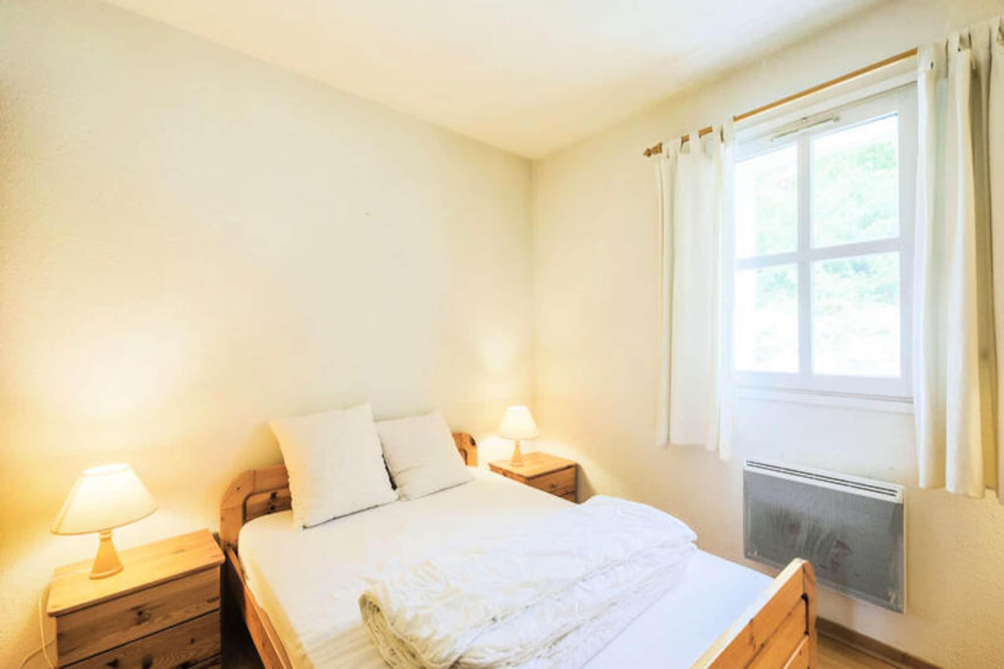 Højt over det charmerende feriested Flaine, i en højde af 1800 m, tilbyder Résidence Le Château de Crans en rolig oase med betagende panoramaudsigt over de majestætiske alpetoppe. Denne skandinaviske træhytte ligger i den fredelige landsby Flaine og tilbyder et roligt tilflugtssted, samtidig med at den er tæt på feriestedets pulserende hjerte. Her skaber den friske bjergluft og de omkringliggende landskabers skønhed de perfekte rammer for din alpine ferie. \n\nIndenfor byder residensen på en hyggelig 2-værelses lejlighed designet til at rumme op til seks gæster. Med en rummelig opholdsstue, et veludstyret køkken, et komfortabelt soveværelse, en sovealkove og et moderne badeværelse er hver eneste detalje omhyggeligt arrangeret for at sikre din komfort. Det varme træinteriør og den smagfulde indretning afspejler bjergenes charme og gør det til et indbydende sted at slappe af efter en dag med eventyr. Vigtige faciliteter, herunder et rengøringssæt og valgfrie tjenester såsom sengelinned og håndklæder, er tilgængelige for at forbedre dit ophold. \n\nFor skientusiaster er beliggenheden ideel. ESF-skiskolen og Piou Piou Club ligger kun 500 m væk, og Gérats-stoleliften er let tilgængelig via den nærliggende