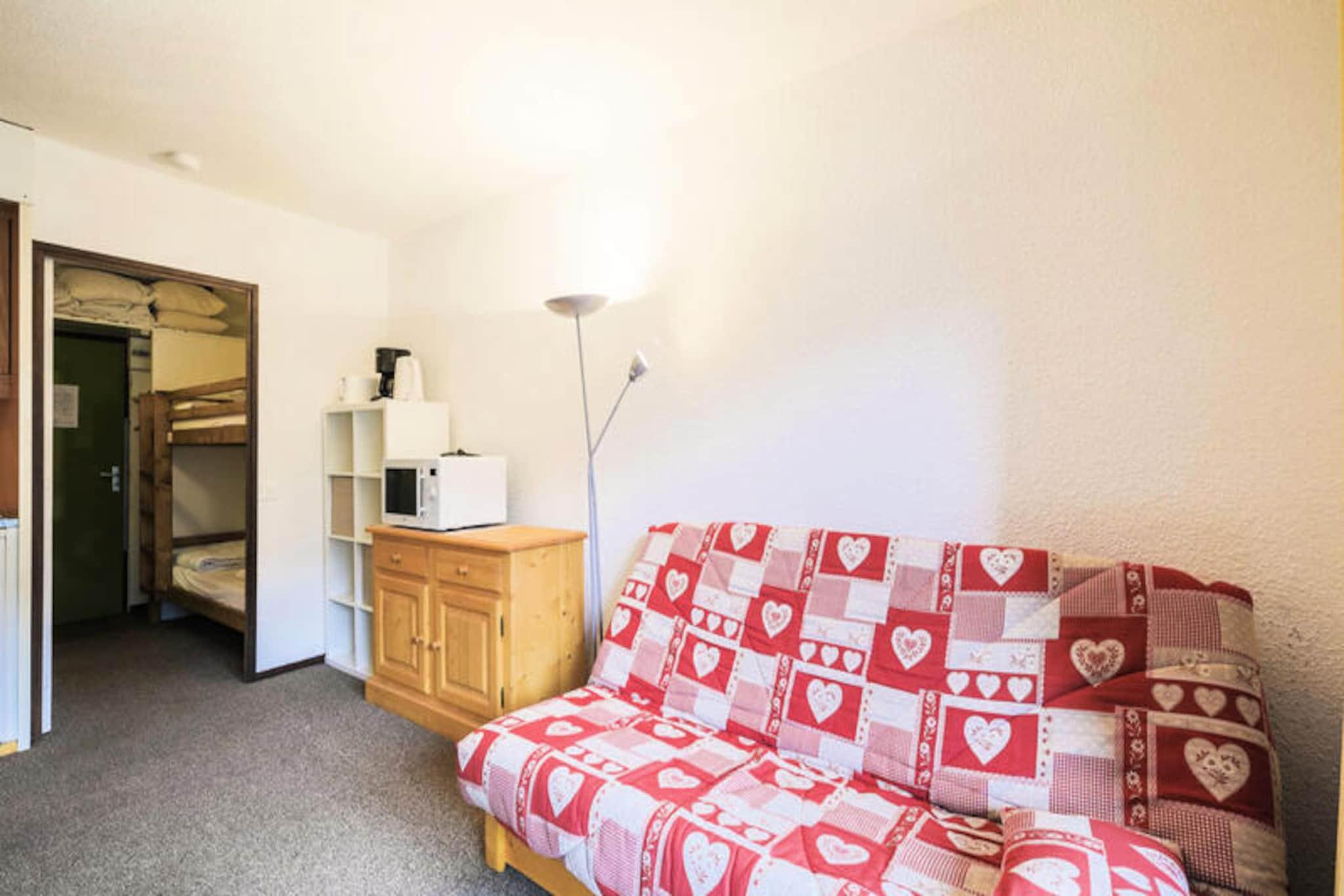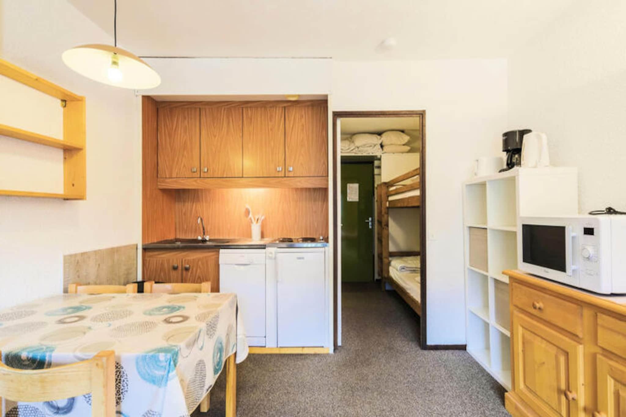 I det fredelige hjerte af Flaine Forêt tilbyder denne hyggelige studiolejlighed i Andromède-residensen et dejligt alpint fristed for op til fire gæster. Omgivet af den uberørte skønhed i de franske Alper er det et paradis for dem, der søger både ro og bekvemmelighed. Forestil dig at træde ud af døren og befinde dig mindre end 100 meter fra charmerende restauranter og en shoppingarkade, hvor du kan købe lokale dagligvarer eller nyde et varmt måltid efter en dag på pisterne. Studiet er omhyggeligt designet for at maksimere komfort og praktisk anvendelighed. Med en stue, et veludstyret køkken, en sovealkove og et moderne badeværelse tilbyder det alt det nødvendige for et afslappende ophold. Maeva Home Budget Label sikrer overkommelige priser uden at gå på kompromis med kvaliteten, hvilket gør det til et ideelt valg for rejsende med et begrænset budget. Yderligere tjenester såsom sengelinned, håndklæder og rengøring ved afrejse kan arrangeres for at forbedre din oplevelse, mens det medfølgende rengøringssæt sikrer et problemfrit ophold. For skiløbere ligger skilifterne kun 300 meter væk med nem og relativt flad adgang. En skibutik i den nærliggende bolig gør det nemt at udstyre sig til sine alpine eventyr. Uanset om du vil ud på pisterne eller udforske den charmerende landsby, er alt, hvad du har brug for, inden for rækkevidde. Vælg denne fredelige, men centralt beliggende studiolejlighed til din næste bjergferie. Med sin blanding af komfort, overkommelige priser og nærhed til vigtige faciliteter lover den et mindeværdigt ophold i den fortryllende Flaine Forêt.