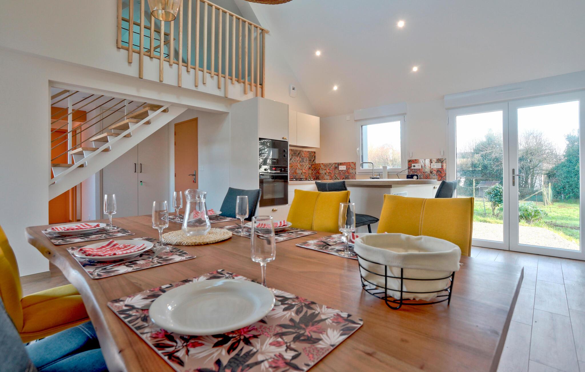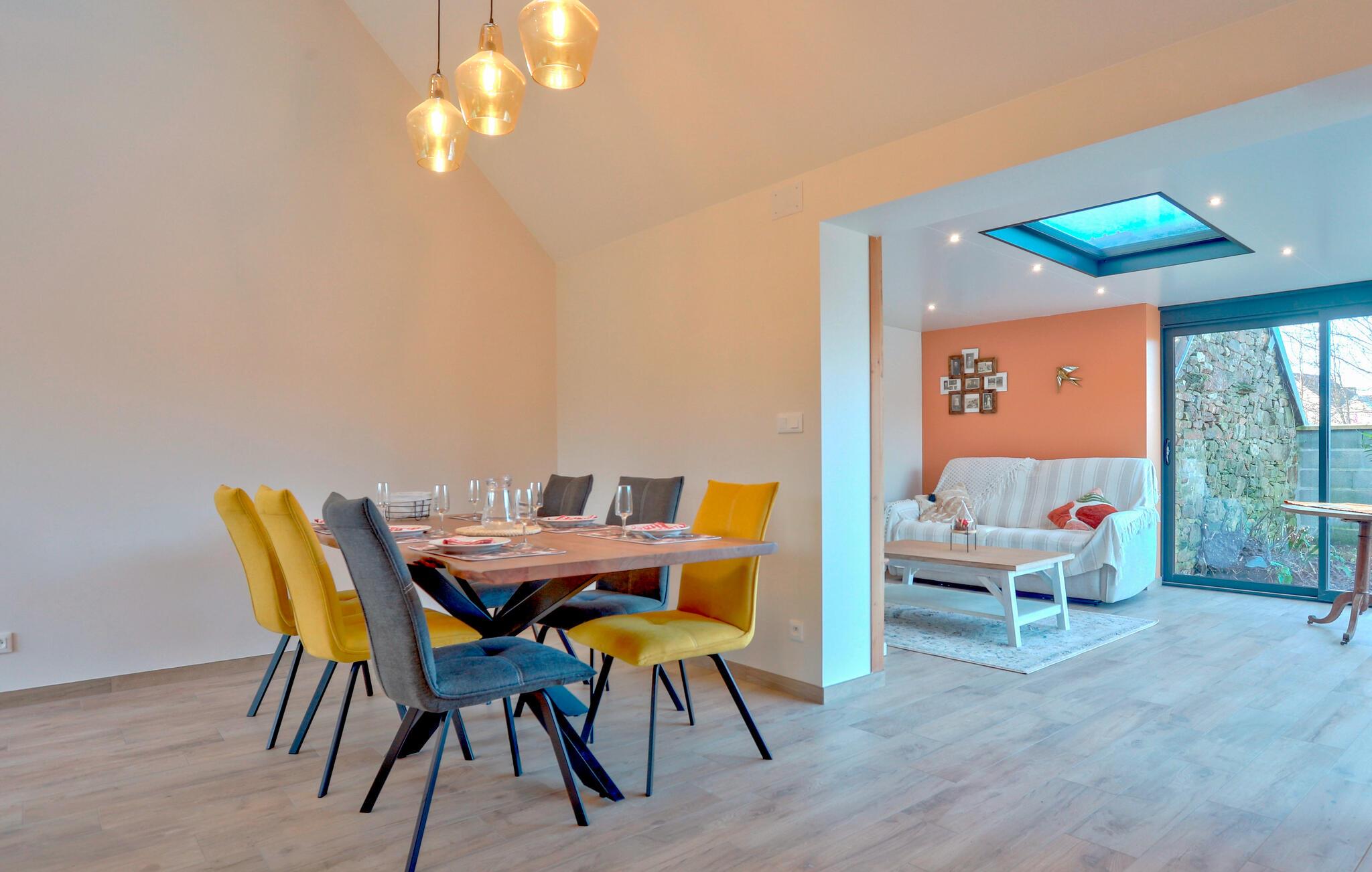 Dette lysfyldte, moderne feriehus er en sand oase af komfort og ro. Store vinduespartier og ovenlys bringer dagslyset ind i de rummelige opholdsrum, mens den katedral-lignende spisestue skaber en unik ramme om fælles måltider. Den åbne planløsning forbinder boligen med den omkringliggende natur – ideelt til afslappende timer.
