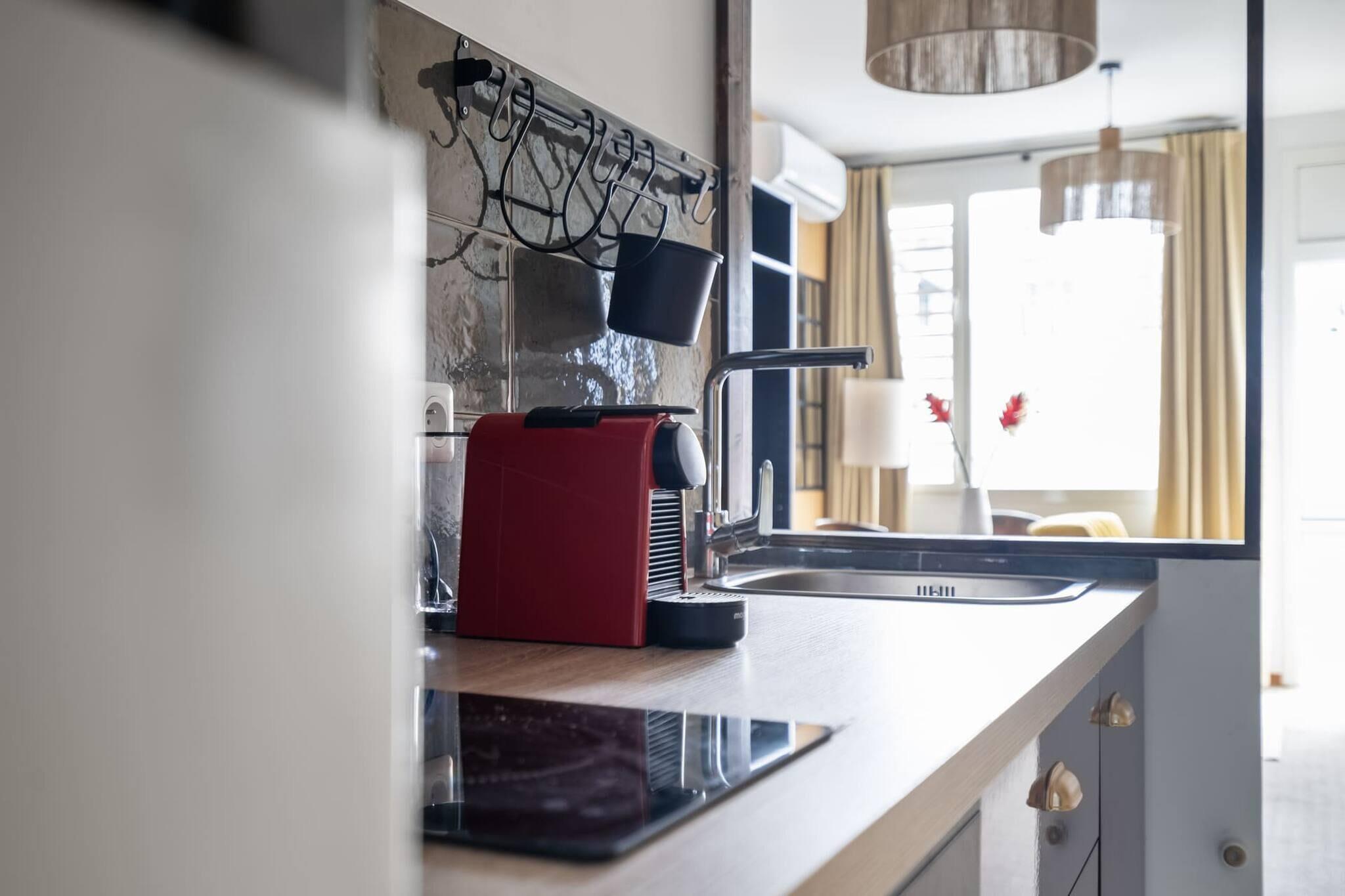 Nyd komforten i denne stilfulde og veludstyrede lejlighed i hjertet af Fort-de-France. Med to hyggelige soveværelser og plads til op til fire gæster er det den perfekte base for par, venner eller forretningsrejsende, der søger bekvemmelighed, afslapning og adgang til byens højdepunkter. Lejligheden er fordelt på 60 m² og tilbyder en lys og luftig planløsning med to soveværelser, der hver har en dobbeltseng, samt to tv'er med satellitkanaler til underholdning. Det åbne køkken er udstyret med alt, hvad du behøver for nem madlavning, herunder køleskab, ovn, mikrobølgeovn, opvaskemaskine, kaffemaskine, brødrister og meget mere. En privat terrasse med havemøbler inviterer dig til at nyde den tropiske brise, mens aircondition i alle værelser sikrer komfort dag og nat. Lejligheden ligger kun 15 minutter fra lufthavnen og kun 6 minutters gang fra strandene La Française og Malécon, og giver dig mulighed for at udforske Fort-de-Frances charmerende bymidte helt til fods. Gæsterne har adgang til et mødelokale i Le Botanik-bygningen og kan nyde måltider på hotellets restaurant, Kreyol Green, som er kendt for sine sunde og velsmagende muligheder. Med Wi-Fi, vaskemaskine og udendørs parkering er alt til stede for et problemfrit og behageligt ophold på Martinique.