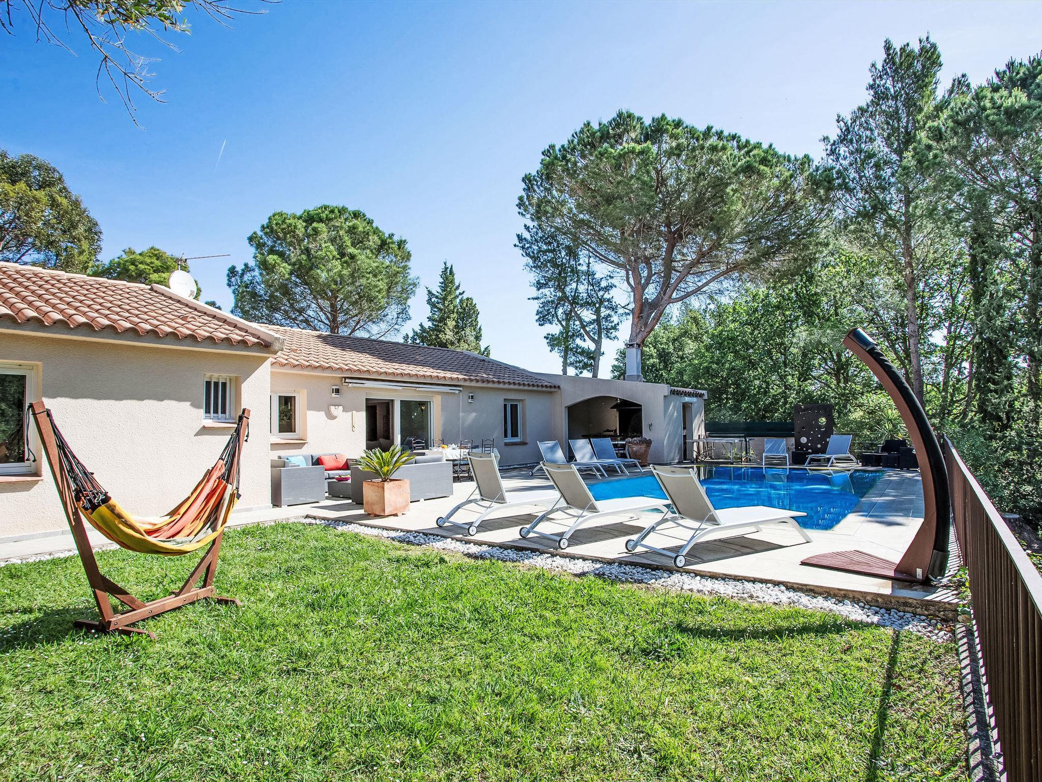 Fourques 8 km from Thuir: Single-family house "Côté Sud". In the resort 50 m from the centre of Fourques, in a quiet position in the residential district, 23 km from the sea, 23 km from the beach. Private: property 5'000 m2 (fenced), well-kept garden (fenced), swimming pool angular, heated, with privacy (9 x 4 m, depth 120 - 200 cm, seasonal availability: 01.Apr. - 15.Oct.) with shutter cover. Outdoor shower, pool house with cooking stove, table tennis, boules, terrace, garden furniture, barbecue house, pool maintenance by the owner/gardener. Parking (for 5 cars) on the premises. Grocery 50 m, restaurant 100 m, bakery 50 m, bus stop 100 m, railway station "Perpignan" 20 km, sandy beach "Saint Cyprien" 23 km. Sports harbour 23 km, golf course (18 hole) 23 km. Nearby attractions: le Monastir del Camp 4 km, Collioure 33 km, Thuir, cité du Byrrh et ses caves 8 km, Castelnou, village médiéval & château 9 km, Carcassonne 132 km, Espagne 24 km. Well-known lakes can easily be reached: Lac de Villeneuve de la Raho 14 km, Lac de St Jean Pla de Corts 5 km. Hiking paths: St Martin du Canigou 54 km, Pic du Canigou 64 km, Lac des Bouillouses 89 km. Please note: car recommended.