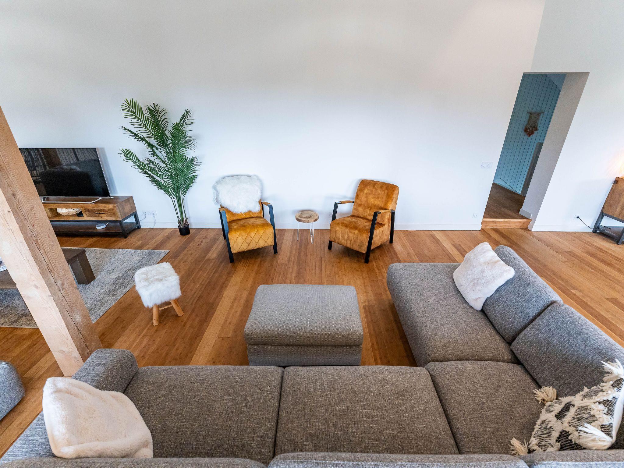 Outside, the chalet is surrounded by a private garden on the edge of a wood, providing a tranquil and secluded setting. There is a lovely terrace and balcony where you can relax in the open air or enjoy family meals. For cycling enthusiasts, there is a special covered car park to keep your bikes safe.