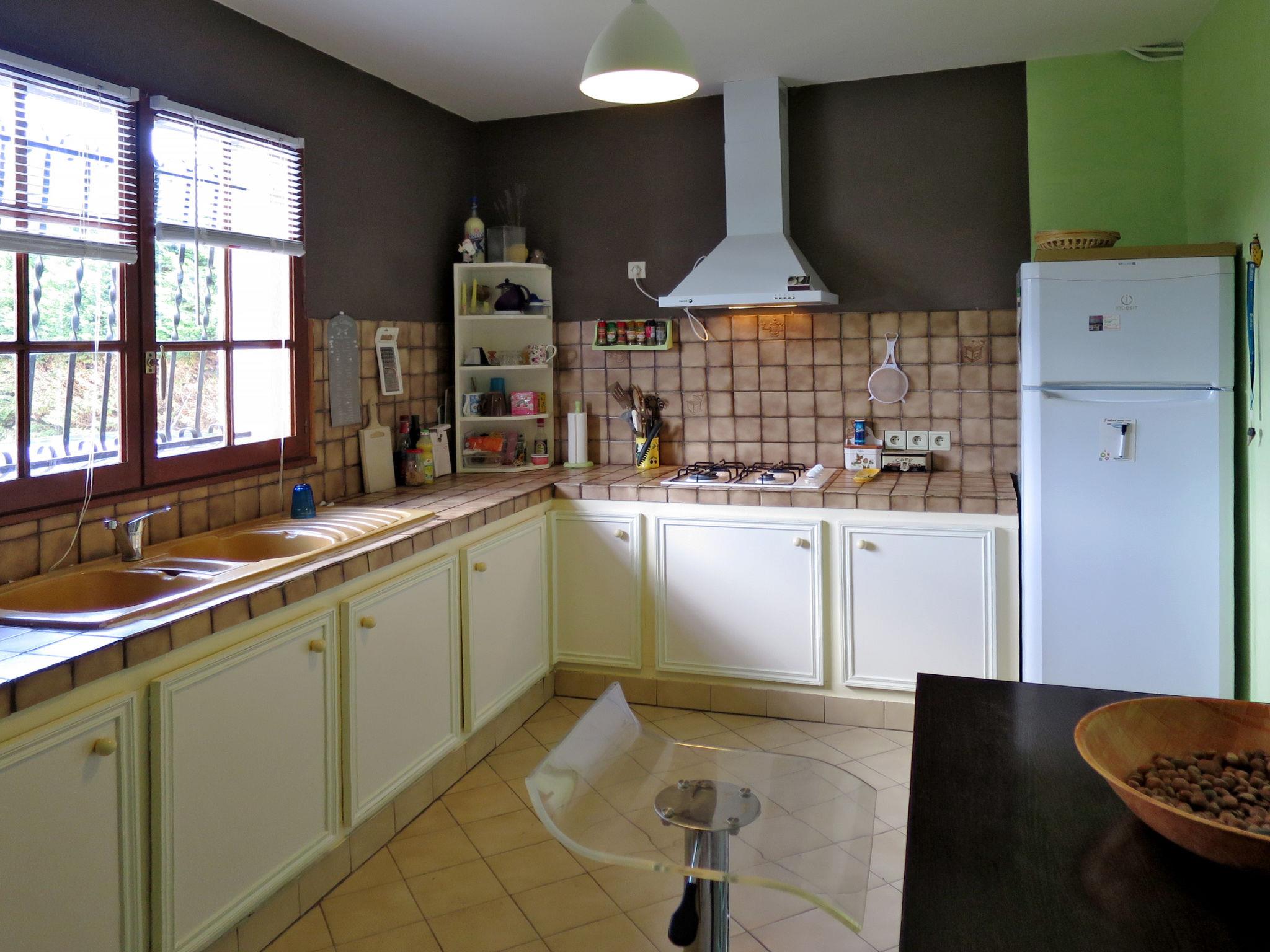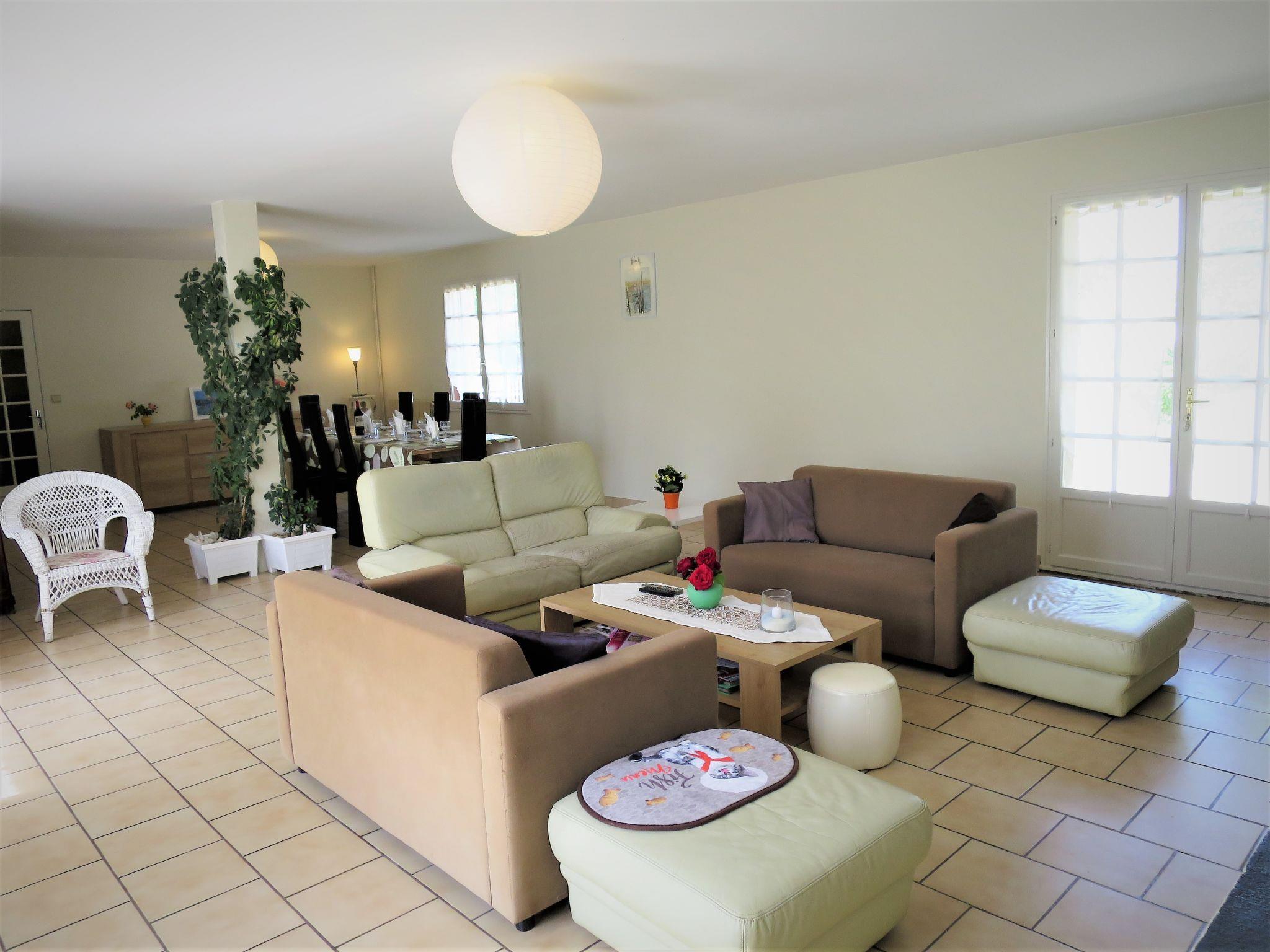 "Orphée", 4-room house 170 m2. Bright, simple and practical furnishings: living/dining room with dining table and satellite TV (flat screen), hi-fi system. Exit to the terrace. Small living/sleeping room with 1 double sofabed (140 cm, length 190 cm). 1 room with 1 french bed (160 cm, length 200 cm), hand-basin and shower. 1 room with 1 bed (80 cm, length 190 cm), 1 sleeping facility (90 cm, length 190 cm), hand-basin and shower. Kitchen (oven, dishwasher, 4 gas rings, toaster, kettle, microwave, freezer, electric coffee machine). Sep. WC. Heating. Parquet floors. Terrace 60 m2. Terrace furniture, barbecue (portable), deck chairs (2), box-room. Facilities: washing machine, iron, children's high chair, baby cot. Internet (WiFi, free). Please note: non-smoking house. Smoke alarm.
