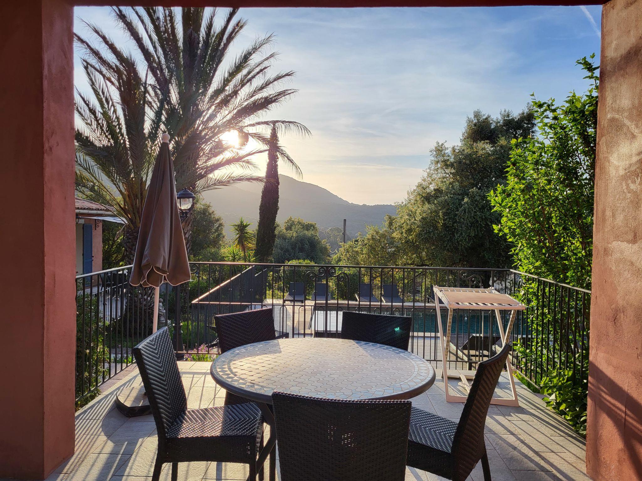 Very beautiful residence "Primavera". 4 houses in the residence. In the resort 300 m from the centre of Galéria, 32 km from the centre of Calvi, 135 km from the centre of Bastia, in a sunny, elevated position on a slope, 750 m from the sea, 750 m from the beach. For shared use: well-kept garden 1'400 m2 (fenced) with plants and trees, swimming pool fenced (8 x 4 m, seasonal availability: 01.Apr. - 31.Oct.). Terrace. In the complex: washing machine (for shared use). Parking on the premises. Shop, restaurant 300 m, bus stop 30 km, ferry "Calvi" 32 km, pebble beach 750 m. Please note: car recommended. Not suitable for children under 4 years. The photograph shows a typical example. No children under 4 years permitted.