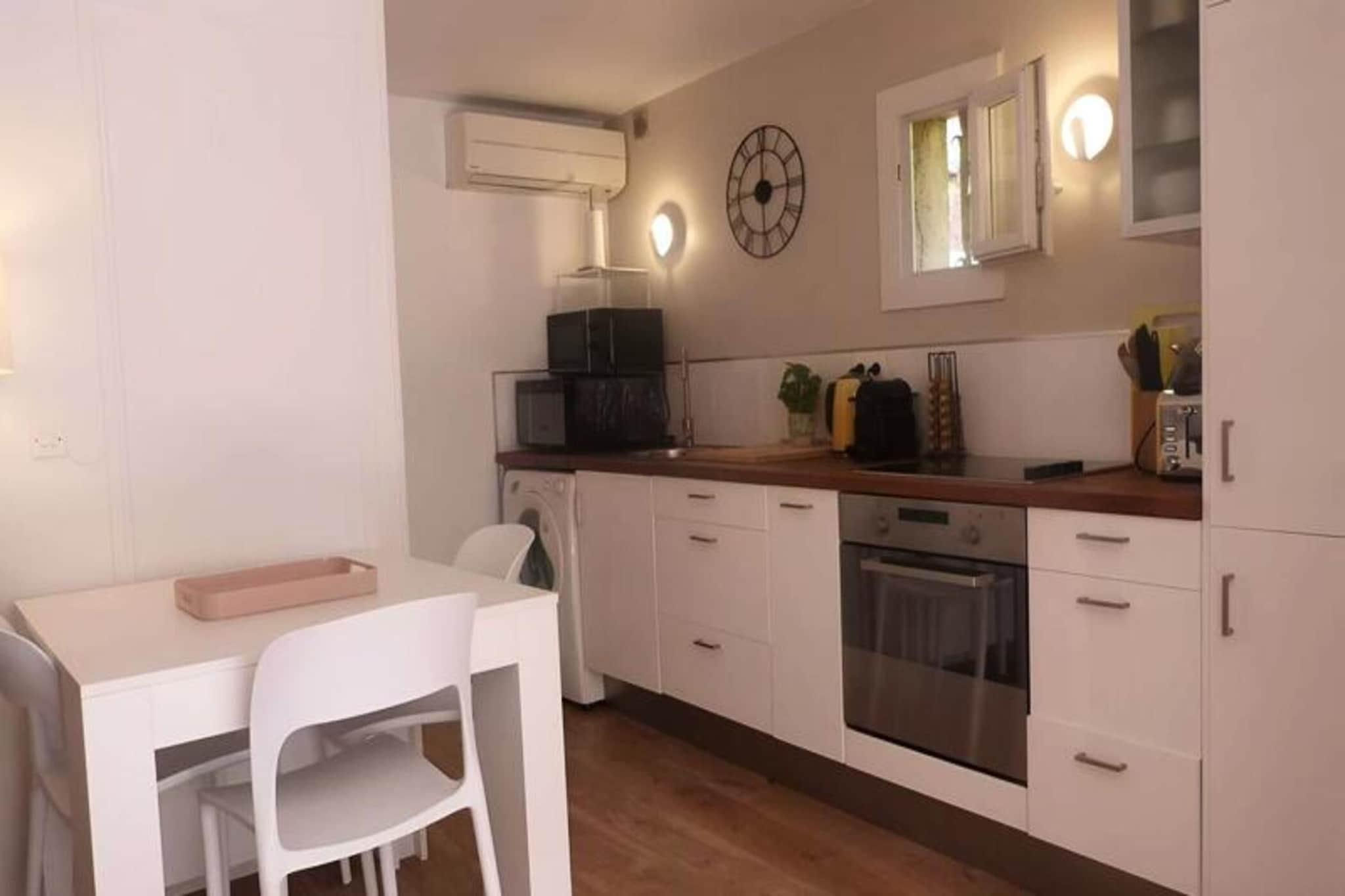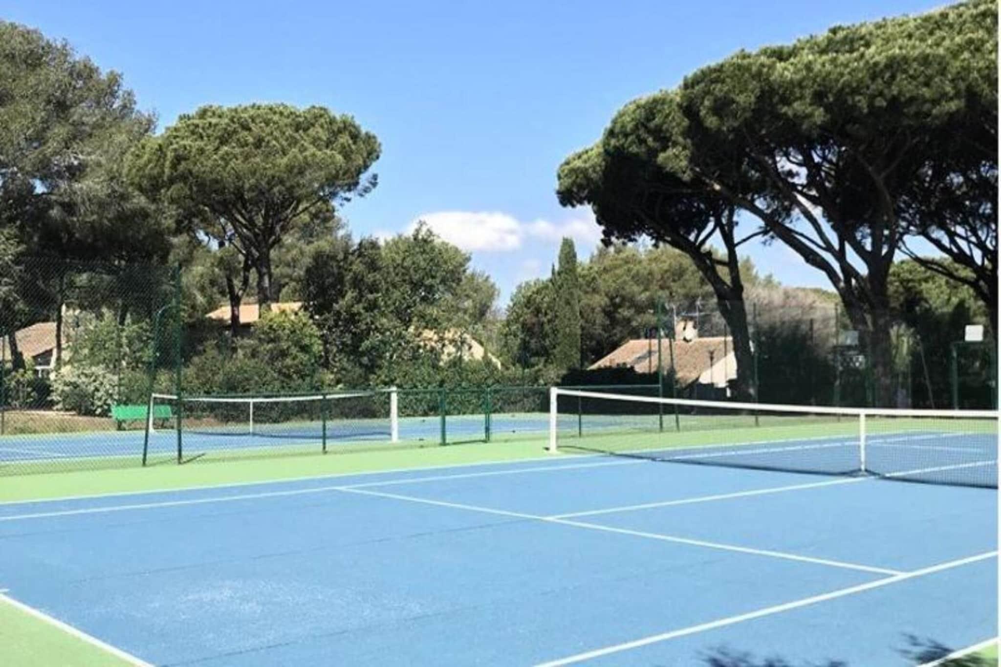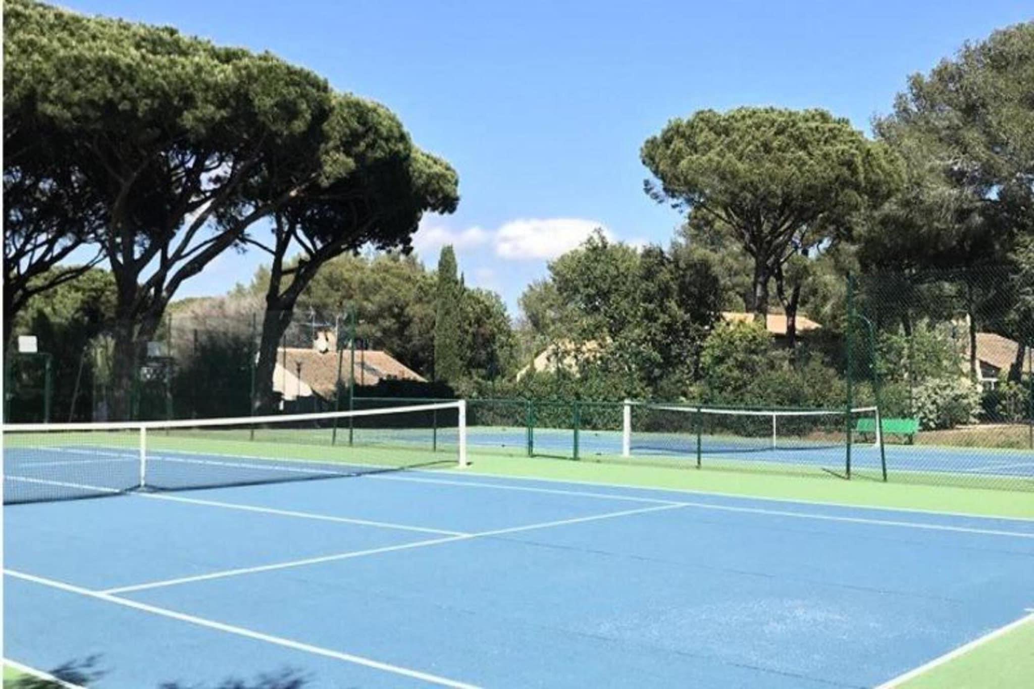 Beliggende i en fredfyldt og sikker ejendom omgivet af en frodig fyrreskov, er dette charmerende to-værelses semi-fritliggende feriehus perfekt til op til fem gæster. Ejendommen har et hyggeligt soveværelse ovenpå med en komfortabel dobbeltseng (160 cm) og rigelig opbevaring, mens stuen nedenunder indeholder en sovesofa til to og en pejsstol til en ekstra soveplads. Et moderne badeværelse med bruser er også placeret i stueetagen. Den solrige terrasse, der er udstyret med en stor parasol og udendørsmøbler, giver de ideelle rammer for udendørs spisning og afslapning. Beliggende kun 8 km fra Saint-Tropez og 11 km fra Sainte-Maxime, er denne ejendom perfekt placeret til at udforske den pulserende Saint-Tropez-bugt. I nærheden finder du butikker kun 1,5 km væk og smukke sandstrande kun 3 km fra ejendommen. Gæsterne kan også nyde faciliteter på stedet, herunder swimmingpools og en tennisbane, hvilket gør dette til et fremragende valg til både afslapning og rekreation. Ejendommen er designet til din komfort og byder på aircondition, WiFi og et fuldt udstyret køkken med moderne apparater såsom køleskab med fryser, induktionskomfur, ovn, mikroovn og Nespresso kaffemaskine. Der er også vaskemaskine, fladskærms-tv og privat parkeringsplads. Yderligere tjenester, herunder leje af sengetøj og slutrengøring, sikrer en problemfri og mindeværdig ferieoplevelse.