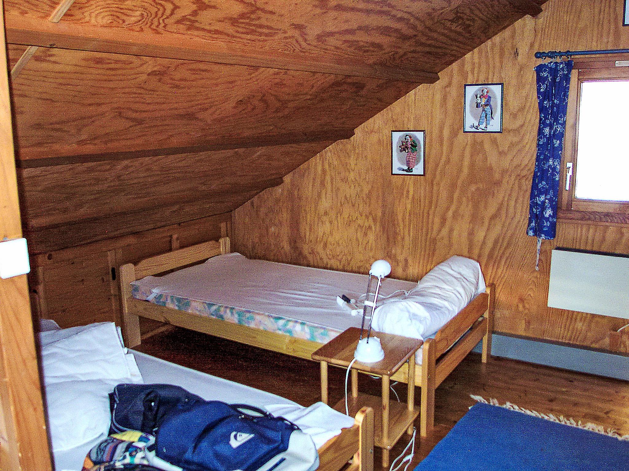 2-room chalet 51 m2, on the upper ground floor. Living/dining room 20 m2 with 1 double sofabed, digital TV, video and hi-fi system. Exit to the terrace. 1 room with 1 french bed. Kitchenette (4 hot plates, oven, dishwasher, microwave, freezer, electric coffee machine). Bath/WC. Electric heating. Upper floor: (steep stair) gallery with sloping ceilings, ceiling height 100 - 200 cm with 2 beds. Terrace 20 m2. Terrace furniture. Facilities: washing machine. Internet (WiFi, free). Please note: (extra). Maximum 1 pet/ dog allowed. Smoke alarm. Instead of an enclosed bedroom, some sleeping areas are located in an open-plan area (gallery, alcove, etc.).