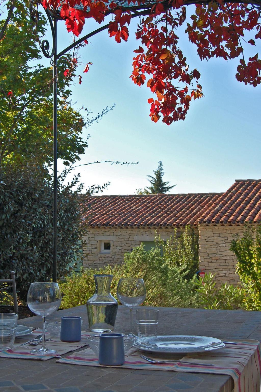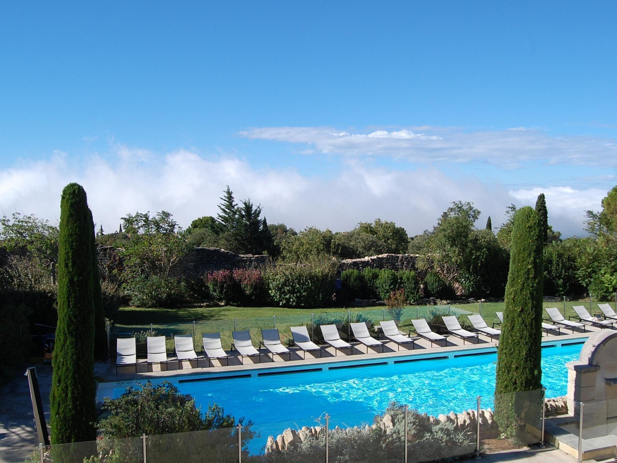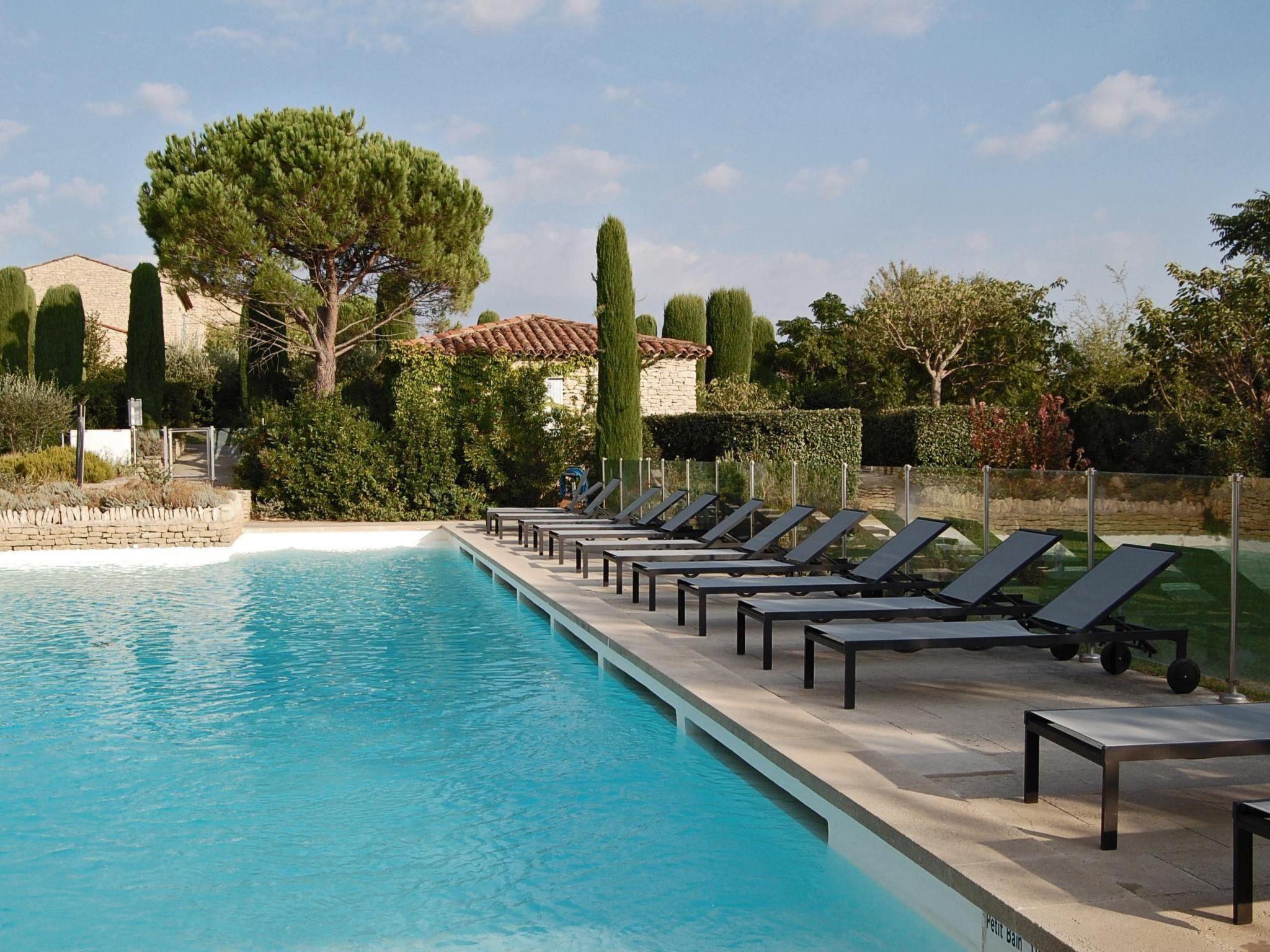 Your holiday flat is located not far from the pool, in the middle of a well-kept, three-hectare residence park with typical Provençal vegetation. From the living room you have direct access to your private shaded terrace. The large, secured outdoor pool invites you to refresh yourself on hot days, you can sunbathe on the loungers on the sun terrace and the view of the mountains completes the picture. Young and old can also enjoy a game of table tennis. A free car park is available. There is also a small stone house on the property with a washing machine and tumble dryer. The centre of Gordes is just an eight-minute walk away, which has the advantage that you don't need the car for every shopping trip, restaurant visit or evening stroll. Let yourself be greeted by the scent of thyme, rosemary and lavender or the chirping of cicadas.