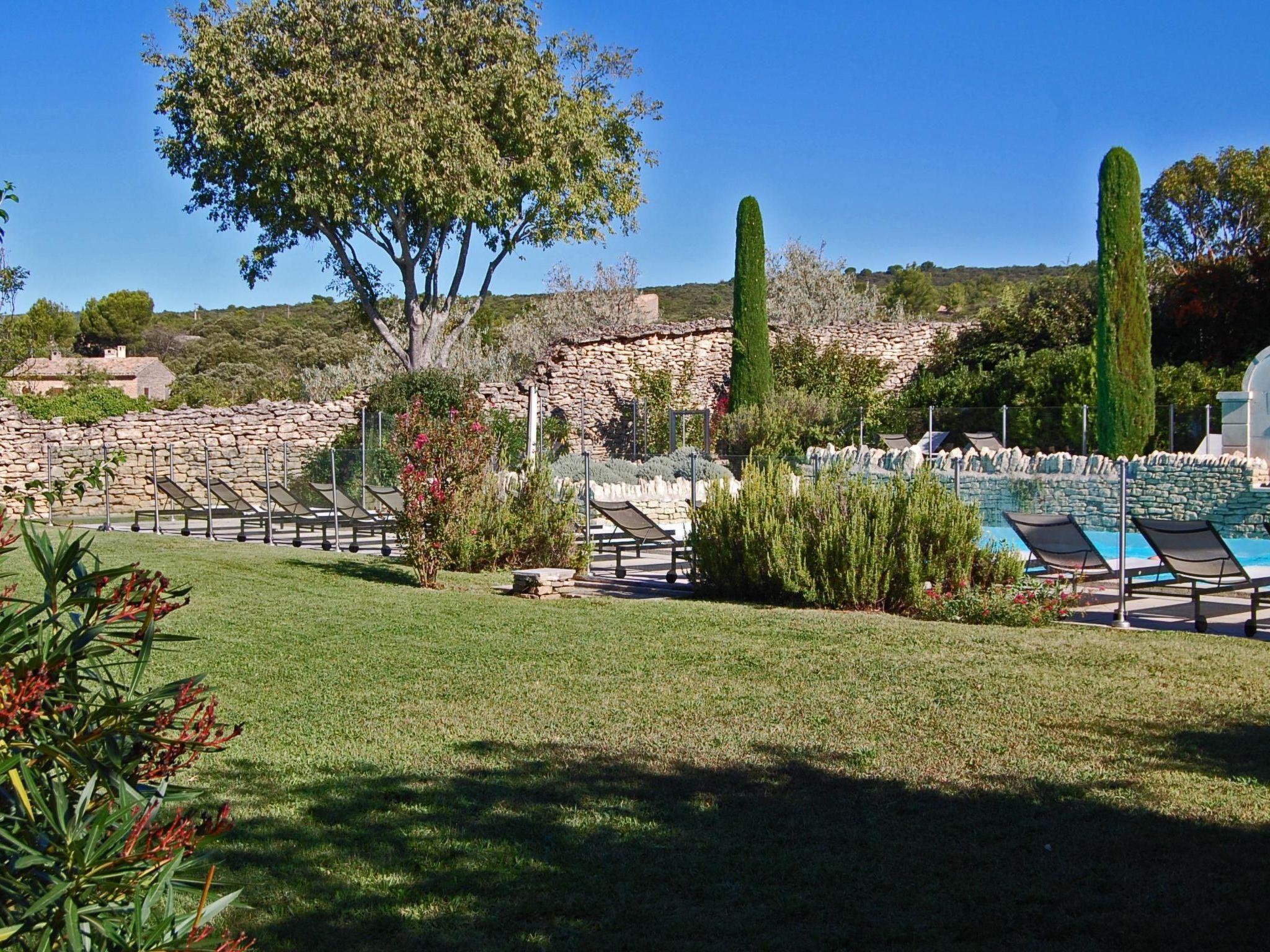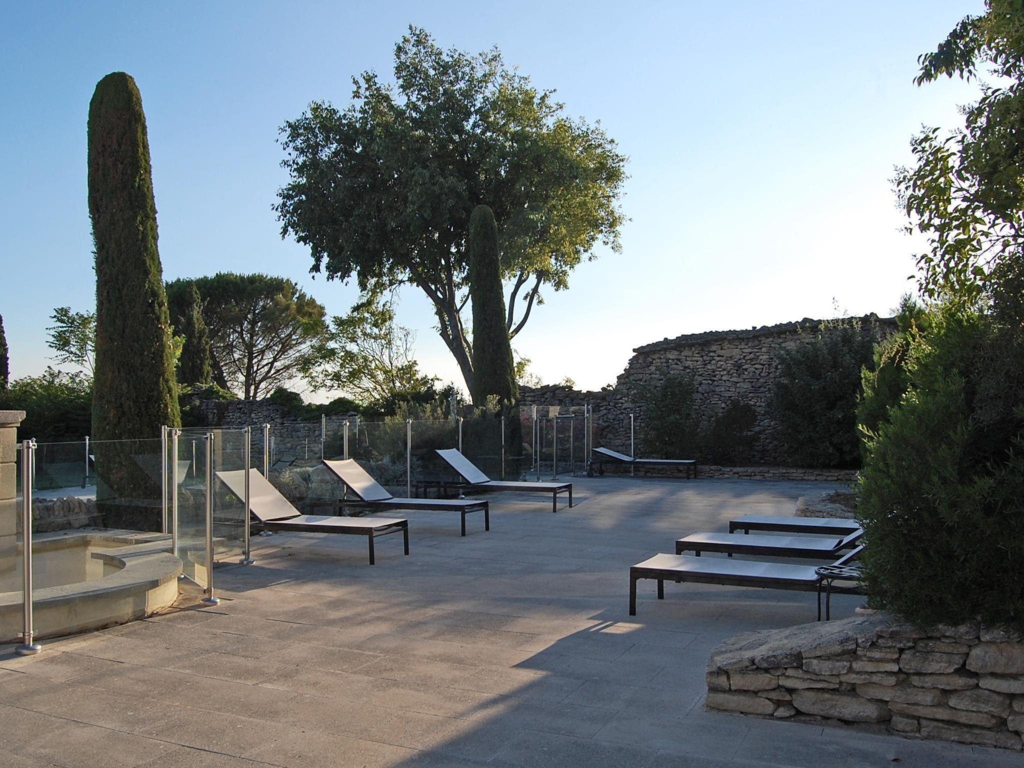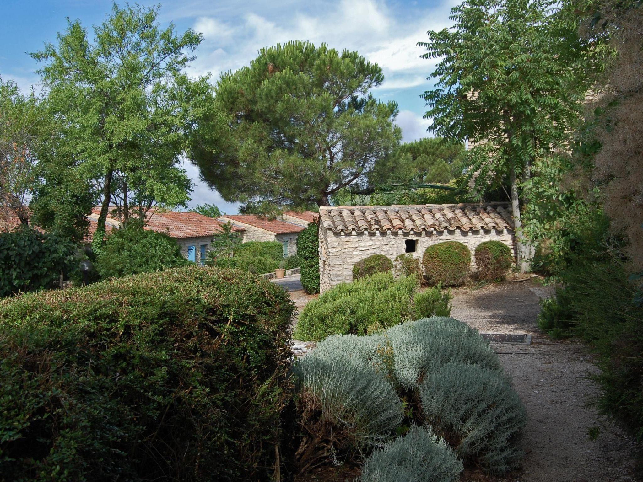 Your holiday flat is located not far from the pool, in the middle of a well-kept, three-hectare residence park with typical Provençal vegetation. From the living room you have direct access to your private shaded terrace. The large, secured outdoor pool invites you to refresh yourself on hot days, you can sunbathe on the loungers on the sun terrace and the view of the mountains completes the picture. Young and old can also enjoy a game of table tennis. A free car park is available. There is also a small stone house on the property with a washing machine and tumble dryer. The centre of Gordes is just an eight-minute walk away, which has the advantage that you don't need the car for every shopping trip, restaurant visit or evening stroll. Let yourself be greeted by the scent of thyme, rosemary and lavender or the chirping of cicadas.