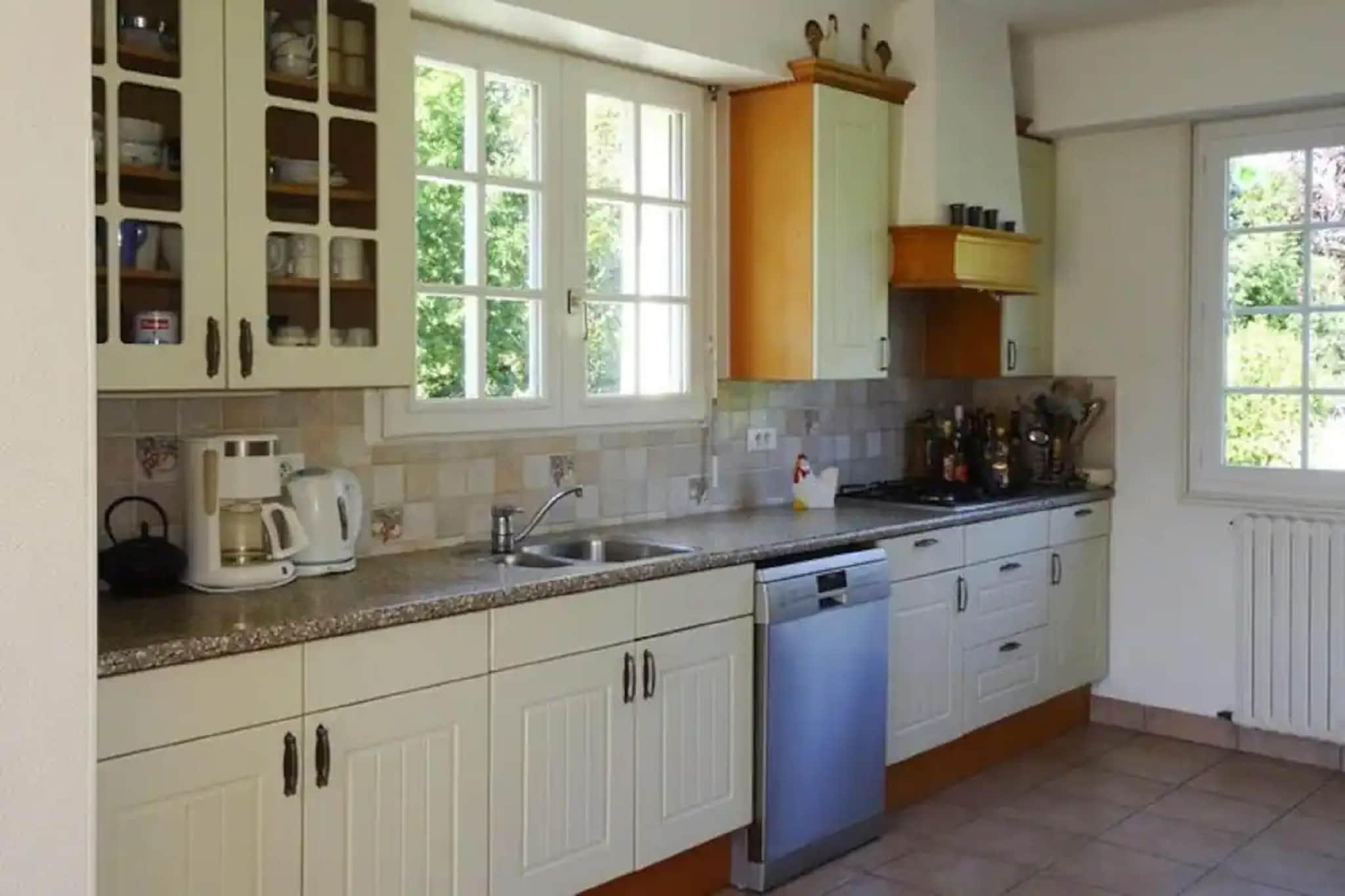 Sommerhus med swimmingpool i en dejlig rolig beliggenhed tæt på en populær badeby. Den 2.500 m² store havegrund ligger lige uden for det lille samfund i et lille boligområde. Du kan slappe af på de mange liggestole omkring den rummelige pool. På få minutter på cykel eller i bil kan du nå den første sandstrand på den maleriske promenade i det livlige feriested Bénodet, samt hyggelige caféer, restauranter og forskellige butikker. Badebyen imponerer med sin idylliske beliggenhed ved mundingen af Odets, som af bretonerne anses for at være den smukkeste flod i Frankrig. Du har valget mellem flere fantastiske sandstrande, sporty med bølger mod Atlanterhavet eller med lavvandede surf langs Corniche, den smukke strandpromenade. Talrige palmer her, såsom i din have, vidner om det milde klima i Söd-Finistères.