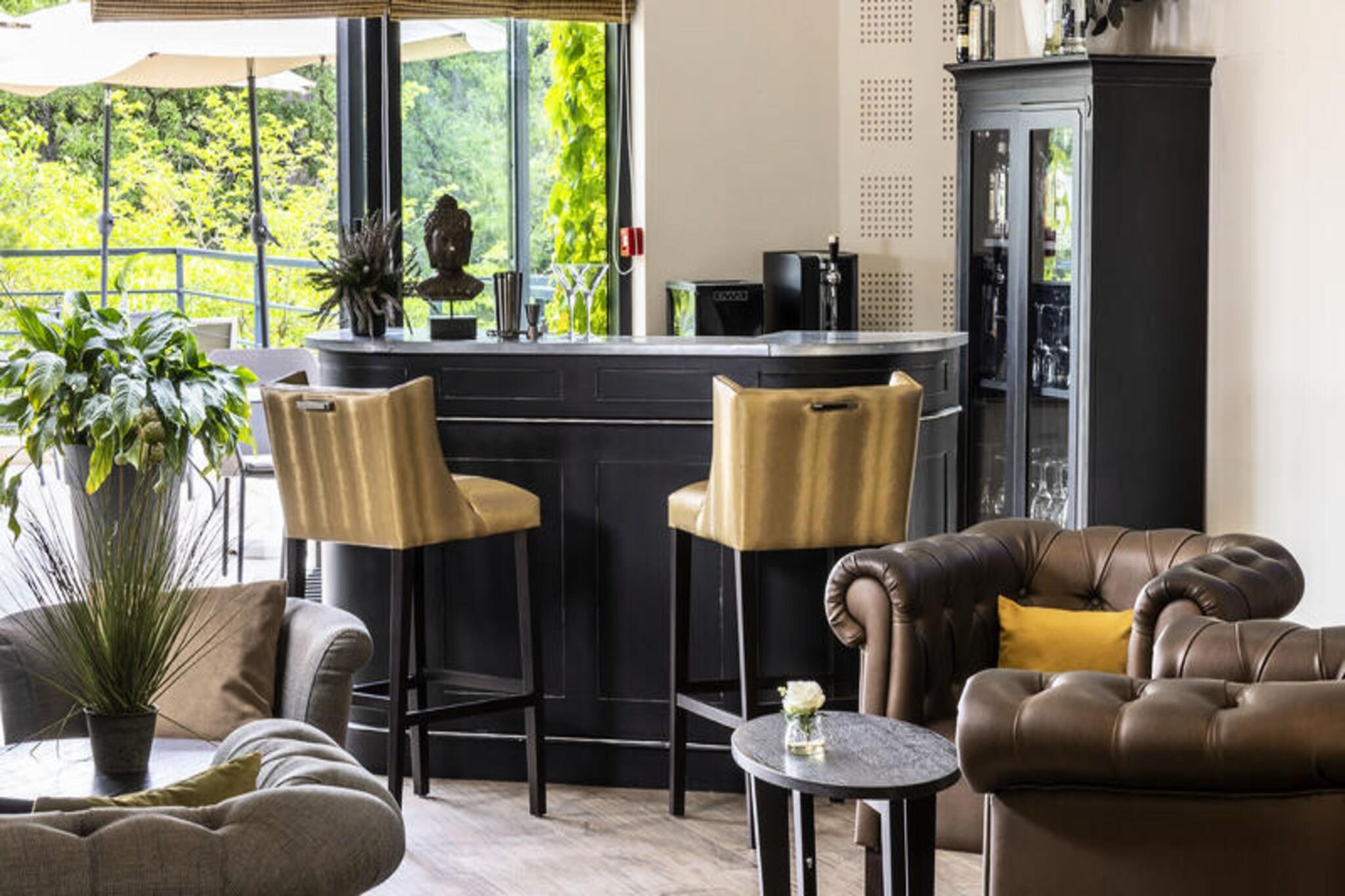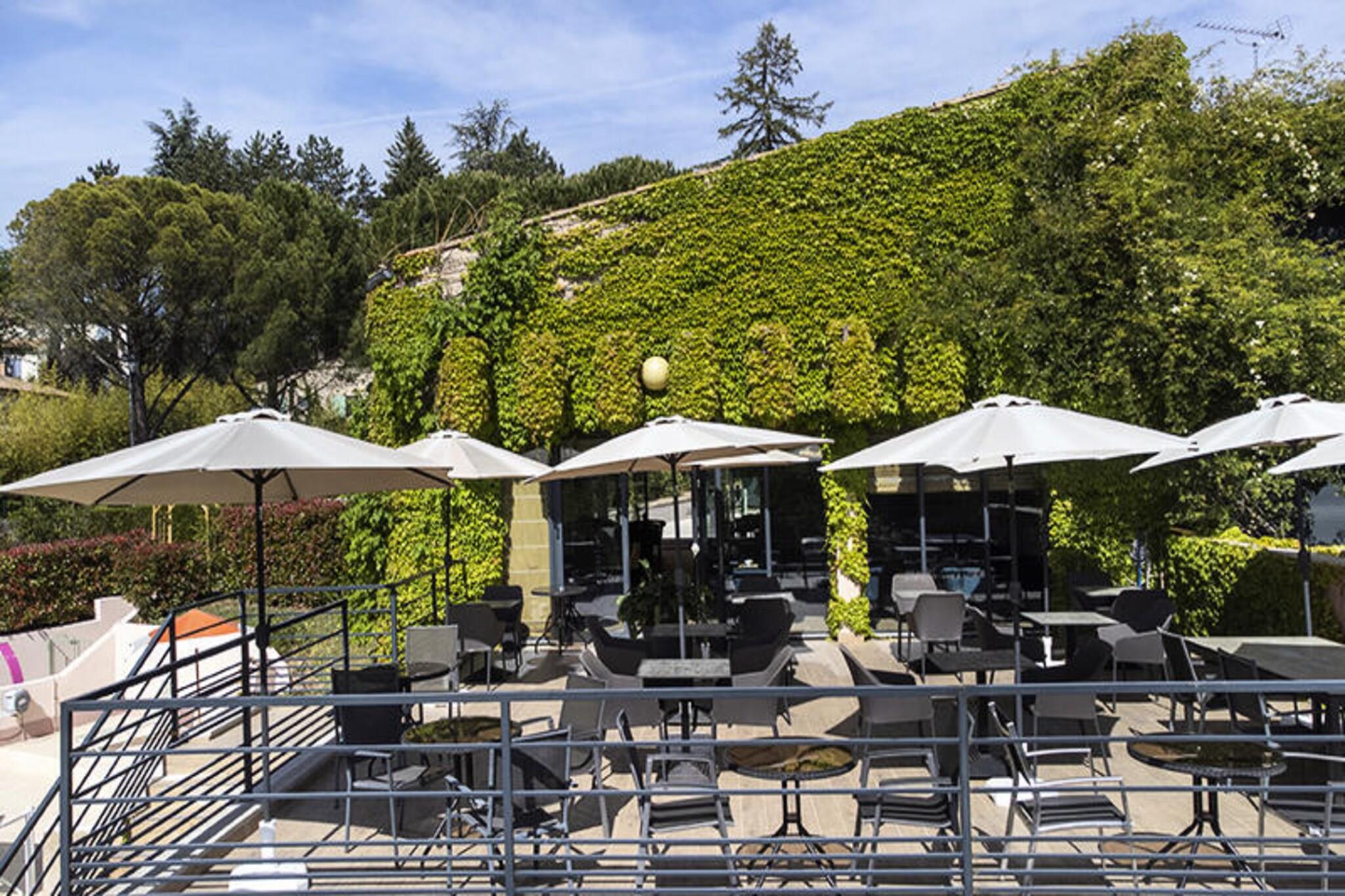 Beliggende i det naturskønne Alpes-de-Haute-Provence tilbyder denne charmerende ferieresidens et behageligt og afslappende tilflugtssted, ideelt for par, familier eller spa-entusiaster. Hver bolig har et valg mellem en dobbeltseng eller to enkeltsenge, aircondition og en privat balkon eller terrasse. Gæster, der rejser med kæledyr, er velkomne, mod tillægsgebyrer. Essentials som sengetøj, håndklæder og Wi-Fi-adgang er inkluderet, hvilket sikrer et stressfrit ophold. En opvarmet udendørs pool, åben fra maj til oktober, og wellness-faciliteter såsom sauna og hammam forbedrer oplevelsen. Ejendommen ligger kun 400 meter fra de berømte termiske bade i Gréoux-les-Bains og en kort gåtur fra det pulserende landsbycentrum og har en misundelsesværdig beliggenhed. Gå en tur gennem maleriske middelaldergader, opdag charmerende caféer og shop på lokale markeder, der tilbyder regionale delikatesser. Områdets rige historie og maleriske arkitektur gør det til en ideel destination for dem, der søger afslapning og kulturel fordybelse. Hver enhed er designet med bekvemmelighed i tankerne og har et moderne tekøkken udstyret med essentielle apparater, perfekt til at tilberede dine måltider. Nyligt renoverede badeværelser har enten bruser eller badekar samt toilet. Privat parkering og babyudstyr, såsom vugger og høje stole, er tilgængelige efter anmodning. Gæsterne kan også nyde morgenmaden på den solbeskinnede terrasse, hvilket tilføjer et strejf af ro til deres morgener.