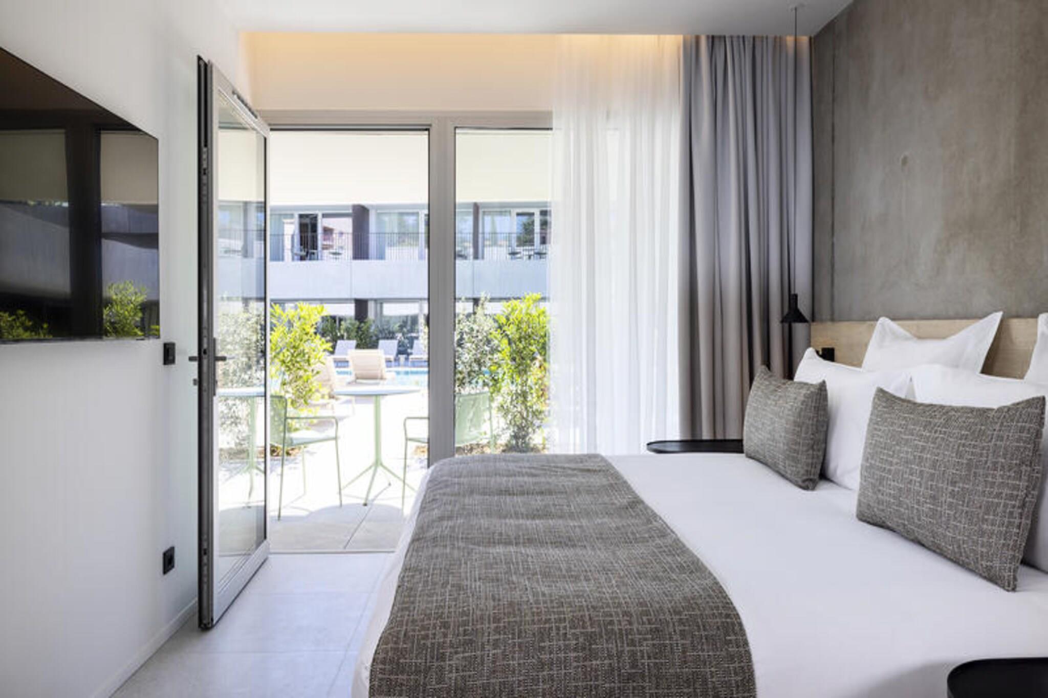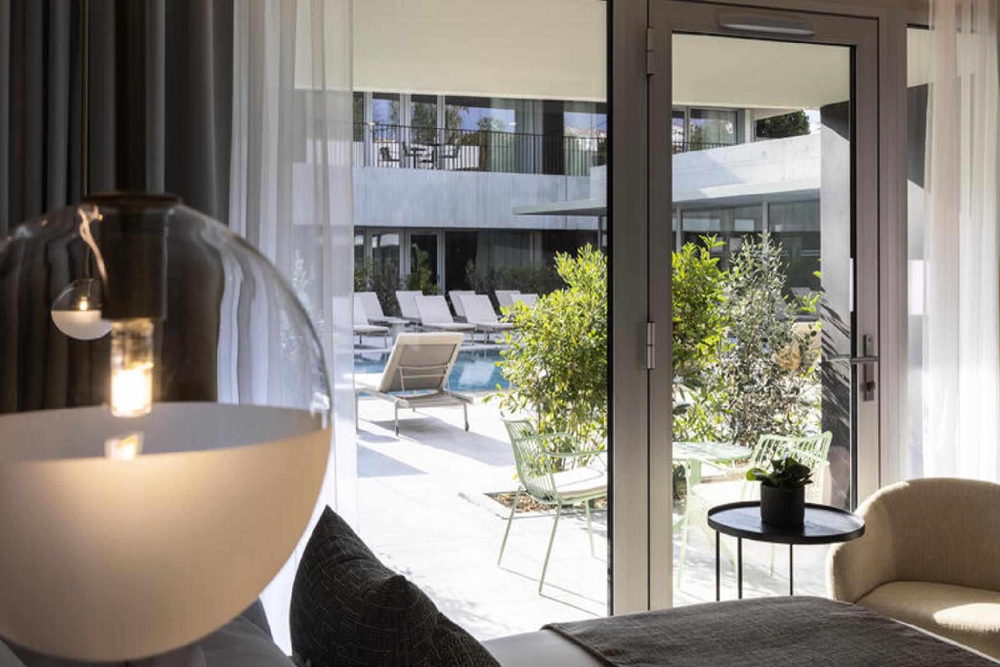 Denne sofistikerede ejendom tilbyder et fredeligt tilflugtssted i hjertet af Gréoux-les-Bains med moderne og stilfulde lejligheder. Hver enhed er designet til komfort og byder på en dobbeltseng og en sovesofa til én person, perfekt til et afslappende ophold. Lejlighederne er kæledyrsvenlige (små kæledyr tilladt mod et ekstra gebyr) og tilbyder højhastigheds-Wi-Fi-adgang. Der er barnesenge til børn under 6 år, og der er sikker overdækket parkering. Morgenbuffeten serveres dagligt fra 7:00 til 10:00. Ejendommen ligger mellem Luberon Regional Park og Verdon Gorges og tilbyder en række udendørs aktiviteter såsom vandreture, vandsport og golf. Gréoux-les-Bains er en charmerende by med lokale caféer, butikker og markeder, perfekt til afslappede gåture. Ejendommens team hjælper gerne gæsterne med at udforske regionens skatte, fra kulturelle vartegn til skjulte perler. Lejligheden har et fuldt udstyret tekøkken, ideel til at tilberede dine måltider, og et rummeligt brusebad med separat toilet. Til afslapning kan gæsterne nyde spaen, fitnesscentret eller den smukke spejlpool på stedet. Uanset om du ønsker at udforske omgivelserne eller slappe af, tilbyder denne ejendom alt hvad du behøver for et mindeværdigt ophold.