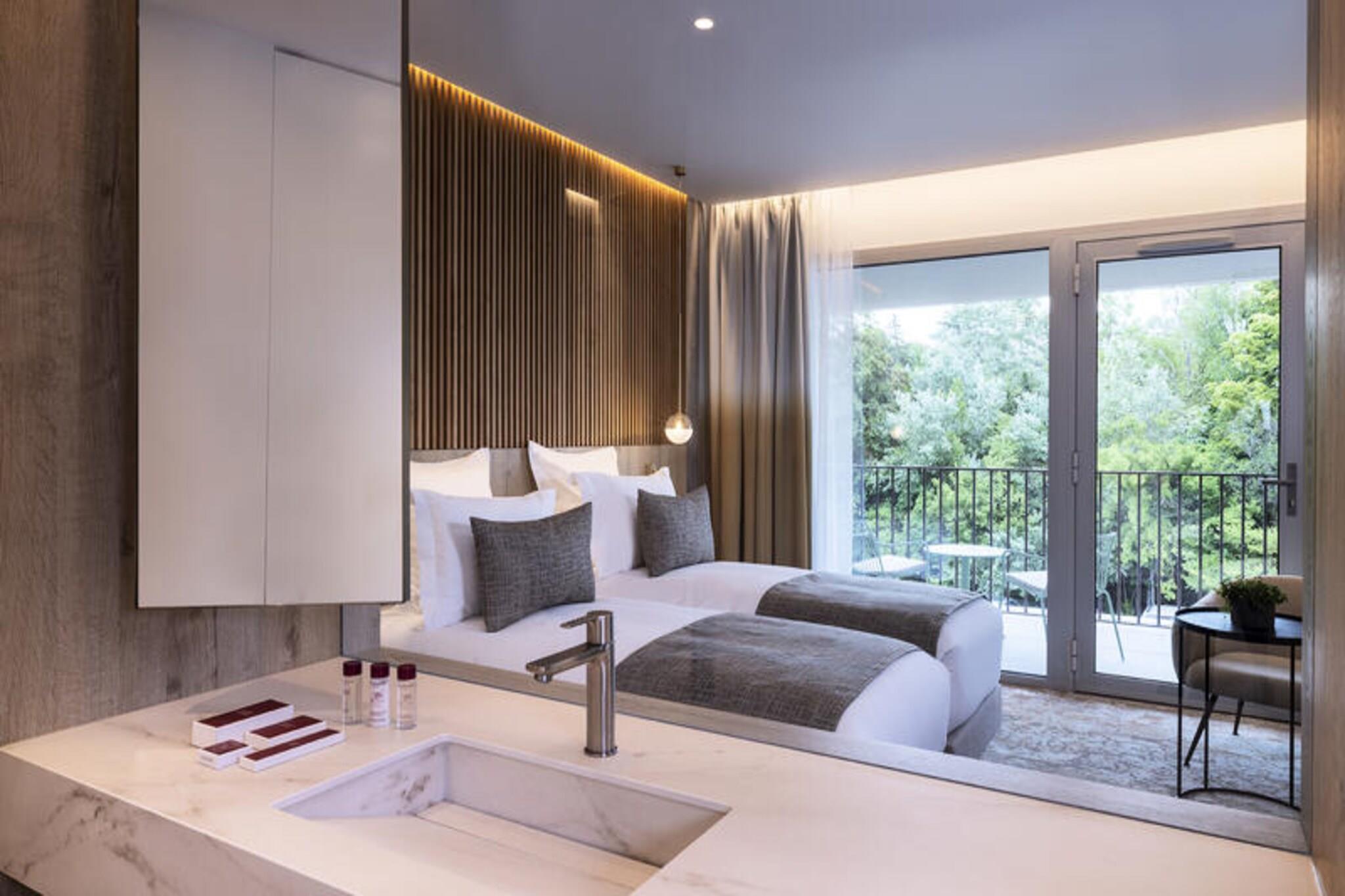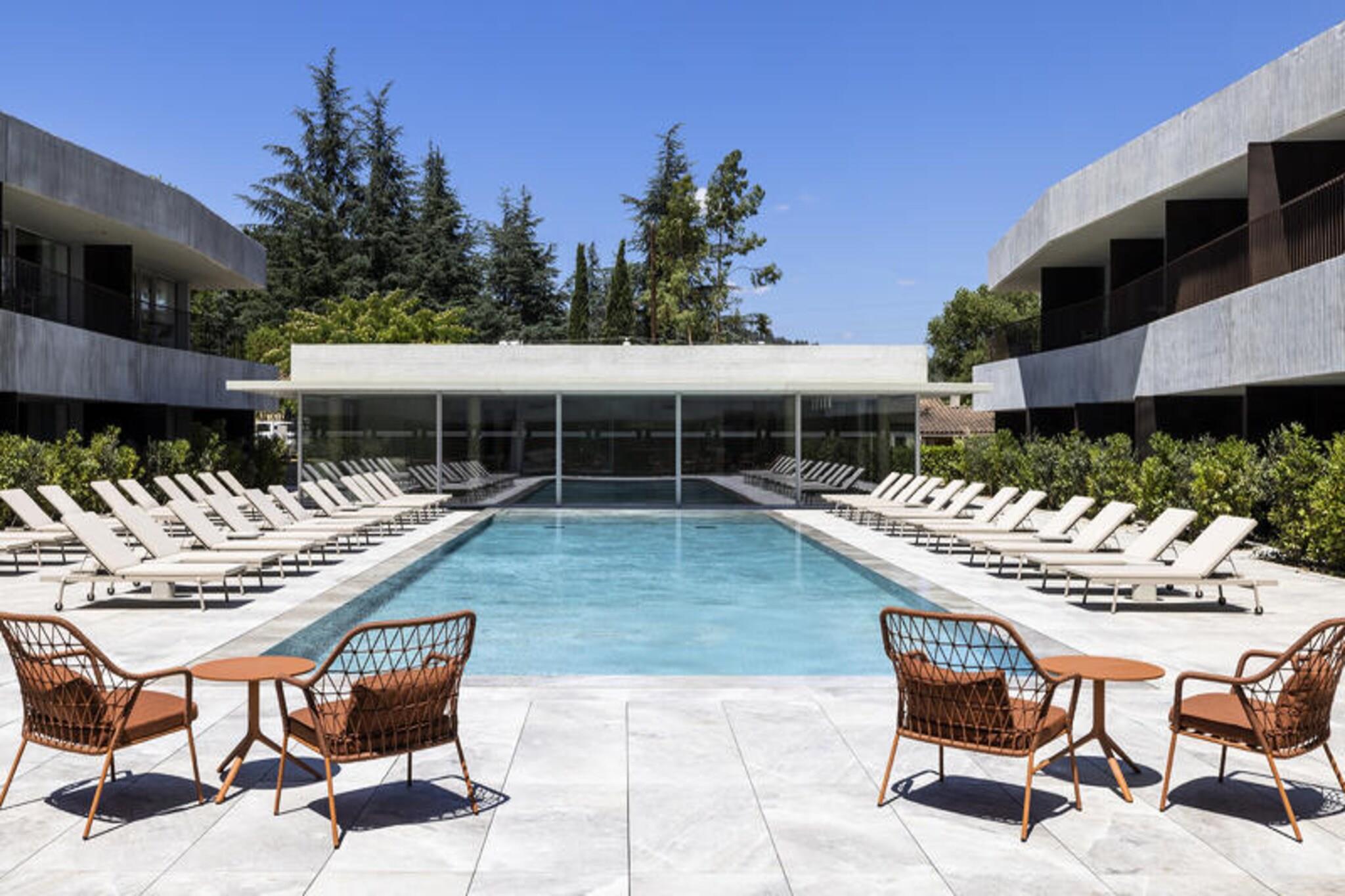 Denne elegante ejendom tilbyder et fredfyldt og sofistikeret tilflugtssted med to soveværelser med dobbeltsenge og en sovesofa i opholdsområdet. Hver lejlighed har moderne bekvemmeligheder, herunder højhastigheds-Wi-Fi-adgang, og er kæledyrsvenlige, med små kæledyr tilladt mod et ekstra gebyr. Familier vil sætte pris på tilgængeligheden af ??barnesenge til børn under 6 år. Ejendommen tilbyder sikker, overdækket parkering til gæsterne, og der serveres morgenbuffet dagligt fra kl. 07.00 til kl. 10.00. Beliggende i hjertet af Gréoux-les-Bains, er denne ejendom perfekt beliggende for at udforske de fantastiske naturlige omgivelser i Luberon Regional Park og Verdon Gorges. Gæsterne kan nyde nærliggende vandrestier, vandaktiviteter og golfbaner. Selve byen kan prale af charmerende caféer, lokale markeder og butikker, der giver en dejlig blanding af afslapning og kultur. Ejendommens team står til rådighed for at guide dig gennem de bedste oplevelser i området. Lejligheden er udstyret med et velindrettet tekøkken, perfekt til at tilberede måltider, når det passer dig. Det rummelige badeværelse har separat bruser og toilet. Nyd den friske luft fra din private balkon, eller slap af ved poolen på stedet. Med et moderne design giver denne lejlighed både komfort og uafhængighed under dit ophold.