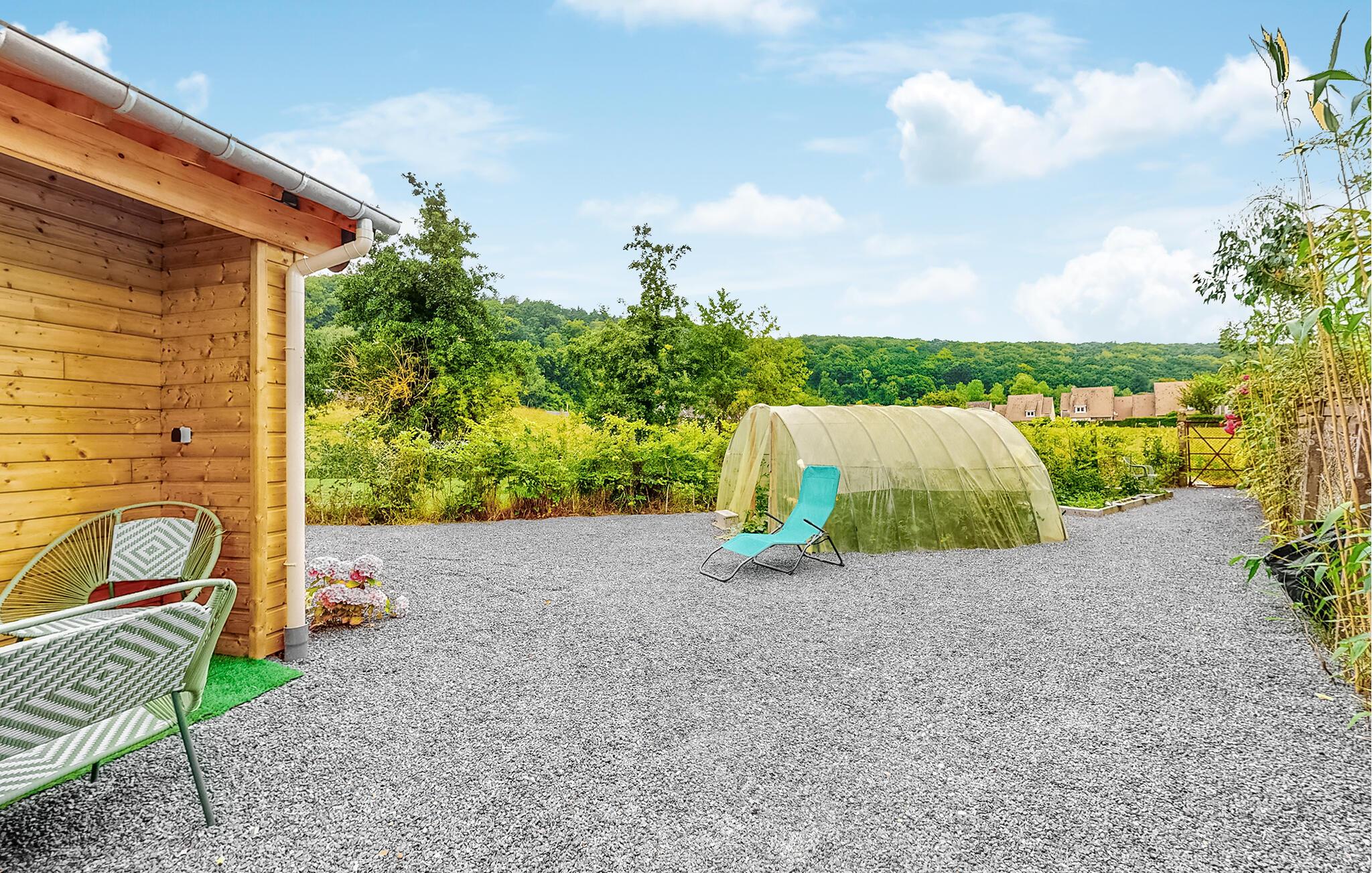 Oplev Normandiets rolige skønhed i dette charmerende feriehus i Grainville-la-Teinturière. Rejs til Normandiet og tilbring en afslappende ferie i dette smukke hus. De rummelige og komfortable værelser tilbyder jer masser af plads til at slappe af, mens de moderne badeværelser sikrer privatliv og komfort. Den rustikt indrettede stue lægger op til hyggelige aftener, og i det fuldt udstyrede køkken kan I tilberede lækre måltider med friske, lokale råvarer. Den smukke have og terrasse er perfekte til at slappe af udendørs og dele måltider udendørs. Kom og slap af her og se børnene lege på græsplænen. Beliggende kun en kort køretur fra den maleriske kyst, er Grainville-la-Teinturière en optimal base for at udforske. Besøg de berømte landingsstrande i Normandiet, det imponerende Mont Saint-Michel eller den historiske by Bayeux med dets berømte gobelin. Regionen lægger op til lange gå- og cykelture gennem det idylliske landskab. For gourmeter er der regionale specialiteter som camembert og cider at opdage, hvilket vil gøre jeres ophold til en fornøjelig oplevelse.