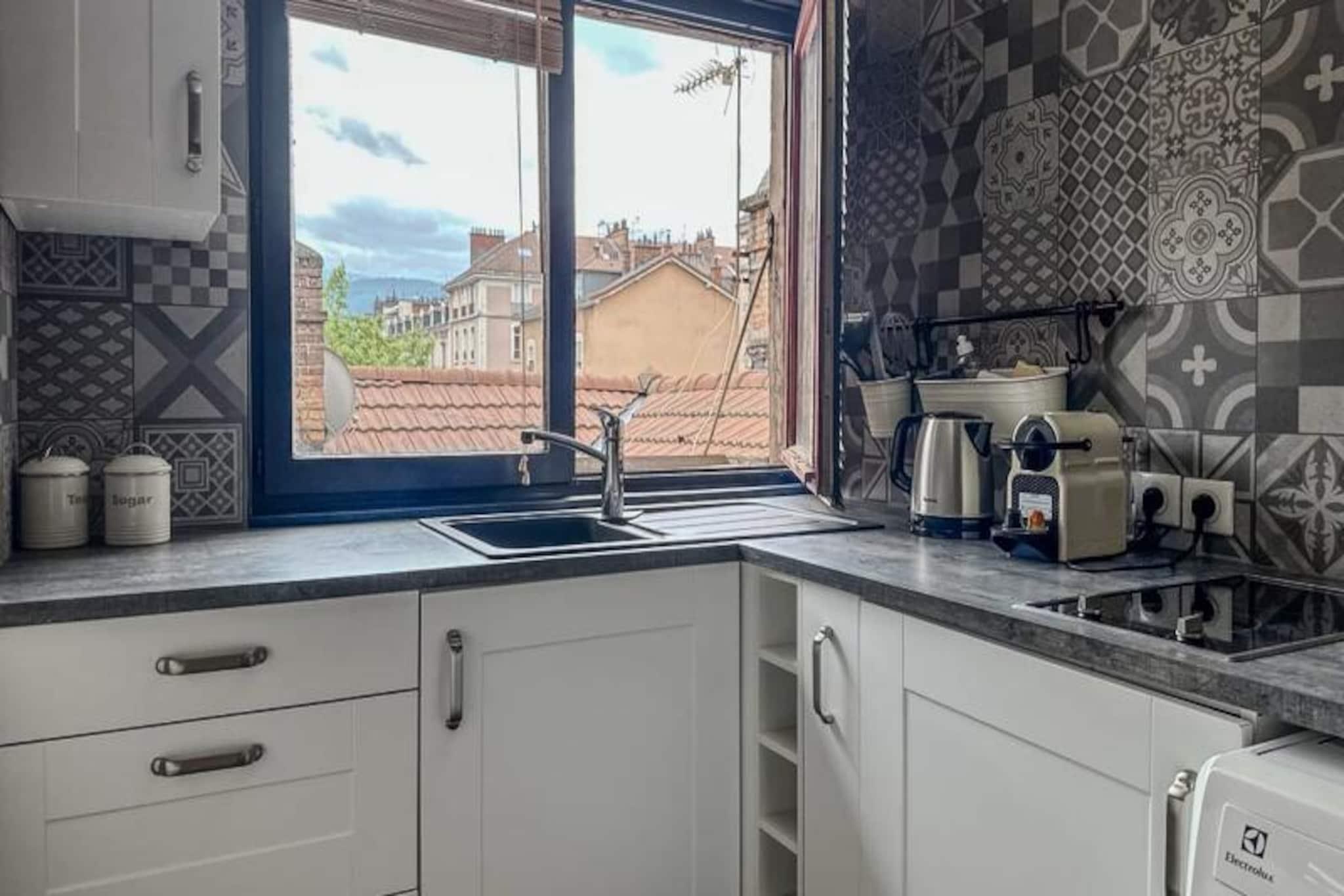 I hjertet af Grenobles historiske distrikt tilbyder denne charmerende lejlighed på 46 m² et dejligt urbant tilflugtssted for to. Beliggende på tredje sal blander ejendommen moderne bekvemmeligheder med den tidløse charme i byens pulserende centrum. Uanset om du besøger Grenoble i forbindelse med forretning eller fritid, er dette hyggelige sted den perfekte base for at udforske Grenobles kulturelle og arkitektoniske perler. Lejligheden har en åben planløsning, der maksimerer komfort og funktionalitet. Opholdsstuen indbyder til afslapning med en komfortabel sofa, sofabord og et fladskærms-tv, mens højhastighedsinternet sikrer, at du forbliver forbundet. Det tilstødende soveværelse, der er åbent til stuen, er møbleret med en blød dobbeltseng, blødt sengetøj og rigelig opbevaringsplads. Det fuldt udstyrede køkken er et paradis for hjemmekokke, komplet med kogeplade, mikrobølgeovn, køleskab/fryser, Nespresso-kaffemaskine og alt nødvendigt redskab. En spiseplads med bord og stole gør måltiderne til en fornøjelse. Badeværelset har et moderne brusebad, håndvask og toilet, med håndklæder og en velkomstpakke til din bekvemmelighed. Træd udenfor, og du vil opleve, at du er midt i Grenobles livlige gader. Lejligheden ligger kun 2 minutters gang fra Verdun Préfecture Tram A, der nemt forbinder dig til Fontaine, Echirolles og andre vigtige destinationer. Udforsk nærliggende attraktioner såsom Bastillen, museer og charmerende caféer, der ligger langs de brostensbelagte gader. Rejsende med kæledyr er velkomne mod et mindre tillægsgebyr. Med sin førsteklasses beliggenhed, gennemtænkte faciliteter og nemme adgang via en nøgleboks er denne lejlighed et ideelt valg til et problemfrit og mindeværdigt ophold i Grenoble. Uanset om du er her for at nyde historien, den lokale gastronomi eller blot slappe af, sikrer denne ejendom en behagelig og berigende oplevelse.