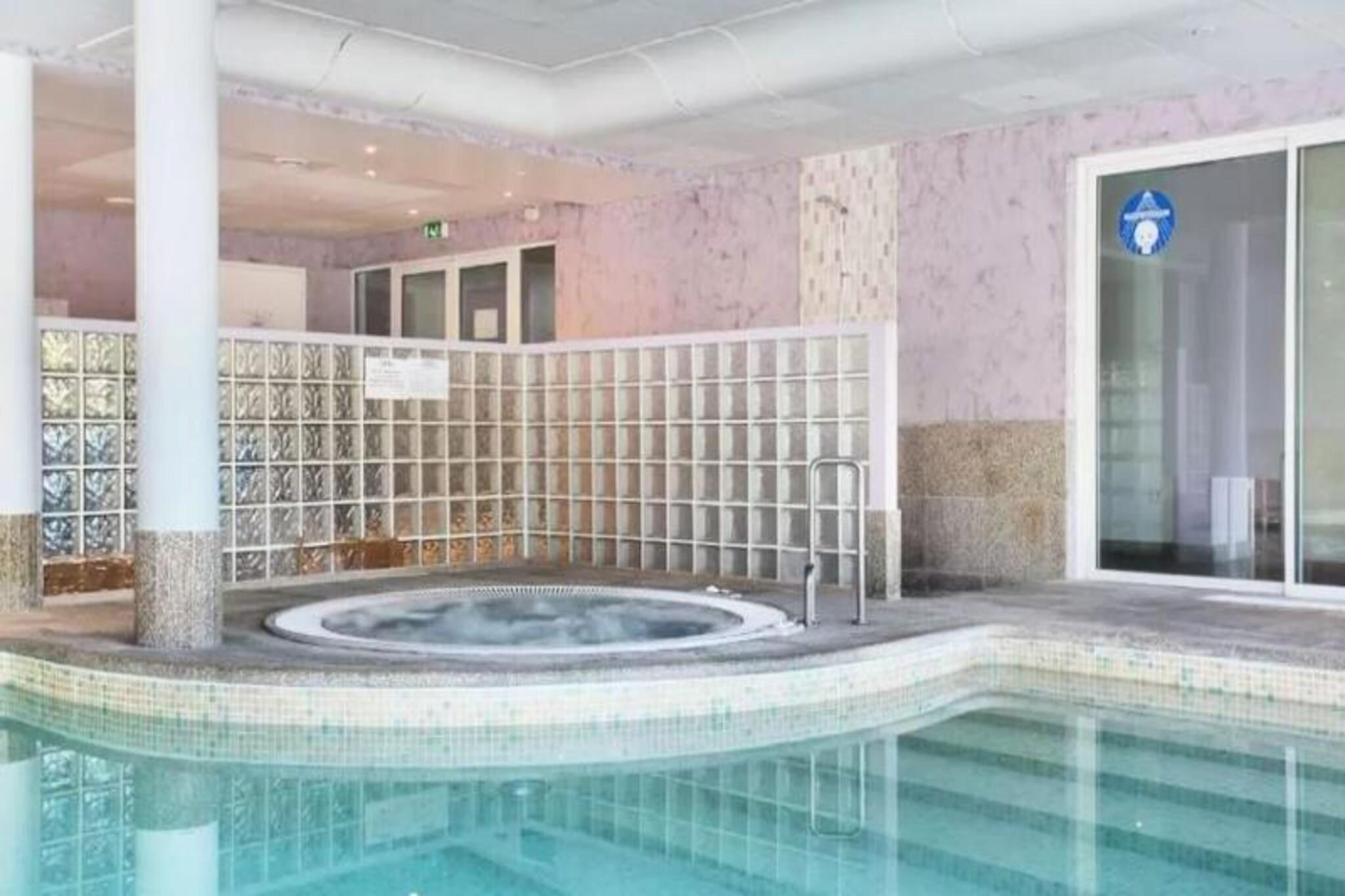, Stue(dobbeltsovesofa, Fjernsyn, spisebord), Køkken(elkedel, brødrister, ovn), soveværelse(dobbeltseng), badeværelse(bruser, håndvask), fitnessrum, Parkering, Restaurant, sauna, swimmingpool, bordtennisbord, Håndklæder inkl.