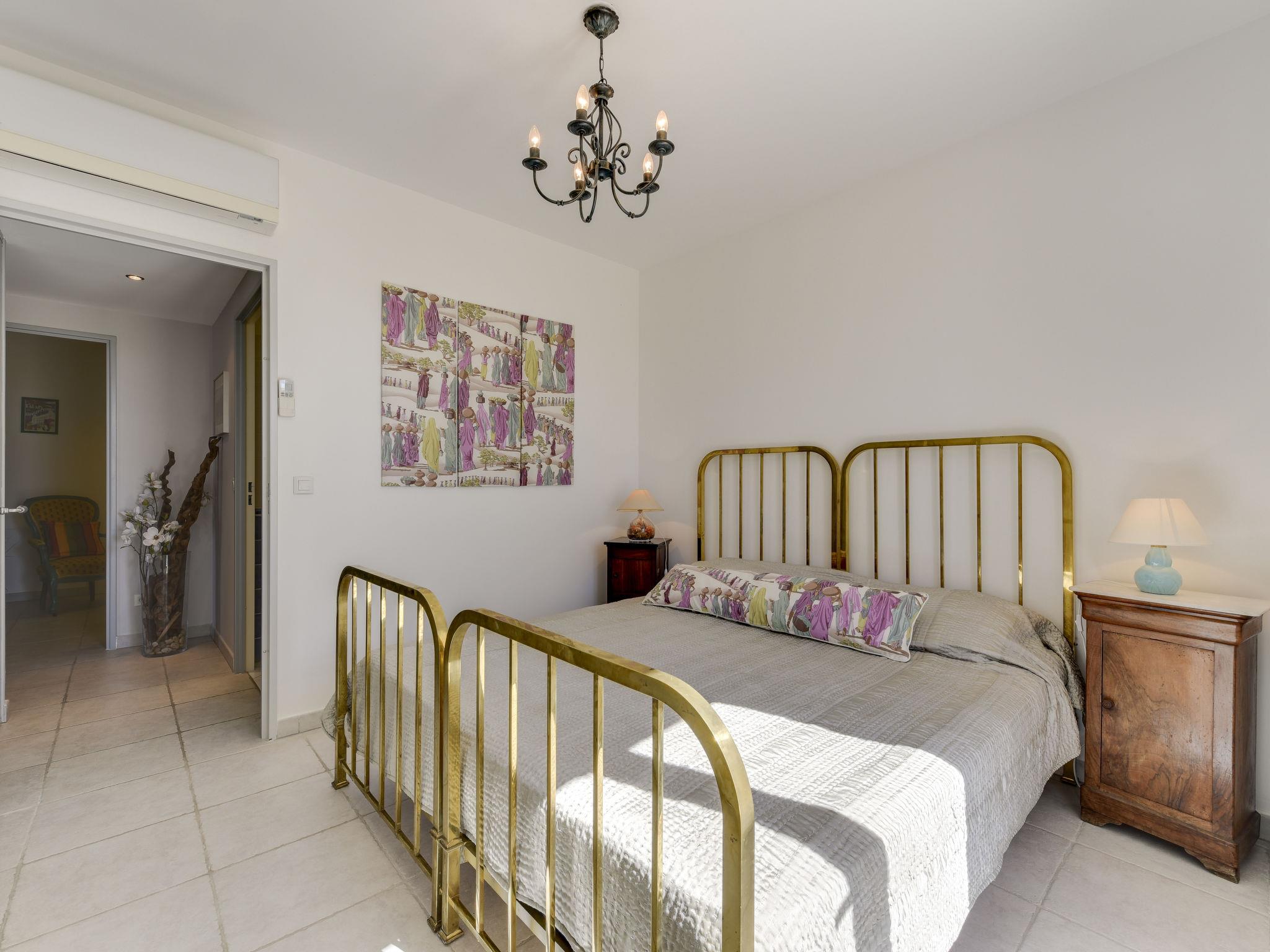 "Les Terrasses de Grimaud 1", 4-room apartment 106 m2. Spacious and bright, beautiful furnishings: living/dining room with TV (flat screen). Exit to the terrace. 1 room with 1 french bed (160 cm, length 200 cm), bath/WC and double hand-basin. Exit to the terrace. 2 rooms, each room with 1 double bed (2 x 80 cm, length 200 cm). Open kitchen (oven, dishwasher, 3 induction hot plates, microwave, freezer, electric coffee machine). Shower, sep. WC, double hand-basin. Electric heating, air-conditioning. 2 terraces 18 m2, terrace 9 m2. Terrace furniture, deck chairs (2). Beautiful view of the countryside. Facilities: washing machine, dryer, iron, hair dryer. Internet (WiFi, free). Parking space n 201 (roofed), height 190 cm, width 200 cm. Please note: smoke alarm. Access to the apartment by 14 steps. 83068000268M4