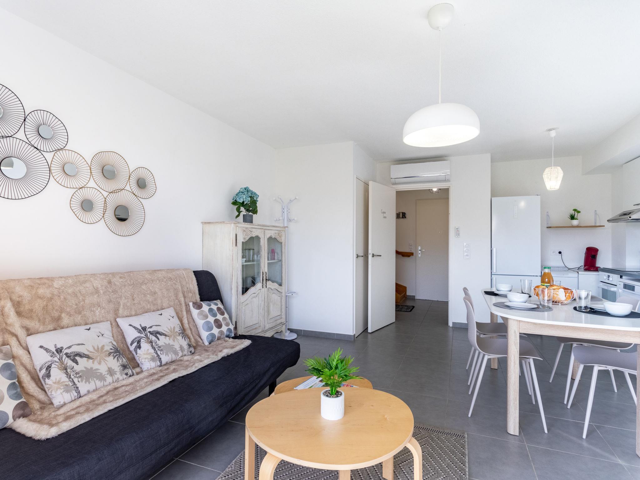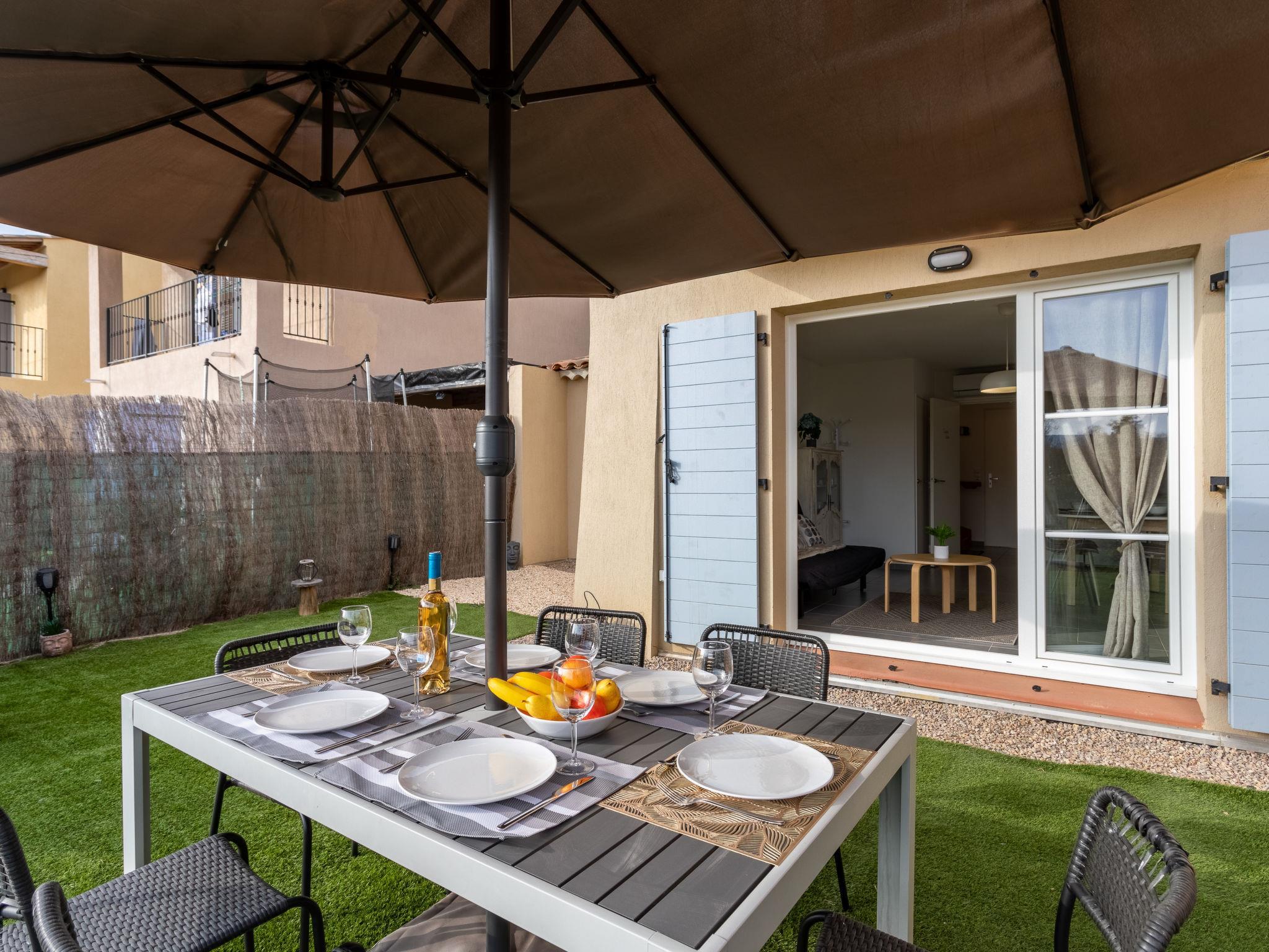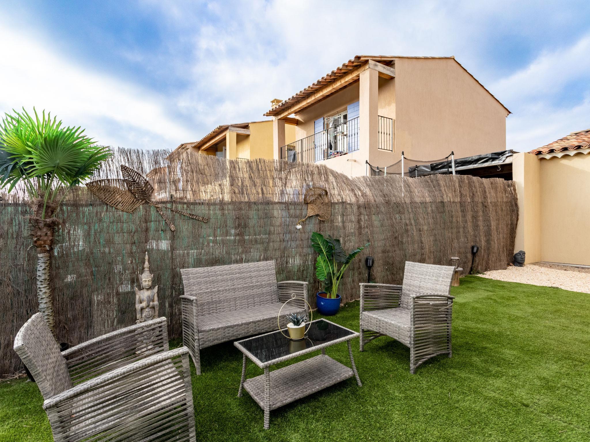 "Domaine des fées 1", 3-room house 60 m2 on 2 levels. Beautiful furnishings: living/dining room with TV (flat screen). Exit to the patio. Open kitchen (oven, dishwasher, 4 ceramic glass hob hotplates, toaster, kettle, microwave, freezer, electric coffee machine, Capsules for coffee machine (Senseo) extra). Shower/WC. Upper floor: 1 room with 1 french bed (160 cm, length 190 cm). Exit to the balcony. 1 room with 1 french bed (160 cm, length 190 cm). Bathroom, sep. WC. Electric heating, air-conditioning. Patio 60 m2, south facing position. Terrace furniture, barbecue. Facilities: washing machine, dryer, iron, baby cot for up to 2 year olds, hair dryer. Internet (WiFi, extra). Parking space n 35. Please note: non-smokers only. 1 small pet/ dog allowed. Smoke alarm. Offer by a private individual according to Art. 155, IV of CGI. 830680007197Q