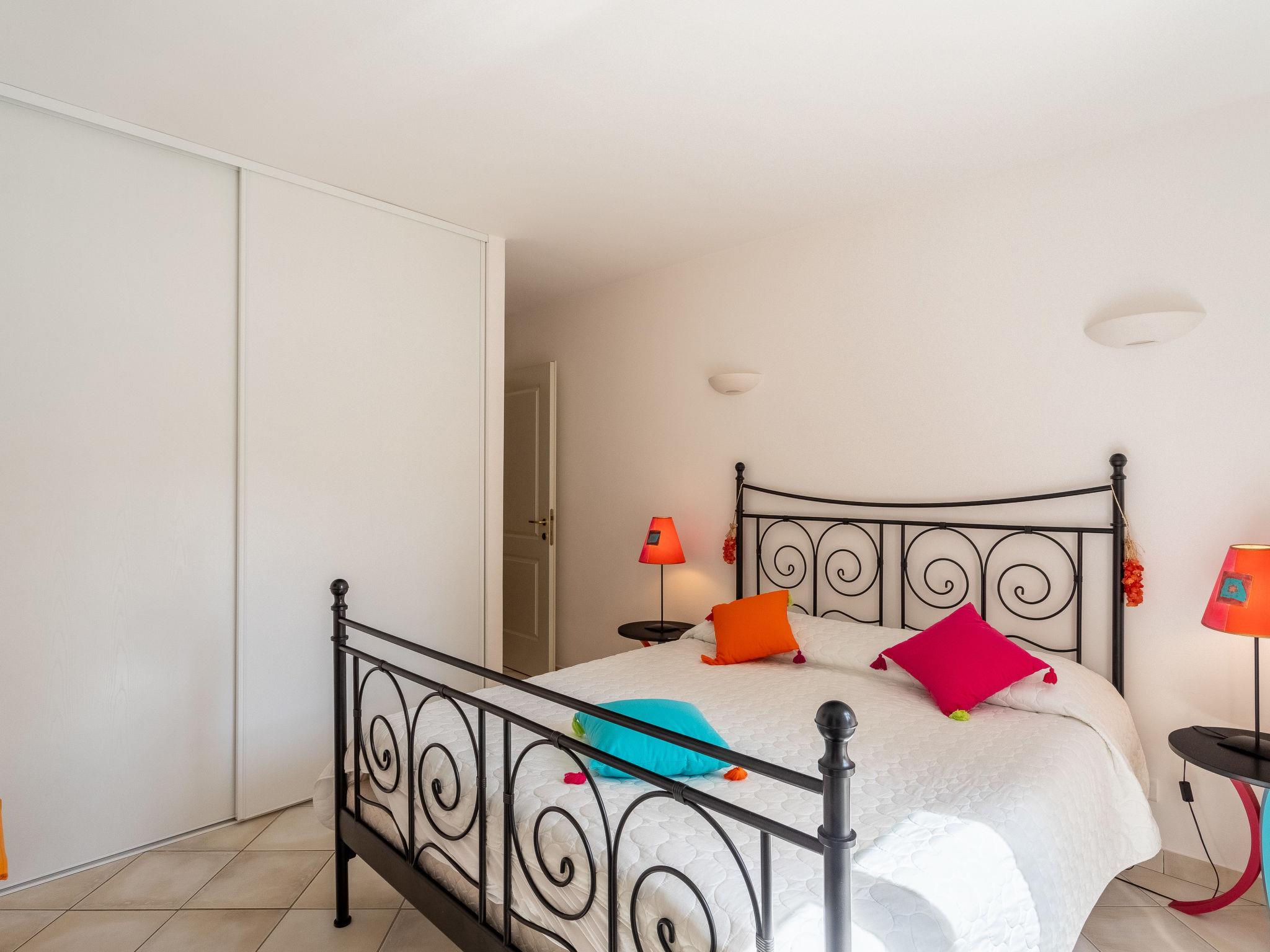 5-room villa 160 m2 on 2 levels. Luxurious furnishings: large living/dining room with TV (flat screen). Exit to the terrace. 1 room with Dressing room with 1 french bed (160 cm, length 200 cm), bath/shower/WC, double hand-basin and TV (flat screen), air conditioning. Exit to the garden. 1 room with 1 french bed (160 cm, length 200 cm), shower, double hand-basin and air conditioning. Exit to the terrace. Kitchen (oven, dishwasher, 3 induction hot plates, toaster, kettle, microwave, freezer, electric coffee machine, Capsules for coffee machine (Nespresso) extra). Sep. WC. Upper floor: 1 room with 1 french bed (160 cm, length 200 cm). Exit to the balcony. 1 room with 1 x 2 bunk beds (90 cm, length 200 cm). Shower/WC, double hand-basin. Electric heating, air-conditioning. Balcony 4 m2, large terrace 24 m2, roofed, south facing position. Terrace furniture, barbecue, deck chairs (8). Facilities: washing machine, dryer, children's high chair, baby cot for up to 2 year olds, hair dryer. Internet (WiFi, free). Parking, garage, height 195 cm, width 300 cm. Please note: non-smoking house. 1 small pet/ dog allowed. Smoke alarm. Offer by a private individual according to Art. 155, IV of CGI. 83068001414RR