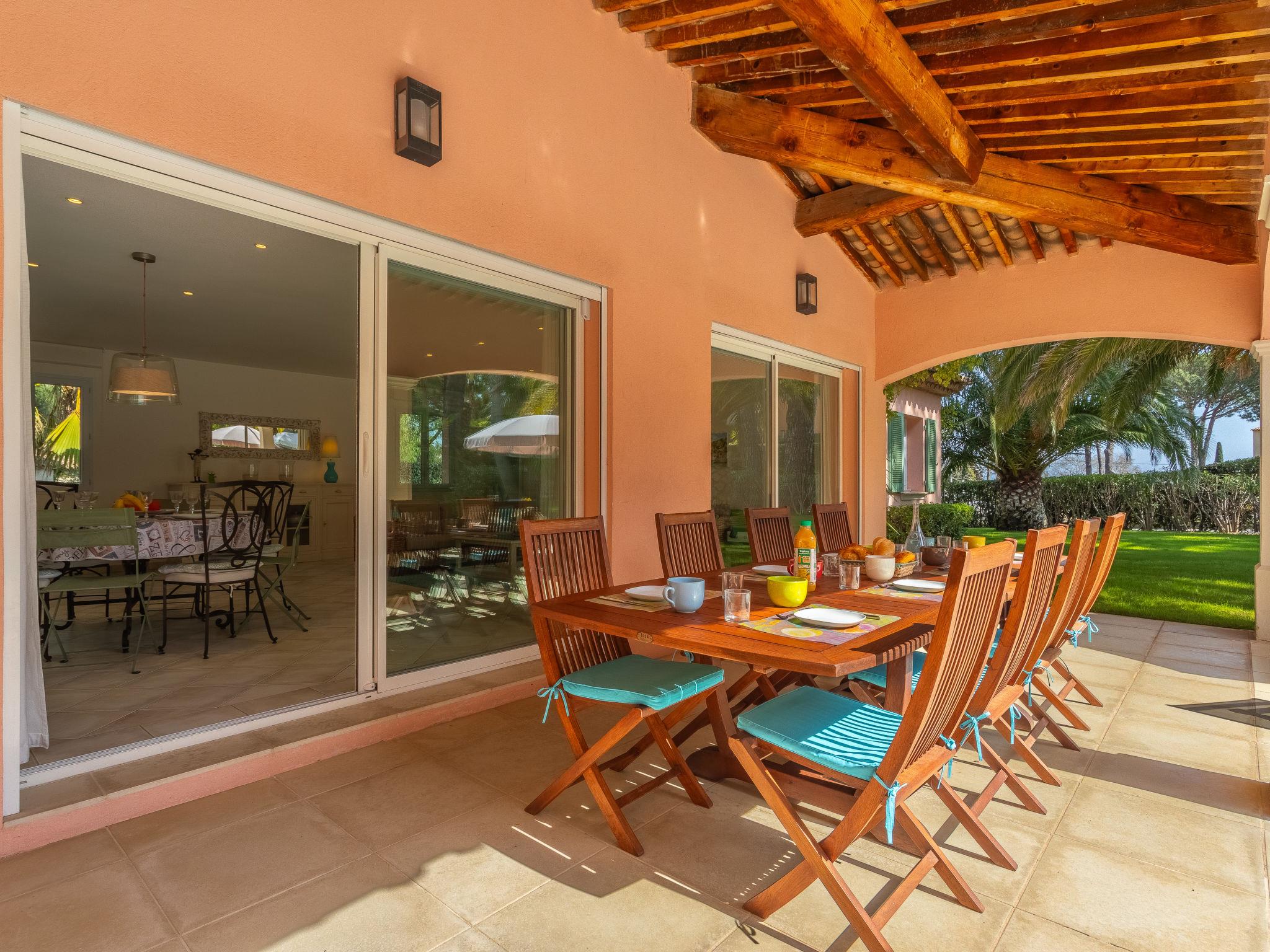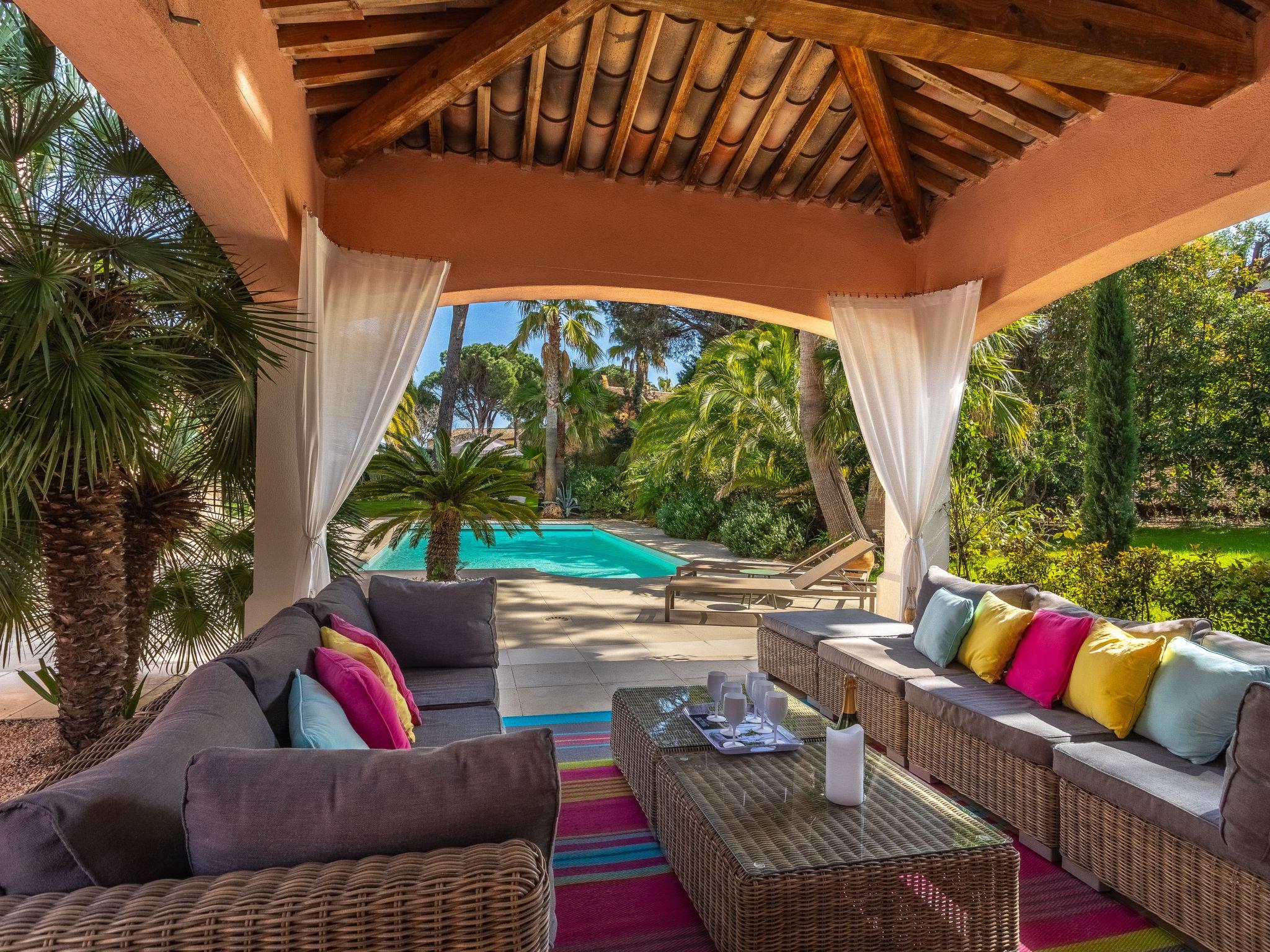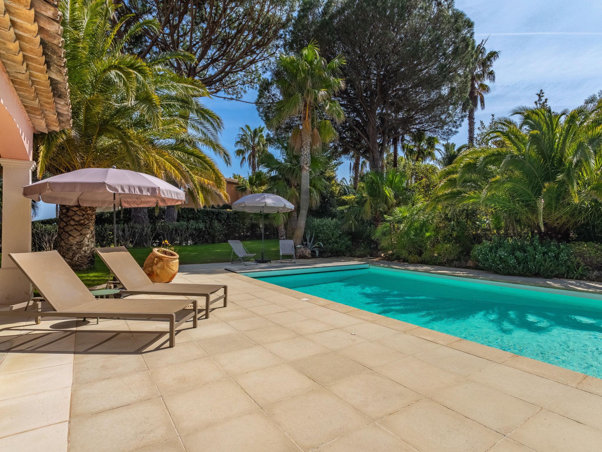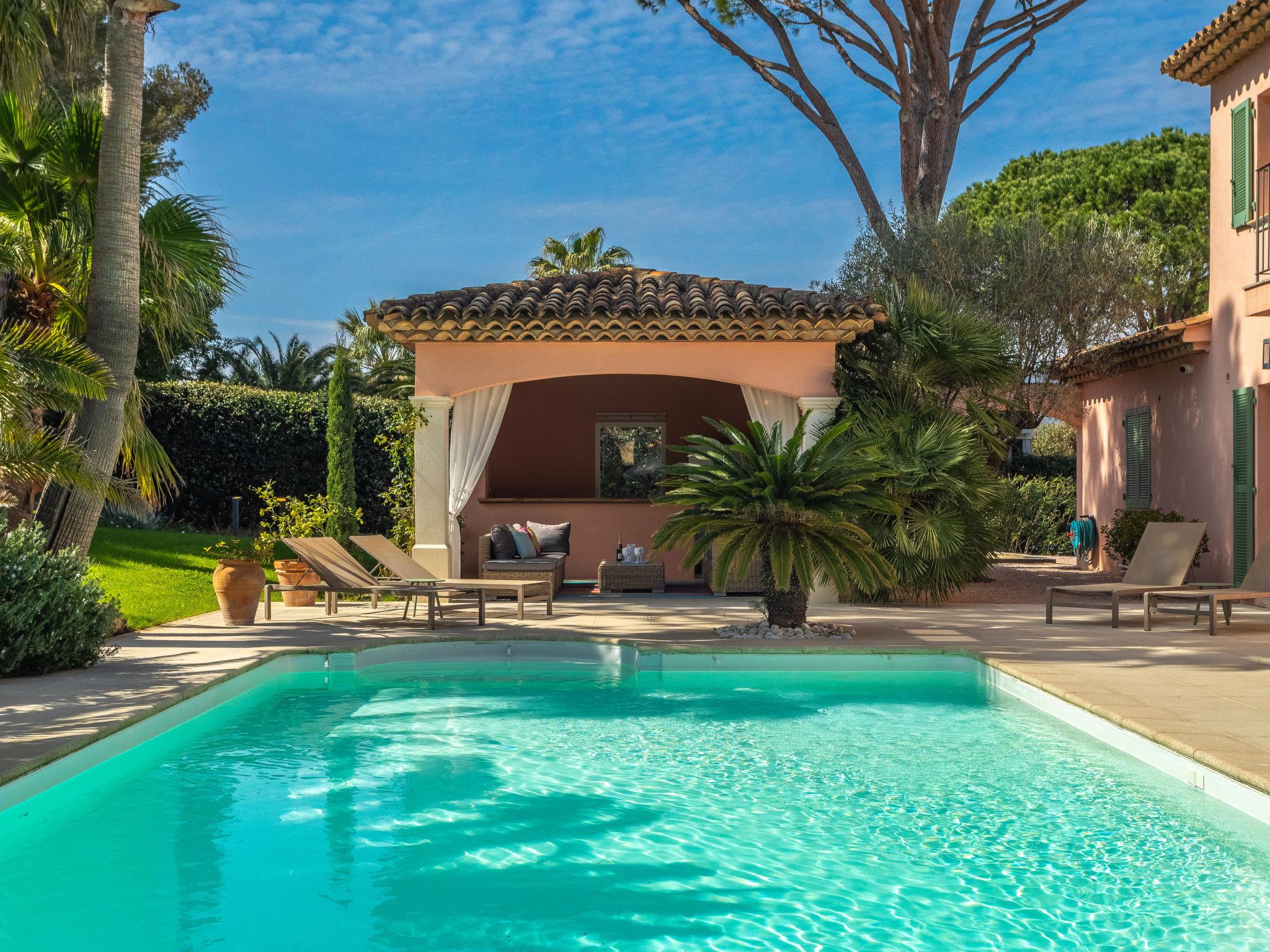 Beautiful villa "Indigo", 2 storeys. Outside the resort, 5 km from the centre of Grimaud, in the residential district, 1.4 km from the sea, 1.4 km from the beach. Private: well-kept garden 1'330 m2 (fenced) with lawn, swimming pool heated (10 x 5 m, depth 100 - 190 cm, seasonal availability: 01.Apr. - 31.Oct.) with shutter cover. Pool house with fridge, boules. Shop 4 km, grocery 300 m, supermarket 4 km, restaurant 800 m, bus stop "Prairies de la mer" 1 km, sandy beach "Les Prairies de la mer" 1.4 km. Sports harbour 3 km, golf course (18 hole) 4 km, sailing school 5 km, tennis 4 km, cycle lane 800 m. Nearby attractions: Saint Tropez 11 km, Sainte Maxime 11 km, Plages de Pampelonne 17 km, Cannes 85 km, Nice 110 km, Monaco 130 km. Well-known lakes can easily be reached: Le Lac de Sainte Croix 98 km. Hiking paths: Le Massif de l'Esterel 50 km. Please note: car recommended. The keys‘ handover takes place by the agency Interhome in Gassin, 4 km.