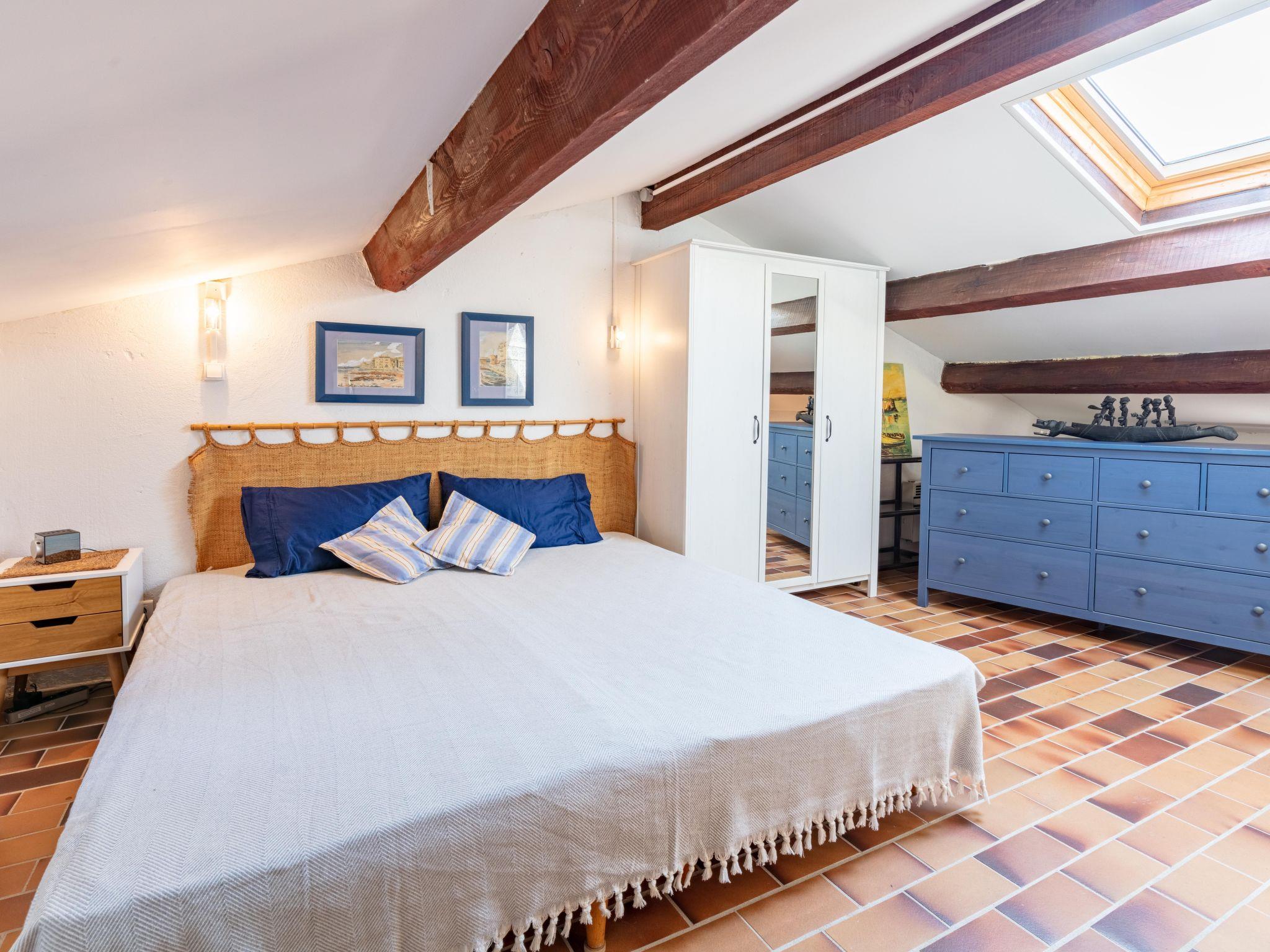 "La Maison bleue", 2-room terraced house 65 m2 on 2 levels. Partly renovated in 2020: living/dining room with 1 sofabed and open-hearth fireplace (only for decoration), dining table, satellite TV, hi-fi system and air conditioning. Exit to the terrace. 1 double bedroom. Open kitchen (oven, dishwasher, 4 induction hot plates, toaster, kettle, microwave, electric coffee machine). Exit to the garden. Shower, sep. WC. Upper floor: open gallery with sloping ceilings with 2 beds. Electric heating. Terrace. Terrace furniture, barbecue (portable), deck chairs (2), box-room. Facilities: washing machine, children's high chair, baby cot. Internet (WiFi, free). Please note: non-smoking house. Maximum 1 pet/ dog allowed. Instead of an enclosed bedroom, some sleeping areas are located in an open-plan area (gallery, alcove, etc.). 83068000462WG