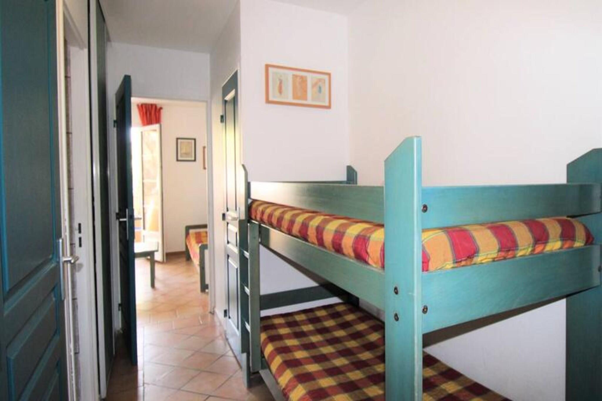 Denne charmerende ferielejlighed ligger ved foden af ??den historiske landsby Grimaud, og tilbyder et fredeligt og sikkert ophold i en rolig bolig. Lejligheden har en kabinesoveplads med køjesenge, et soveværelse med dobbeltseng med en 140 cm seng og et badeværelse med separat toilet. Stuen, der er indrettet med en 3-personers sofa, støder op til terrassen med udsigt til swimmingpoolen, hvor du kan slappe af og nyde den udendørs spiseplads med en elektrisk plancha. Ejendommen er ikke kæledyrsvenlig, hvilket sikrer et roligt miljø for alle gæster. Yderligere faciliteter omfatter gratis trådløs internetadgang og et stort fladskærms-tv til din underholdning. Lejligheden er ideelt beliggende i gåafstand fra den maleriske landsby Grimaud, hvor gæsterne kan udforske charmerende gader og caféer. De fantastiske strande i Port Grimaud ligger kun 3 km væk, perfekt for dem, der ønsker at nyde Middelhavets sol. Med gæsteparkering til rådighed i boligen er det nemt at komme til det omkringliggende område. Boligen byder på en frodig, skovklædt park, perfekt til afslappende gåture, og to opvarmede swimmingpools, sat til 25 og 28 grader, til nydelse året rundt. Det fuldt udstyrede amerikanske køkken inkluderer en 2-brænder kogeplade, ovn, mikroovn, køleskab med fryser, opvaskemaskine, kaffemaskine, Nespresso-maskine, elkedel og brødrister, hvilket gør det nemt at tilberede måltider under dit ophold. Lejligheden har også en komfortabel opholds- og spisestue, ideel til at tilbringe tid sammen efter en dag med udforskning. For dem, der foretrækker at slappe af udendørs, er terrassen et fantastisk sted at spise eller nyde et øjebliks fred.