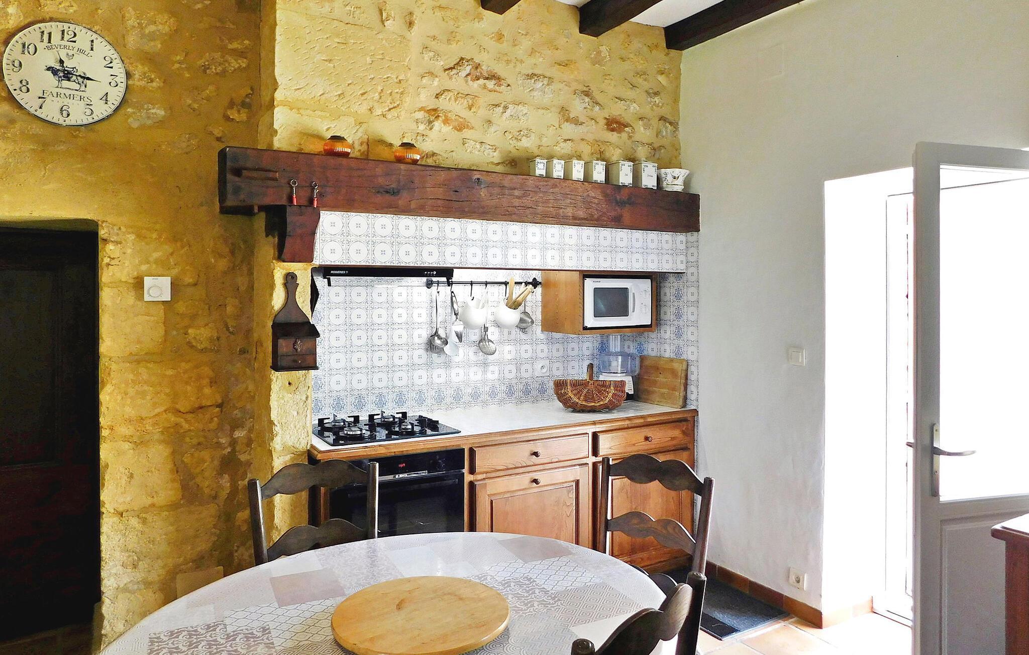 Dette rummelige stenhus ligger i en charmerende lille landsby i Périgord Noir. Med sin store have og privat swimmingpool tilbyder det perfekt indkvartering til en afslappende ferie. De rummelige værelser og det beskedne køkken lægger op til at slappe af, mens terrassen med havemøbler og grill byder på ideelle steder til afslappede udendørs måltider. Den private pool med alarmsystem er tilgængelig via lavvandede trin og giver forfriskende øjeblikke på varme dage.