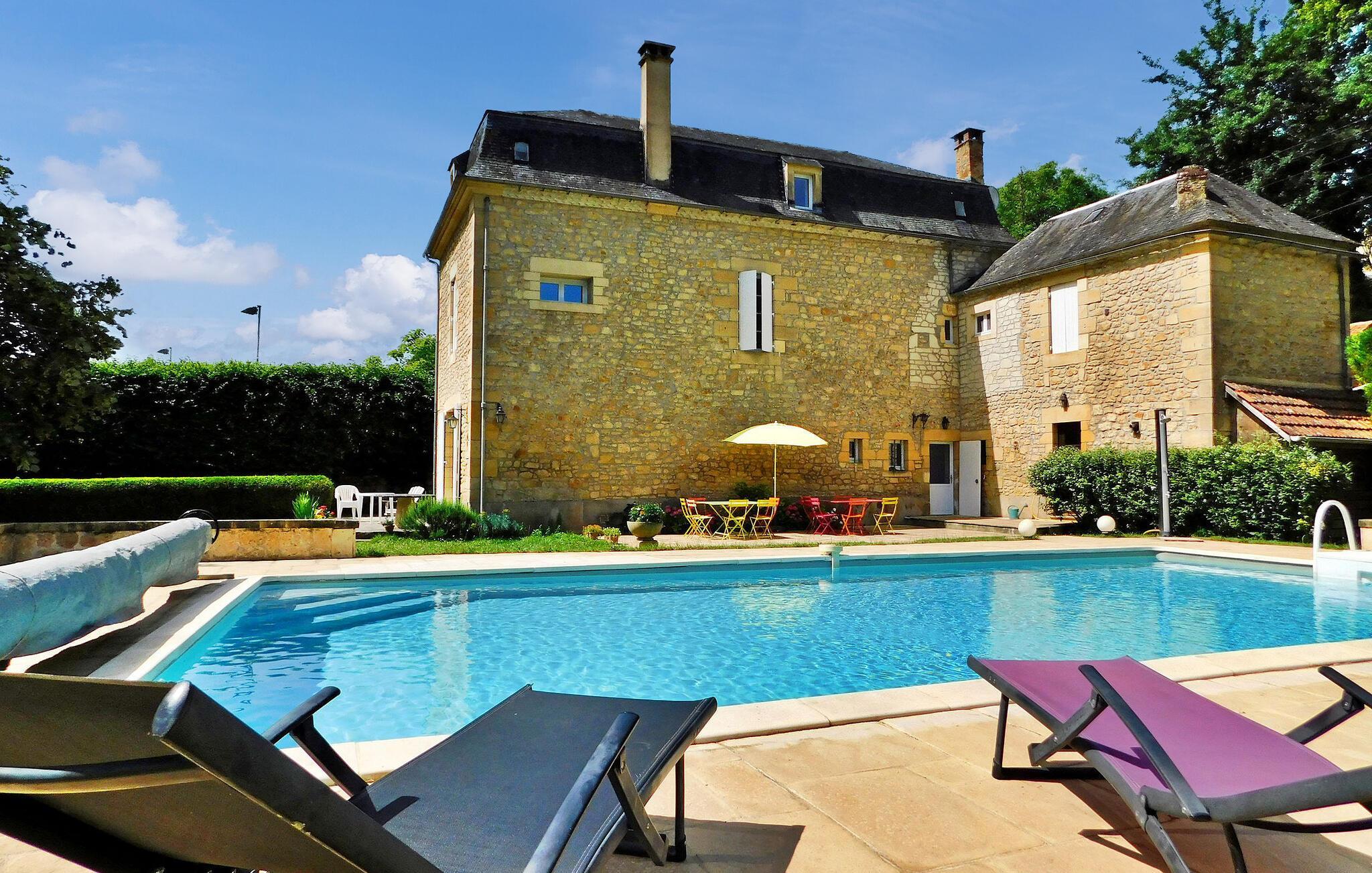 Slap af i et stenhus med privat pool og stor have.