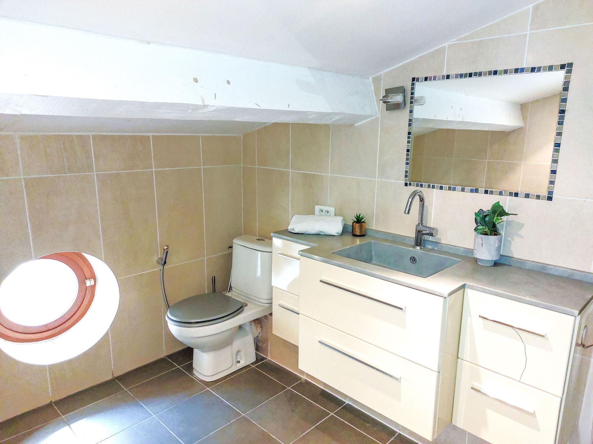 Old, large house "La Maison de l'Etang", 2 storeys, terraced. In the centre of Gruissan, in a quiet position, 3 km from the sea. Private: garden (fenced), courtyard, public parking 50 m. Shop 100 m, supermarket 3 km, restaurant, bar 100 m, bus stop 300 m, outdoor swimming pool 2 km, indoor swimming pool 2 km. Sports harbour 2 km, tennis 3 km, riding stable 5 km. Nearby attractions: Réserve Africaine de Sigean 29 km, Cité de Carcassonne 73 km, Espace Balnéoludique de Gruissan 3.5 km, Plage des Chalets 3 km. In the heart of the old village there is the House of the pond. It has access to the street and access to the "circulade" along the pond.