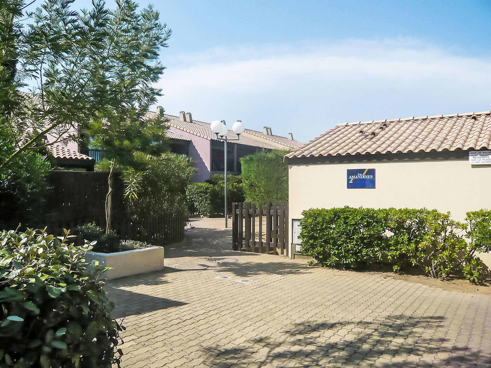 Residence "Les Amandines". In the resort, 1 km from the centre, 600 m from the sea. For shared use: swimming pool (9 x 19 m, depth 100 - 200 cm, seasonal availability: 01.Jun. - 30.Sep.). Parking. Shop 100 m, supermarket 500 m, restaurant, bar 100 m, bus stop 50 m, sandy beach "du Grazel" 200 m. Tennis 800 m. Nearby attractions: Réserve Africaine de Sigean 29 km, cité de carcassonne 71 km, espace balnéoludique Gruissan 1.2 km, plage des chalets 5 km. Please note: the keys‘ handover takes place by the agency Interhome in Narbonne Plage, 10 km. The photograph shows a typical example.