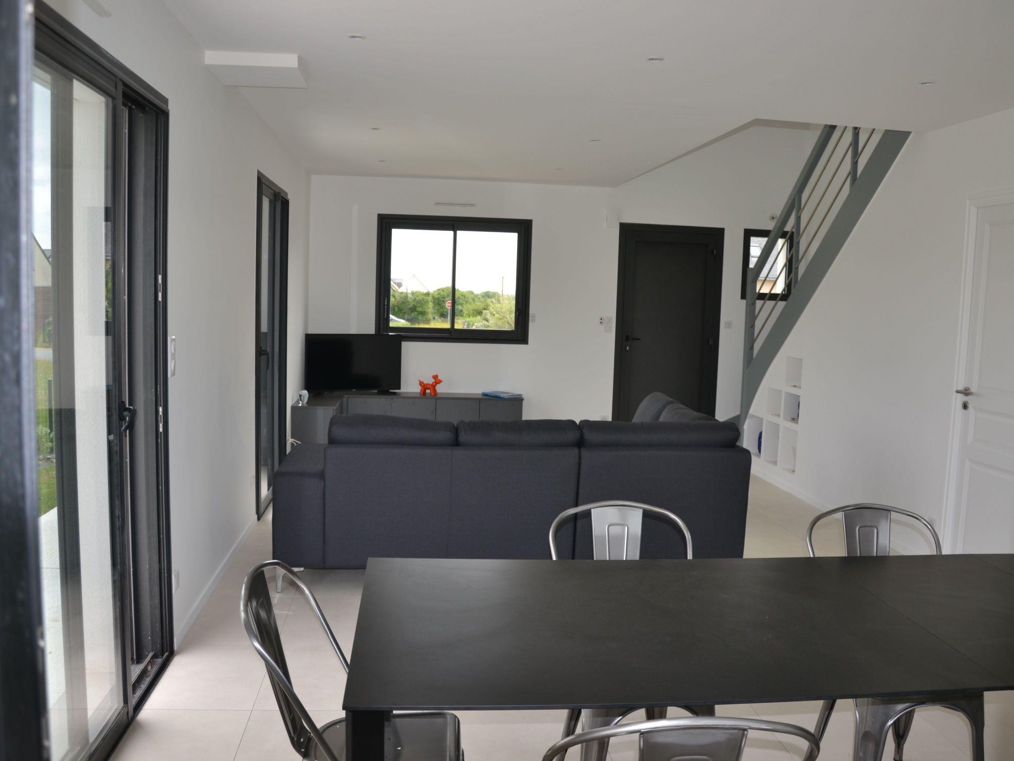The 134 m² house (4 bedrooms; 2 shower rooms; 2 toilets) sleeps up to 7 people . New furniture, appliances and bedding. Practical double garage for 2 cars, bikes, sailing, surfing, kite-surfing, golfing equipment, etc. . Motorised roller shutters . Cupboards in all bedrooms . Access to the house and ground floor accessible to people of reduced mobility (PRM) On the ground floor: - A large living room with fully-equipped open-plan kitchen (dishwasher, oven, induction hob, microwave, fridge-freezer). Flat-screen TV in the living room - A utility room with washing machine - A bedroom (double bed 160x200), a shower room (Italian shower) and a separate toilet - A garage with motorised door, which can accommodate two vehicles, or bicycles, sailing equipment, etc. The living room opens onto a terrace with garden furniture and barbecue, overlooking a large enclosed garden of 1000 m2, not overlooked.