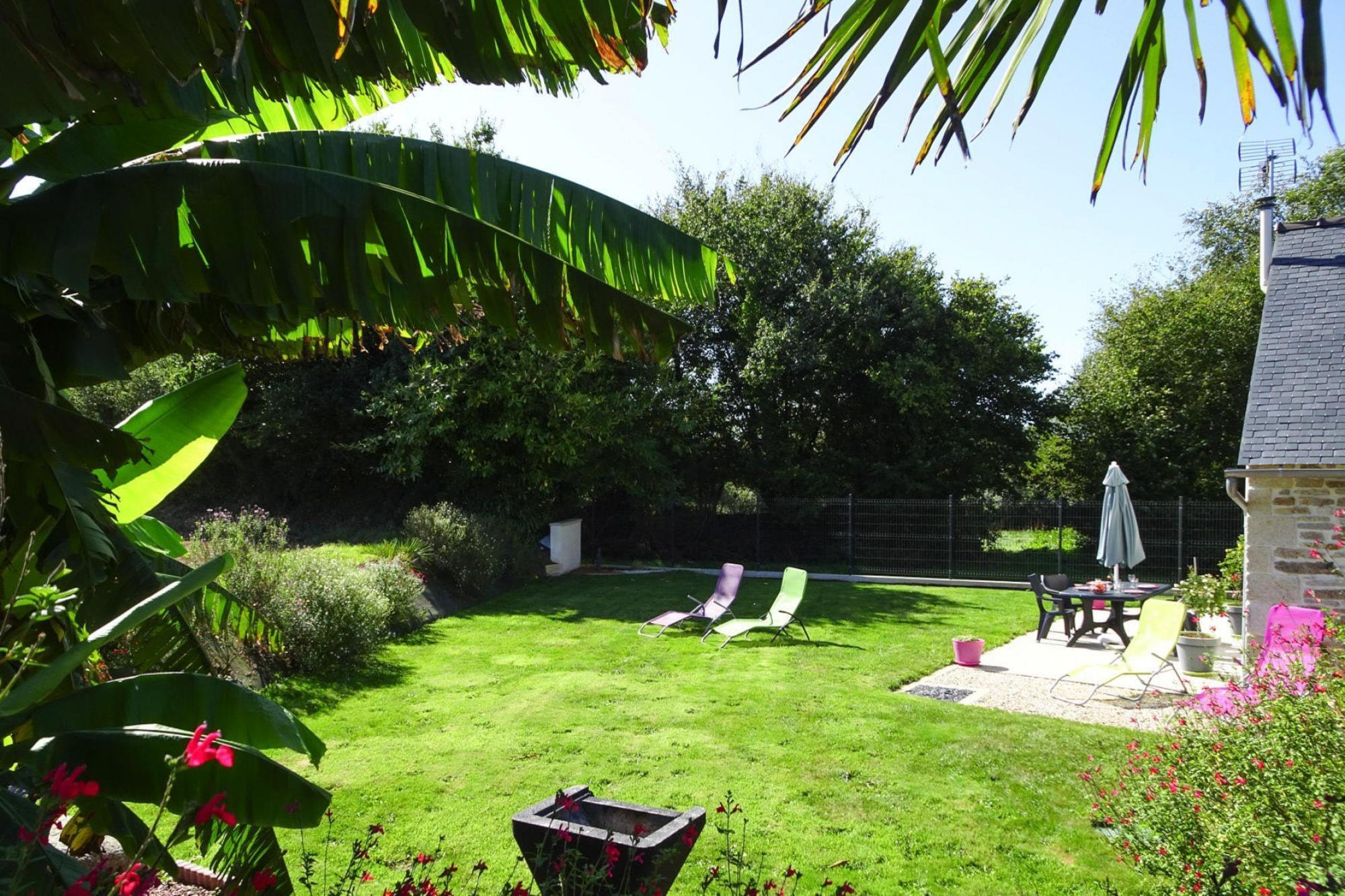 Dette hyggelige feriehus ligger på en skøn grund mellem land og hav, i udkanten af den regionale naturpark d'Armorique og tæt på en populær fiskesø. Den snoede ejendom imponerer med en vellykket kombination af traditionel bretonsk konstruktion og moderne komfort. I havesiden åbner brede franske døre ud til terrassen og den velholdte have. Her kan du slappe af efter alle former for udendørs aktiviteter og sightseeing. Familier med børn er meget velkomne. Der er indrettet et lille legeområde specielt til børnene, og babyudstyret er også komplet. De smukke, hvide sandstrande i det nordlige Bretagne kan hurtigt nås med bil. Den maleriske middelalderby Guerlesquin ligger på grænsen mellem departementerne Finistère og Côtes d'Armor. En ideel position, hvorfra man kan udforske den nordvestlige del af Bretagne: Morlaix-bugten med den maleriske havneby Roscoff og den lyserøde granitkyst med dens livlige badebyer. Den nærliggende sø af samme navn, Lac de Guerlesquin, er Bretagnes største sø. Et paradis for naturelskere og fiskeentusiaster Omfattende babyudstyr Aktiviteter i nærheden: Sikke et overraskende landskab, denne Monts d'Arrée! Du vil blive fortryllet af denne vilde og beskyttede område i hjertet af Bretagne, hvis højeste punkt, Roc "h Ruz, er 385 meter højt. Herfra kan du nyde en fascinerende udsigt over Pays de Léon. En imponerende, næsten uvirkeligt landskab, hvor lyng, torn og klipperygge blander sig så langt øjet rækker. Lukkede sogne, såkaldte indhegninger, stenaltertavler og smukke kapeller er et besøg værd i umiddelbar nærhed.