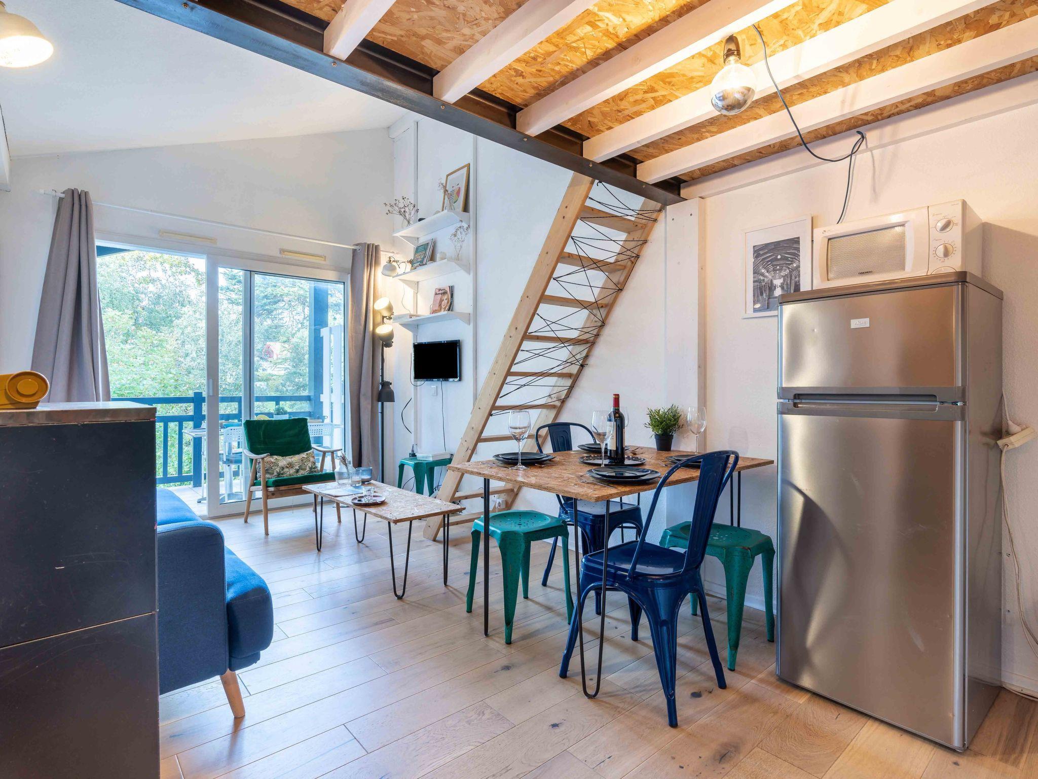 2-room apartment 30 m2 on 3rd floor. Spacious and bright, fully renovated, beautiful and modern furnishings: living/dining room with TV (flat screen). Exit to the balcony. 1 room with 1 french bed (1 x 160 cm, length 200 cm). Open kitchen (dishwasher, 4 ceramic glass hob hotplates, toaster, kettle, electric coffee machine, combination microwave). Bathroom, sep. WC. Electric heating. Upper floor: open gallery with 1 french bed (1 x 140 cm, length 190 cm). Balcony 9 m2. Balcony furniture. View of the garden and the resort. Facilities: washing machine, iron, hair dryer. Internet (WiFi, free). Parking space n 501. Please note: non-smokers only. Smoke alarm. Instead of an enclosed bedroom, some sleeping areas are located in an open-plan area (gallery, alcove, etc.). 6424900012795