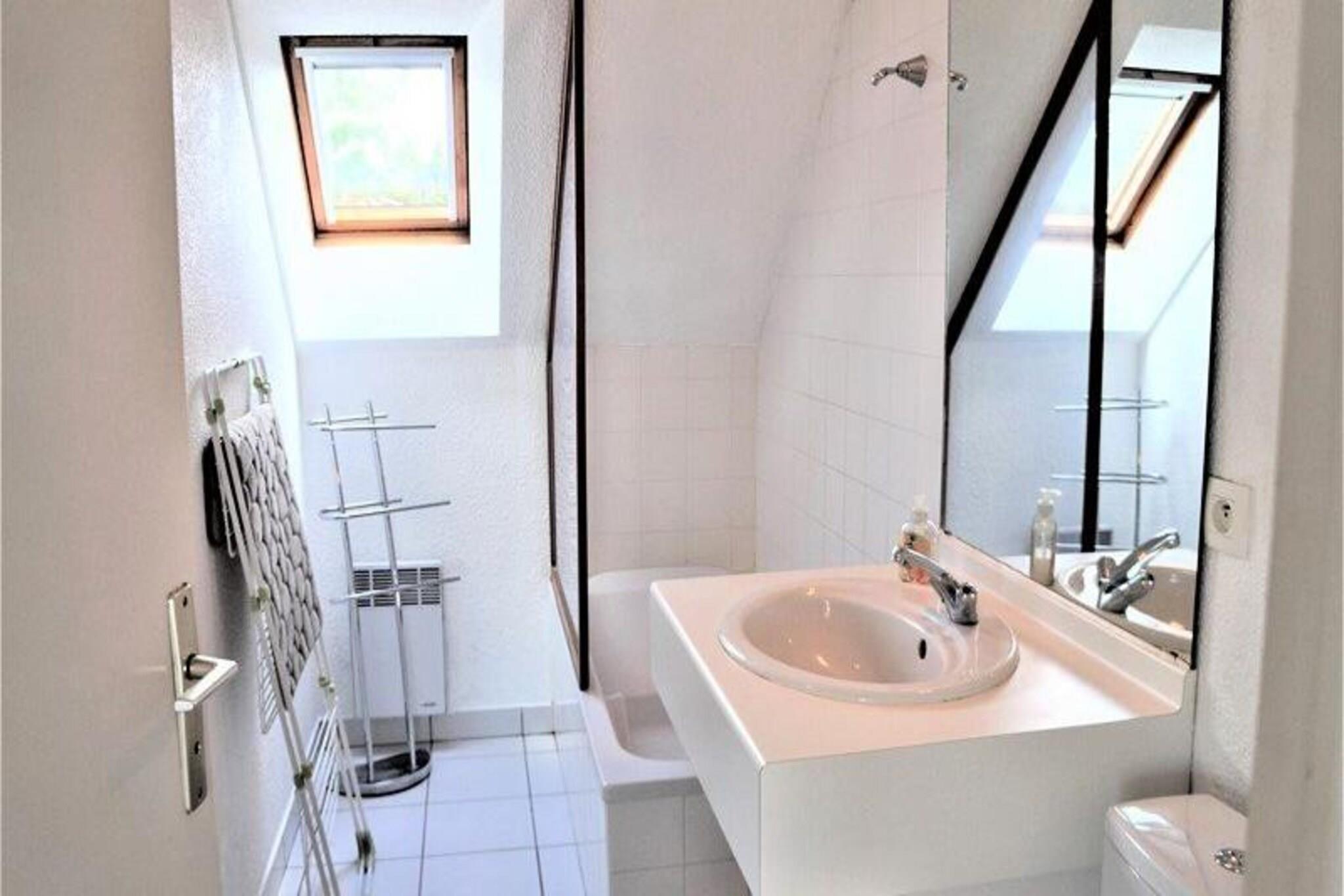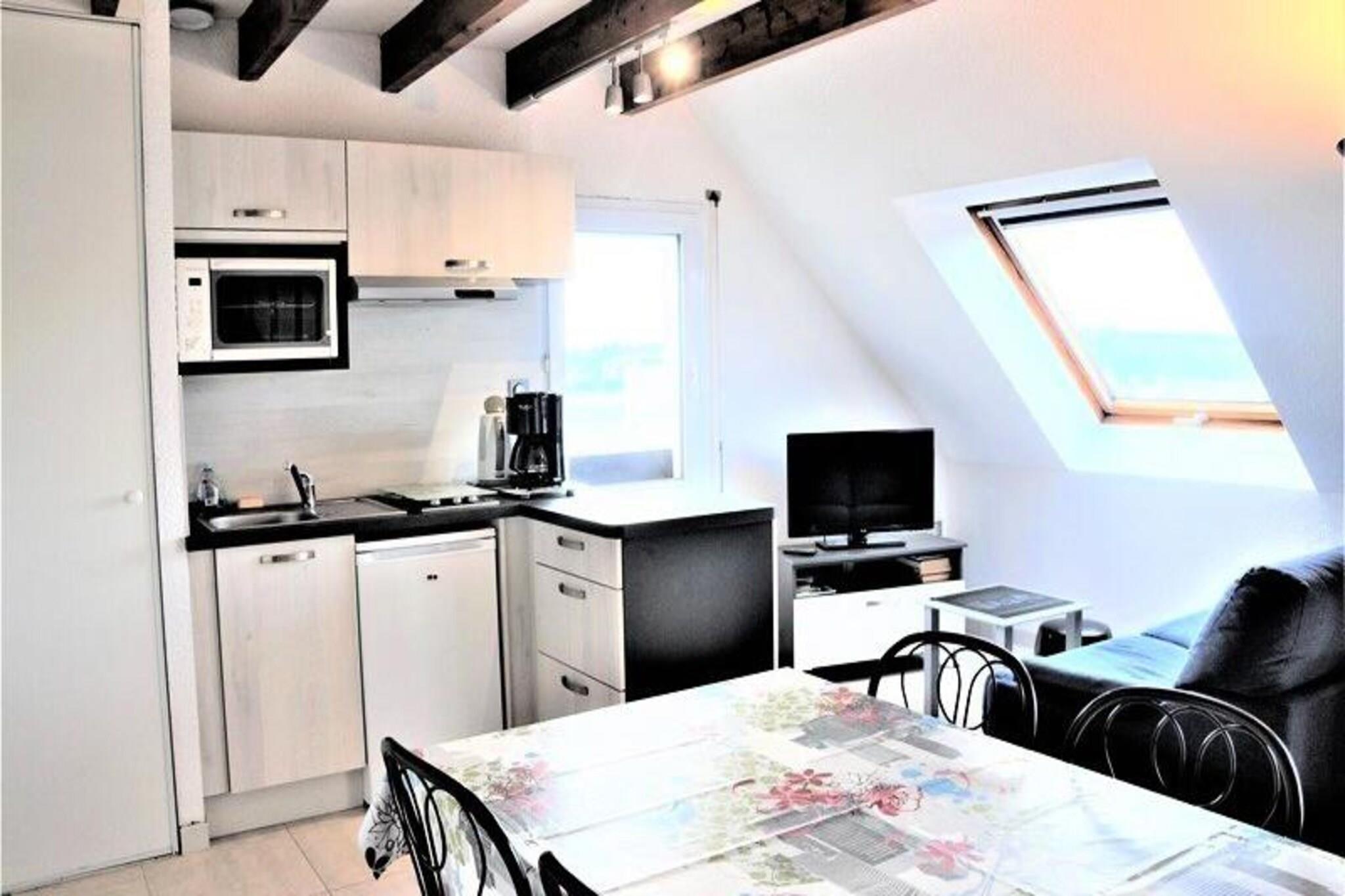 Denne 50 m² duplex lejlighed tilbyder et komfortabelt ophold med to soveværelser, en sovesofa og rigelig plads til op til seks personer. Kæledyr er velkomne mod et ekstra gebyr, hvilket gør det ideelt for familier eller kæledyrsejere. Lejligheden har et badeværelse med badekar, en stue med tv og en terrasse med havemøbler. Sengelinned og håndklæder kan lejes, og der tilbydes slutrengøring. Et depositum og turistskat er påkrævet, og elektricitet faktureres separat i bestemte måneder. Lejligheden ligger i et fredeligt område i Guidel Plages, kun 400 meter fra stranden, sæsonbestemte butikker og 500 meter fra lystbådehavnen. Gæsterne kan nyde forskellige vandaktiviteter, vandrestier langs kysten og nem adgang til lokale caféer, barer og et supermarked. Guidels centrum ligger 3,5 km væk, hvor der er flere butikker og serviceydelser. Beliggenheden er perfekt for dem, der søger en afslappende ferie ved havet. Lejligheden har et fuldt udstyret tekøkken med mikrobølgeovn, køleskab, elektrisk ovn, induktionskomfur og kaffemaskine. Stuen åbner ud til en lille terrasse med havudsigt med havemøbler, ideel til at nyde måltider udendørs. Der er ingen Wi-Fi, men en mini Wi-Fi-boks kan lejes. Lejligheden har også varme for komfort i de køligere måneder.