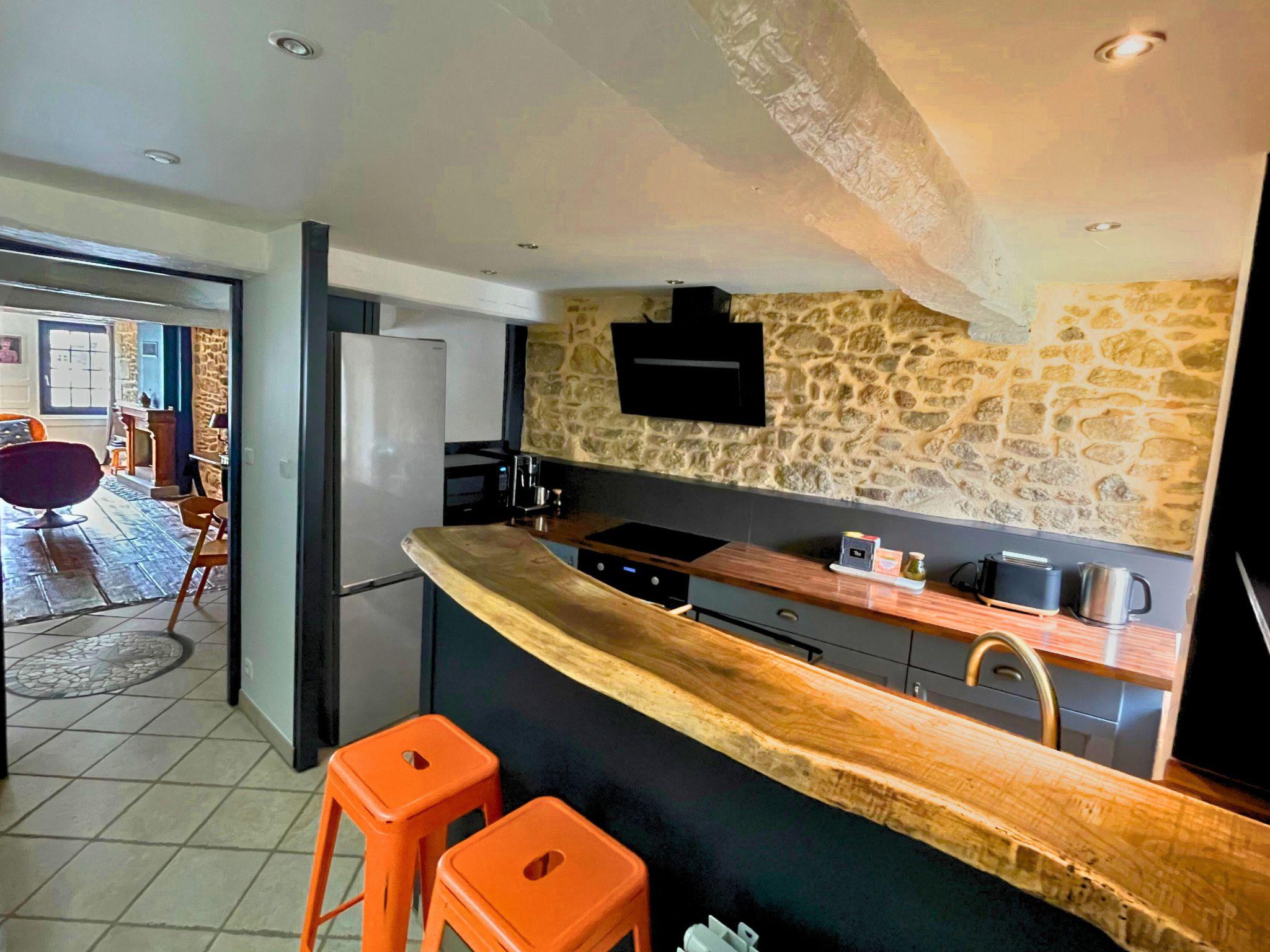 After crossing the small private courtyard, you can climb up to the living room and kitchen on the 1st floor, with its lovely, unobstructed view over the main square in the historic heart of Guingamp.