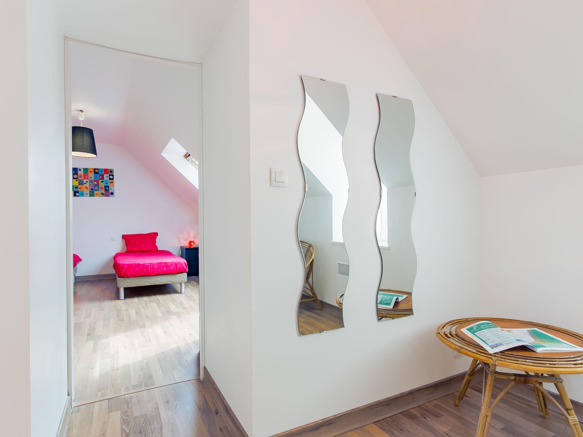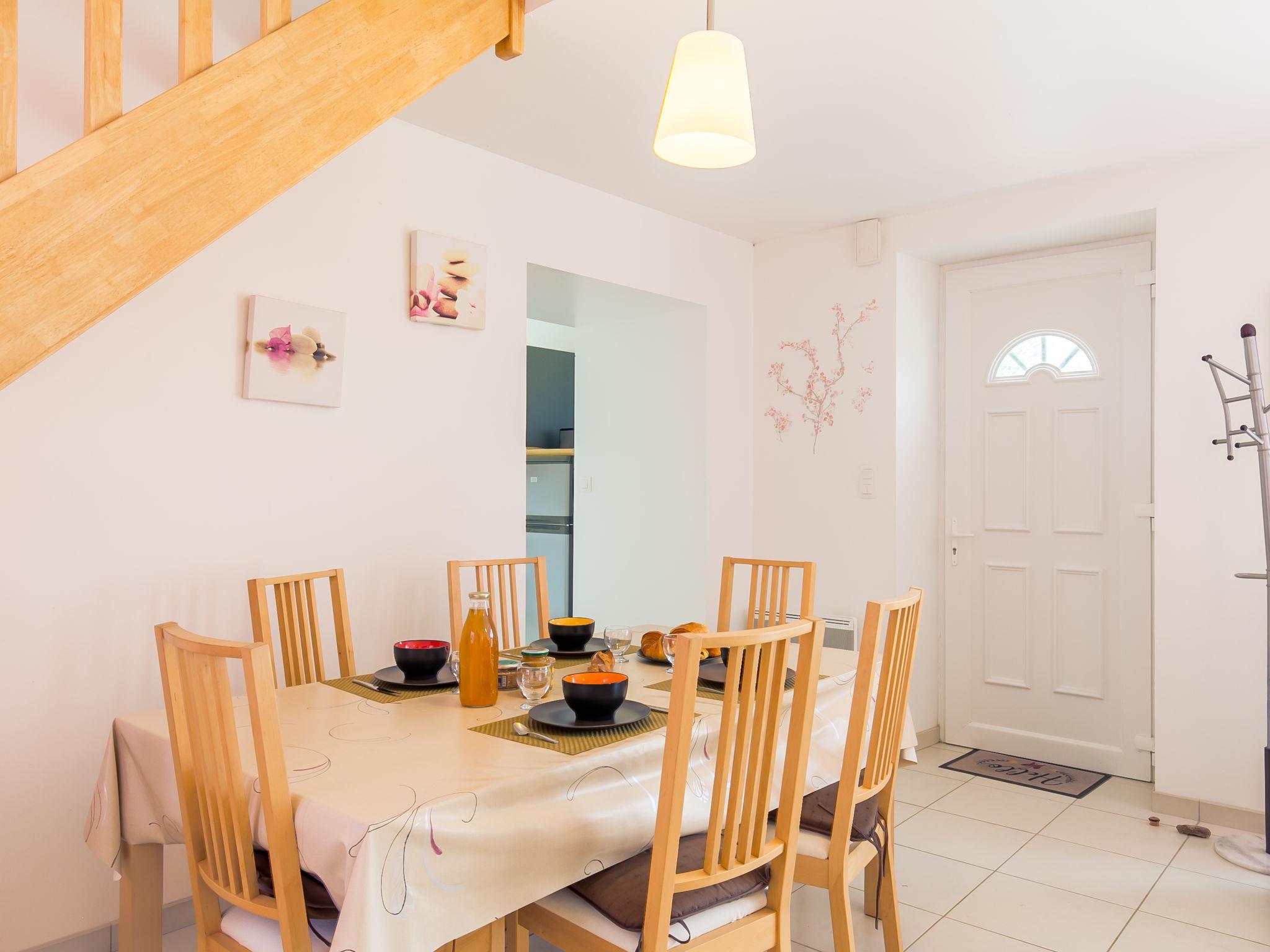 "Va Zi Bihan", 3-room house 85 m2 on 2 levels. Beautiful and tasteful furnishings: living/dining room with dining table and satellite TV. Exit to the garden. Open kitchen (oven, dishwasher, 3 induction hot plates, toaster, kettle, microwave, freezer, electric coffee machine) with dining table. Shower, sep. WC. Upper floor: 1 room with sloping ceilings with 2 beds. 1 room with sloping ceilings with 1 french bed (160 cm). Shower/WC. Electric heating. Parquet floors. Garden, south facing position and west facing position. Terrace furniture, barbecue (portable), deck chairs (4). Facilities: washing machine, iron, baby cot. Please note: non-smoking house. Maximum 1 pet/ dog allowed. Smoke alarm.